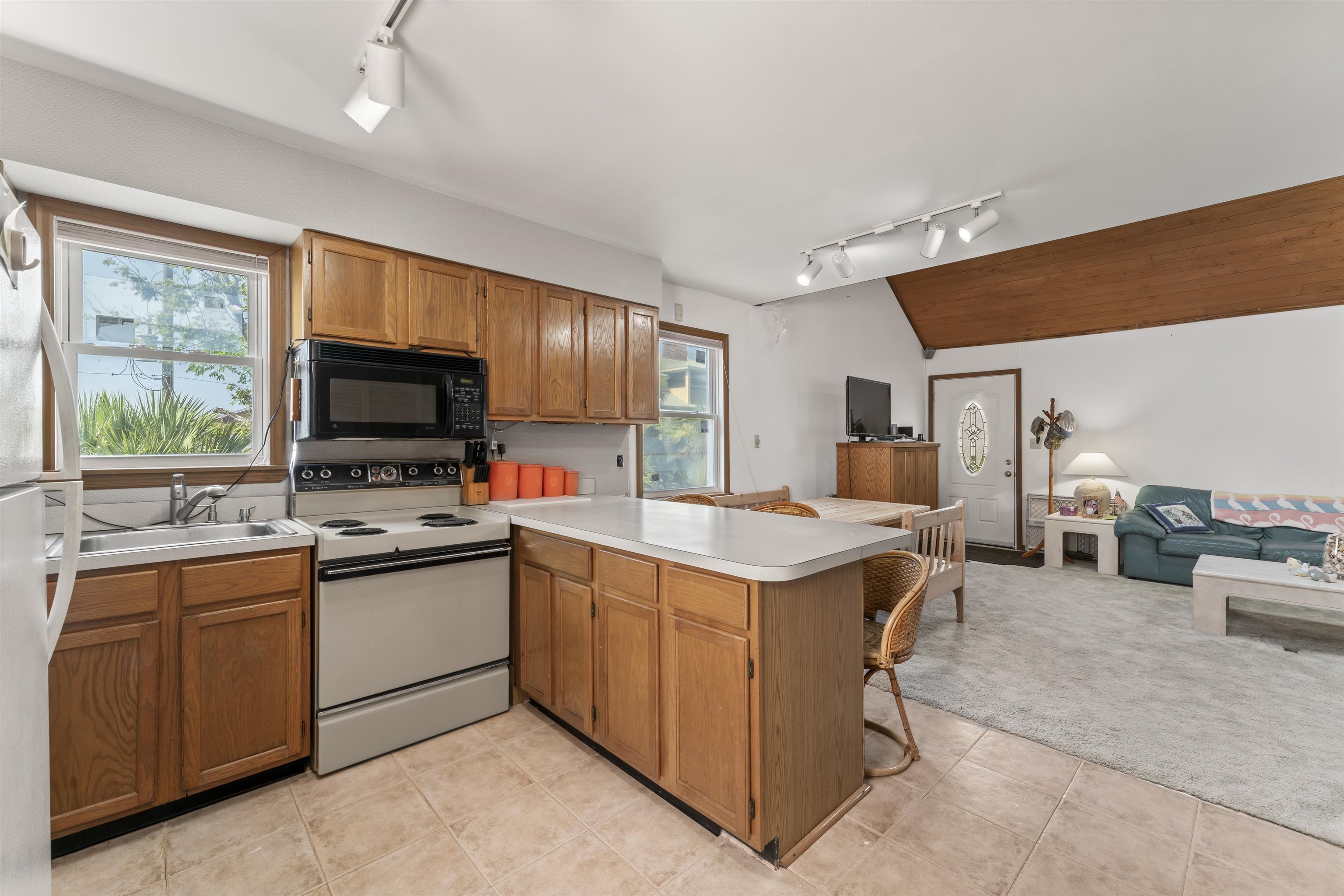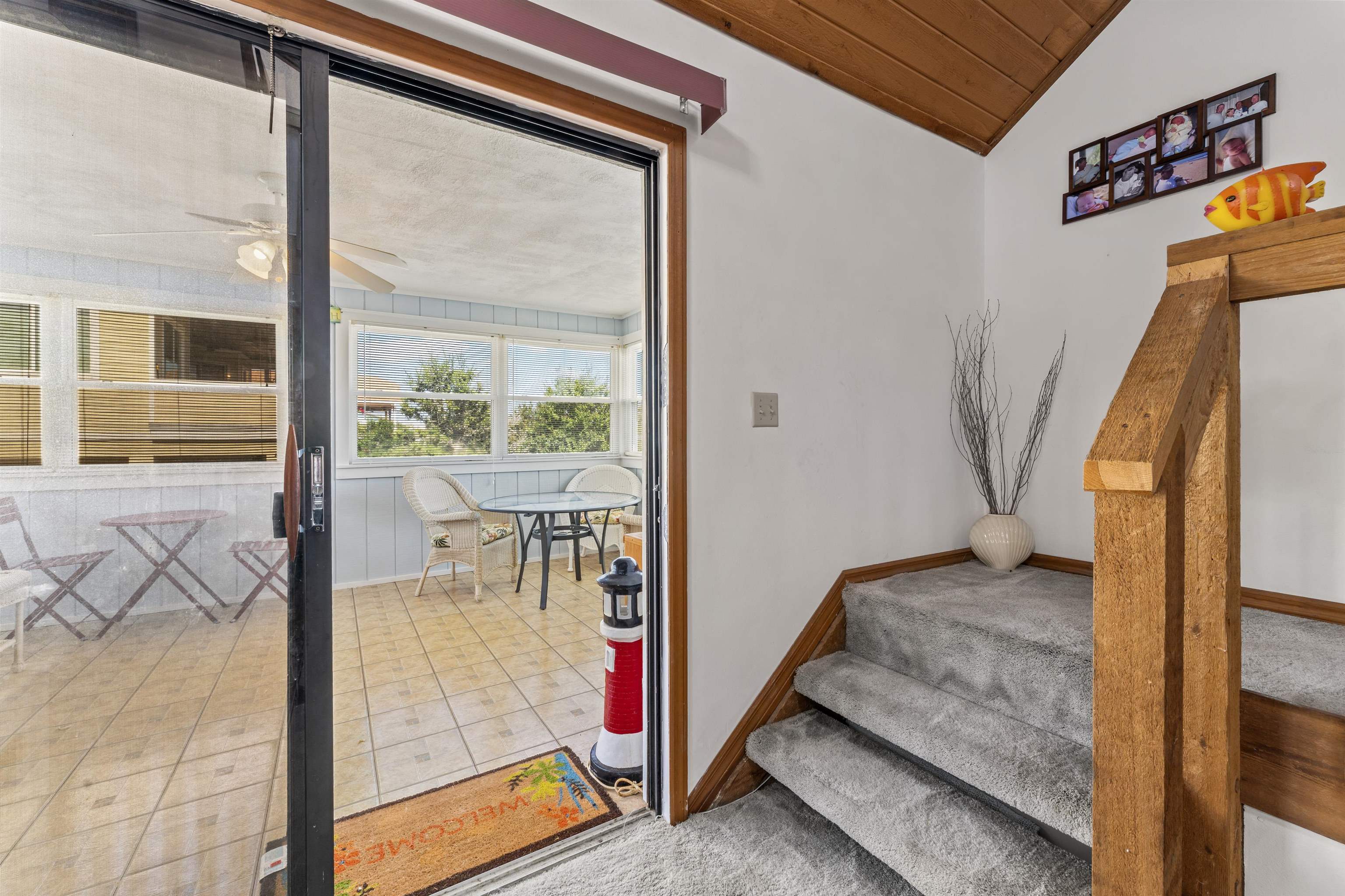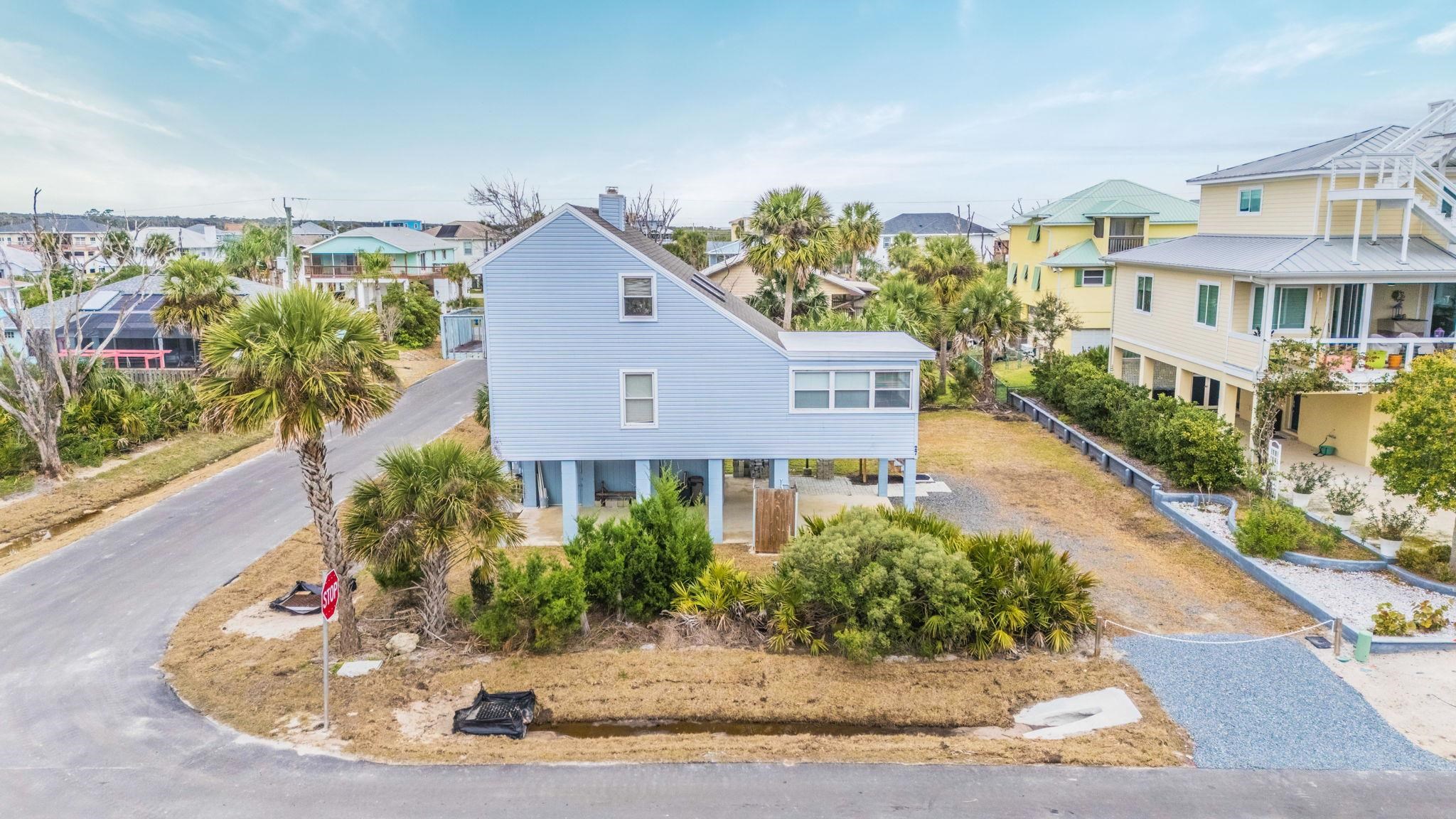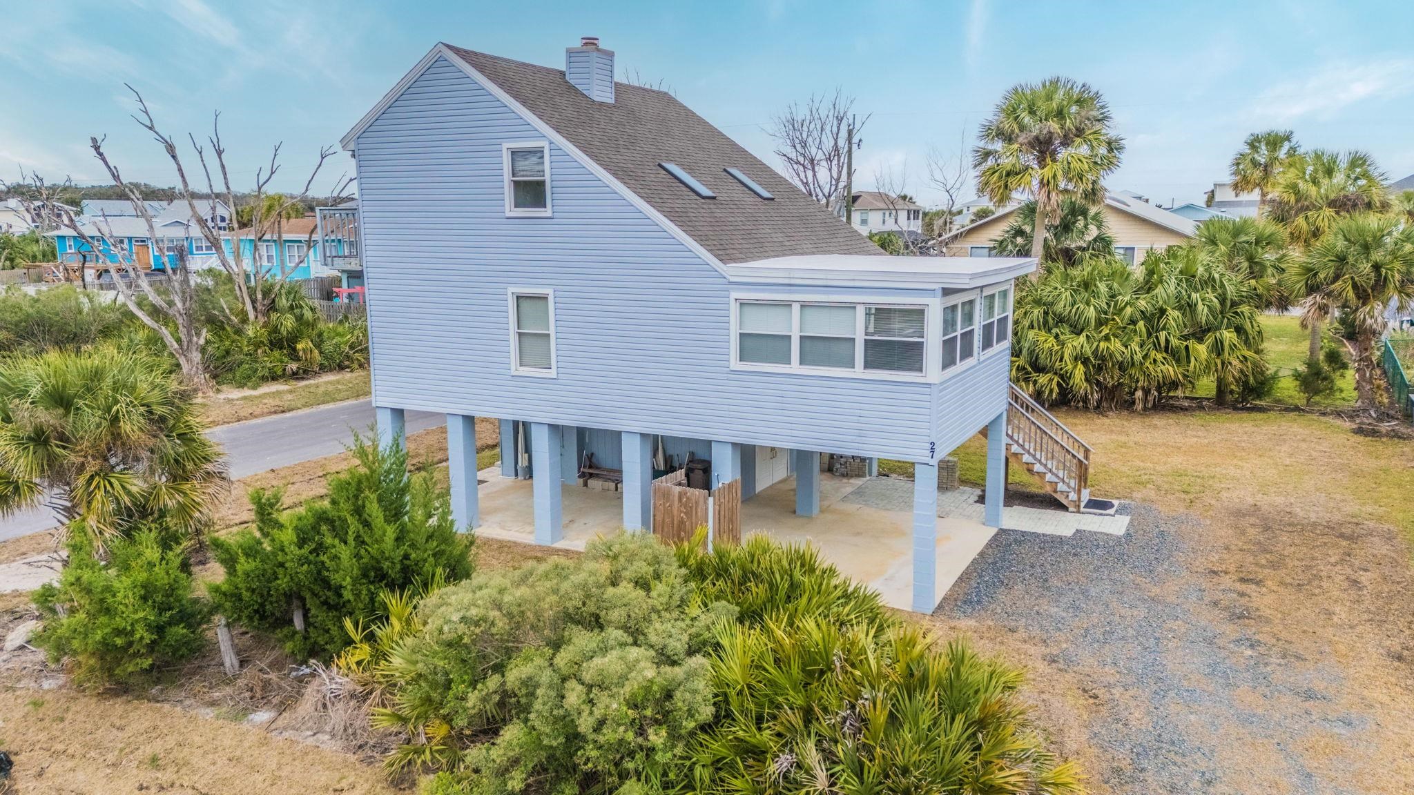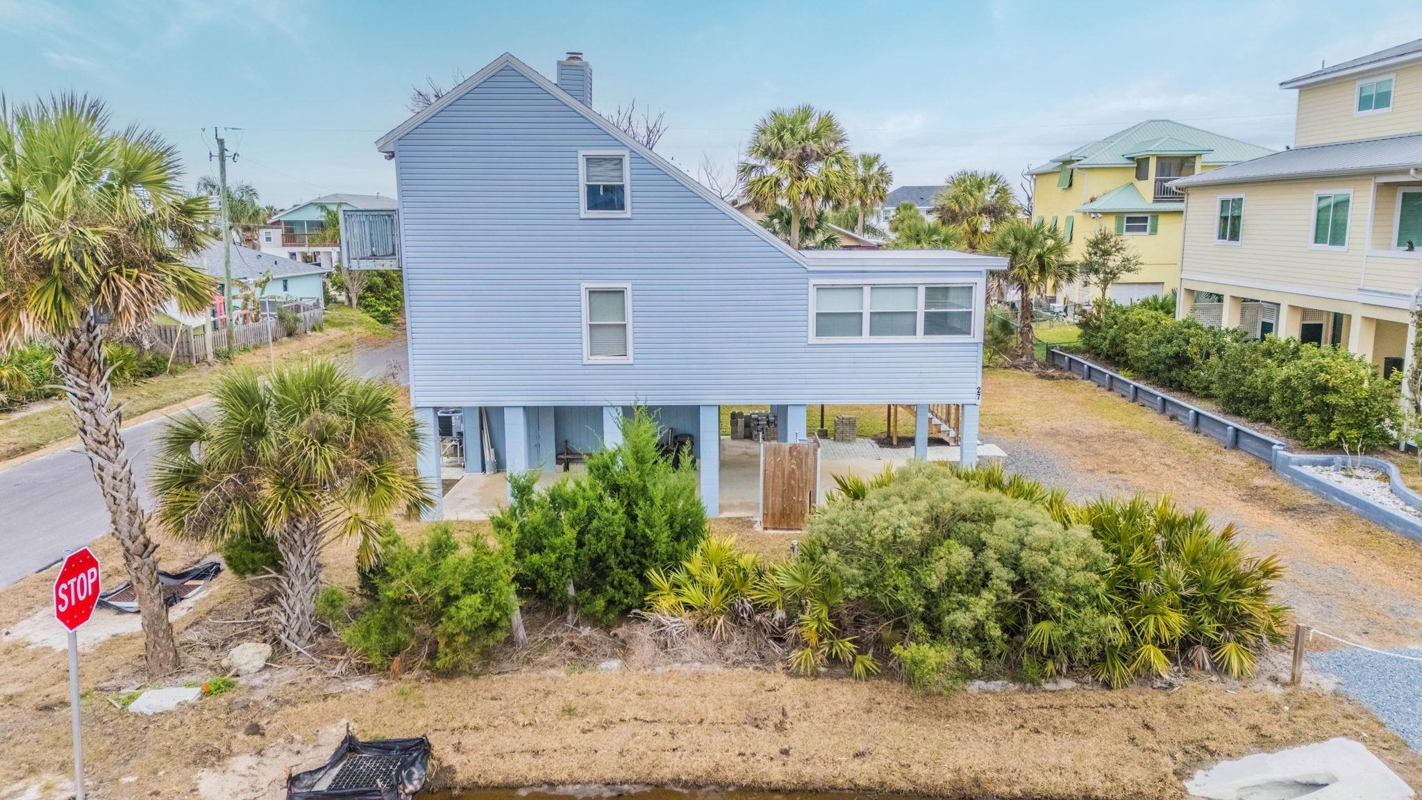 Come live by the beach hunt bargain house just a short stroll to the ocean! This home comes Turn Key Ready on a corner lot. 1 block to the water's edge! As you step inside, you'll be greeted by a fully furnished interior that exudes both beach comfort. With 3 spacious bedrooms; split floor plan and 2 bathrooms, this home provides ample space for family or guests. The thoughtful design includes a 2-car covered carport. Outdoor shower and huge extra storage room below! Hang out in sunroom, seamlessly connected to a porch facing East! The combined dining is the perfect space for entertaining or simply enjoying the coastal ambiance. The living room boasts a gorgeous shiplap ceiling, adding a touch of coastal sophistication. This expansive space sets the tone for the rest of the home and offers endless possibilities for customization. 1 year old Roof, new gravel driveway, AC approx. 5 years old, high impact windows throughout! This unincorporated neighborhood is great for short-term rentals! Whether you're seeking a permanent residence or a vacation getaway, this beautiful 3-story home on stilts offers the perfect blend of coastal living, stunning design, and comfortable functionality. Experience the charm and tranquility of the Florida beach life! Just a few miles from Shopping, State Parks and waterways! So much fun in the sun! The roads are completed and new drainage is being installed