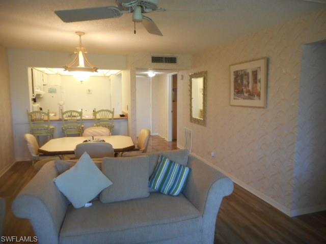 55+ community. This is available for an annual rental or seasonal rental. Wonderful golf course views await! You will be delighted by this 2nd floor 2 bedroom, 2 bath unit with expansive golf course views and an elevator! Sunshine fills this condo with light! This is one of the few units with a washer in the unit for convenience! The kitchen offers numerous cabinets and a pantry for optimum storage and a wide breakfast bar. The welcoming open floor plan offers a nice flow to the condo. The master suite has serene golf course views and a walk-in closet. The lanai has been opened to provide more comfortable living space. Forest Lakes is an active 55+ community with great amenities. Relax in the community pool within walking distance or pick up a match of tennis with friends. Forest Lakes is located in the heart of Naples only minutes to upscale shopping, exquisite dining and beautiful beaches