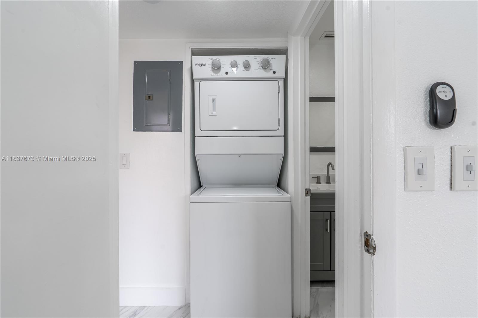 Condo features vaulted ceilings, New Cabinets with Quartz Countertops and Soft close cabinets, New Stainless Steel Appliances, Washer/Dryer that will fit a King Size Comforter, Updated Bathrooms, Ceramic Tile floors throughout and Hurricane Accordion Shutters for easy use to all windows and Patio.