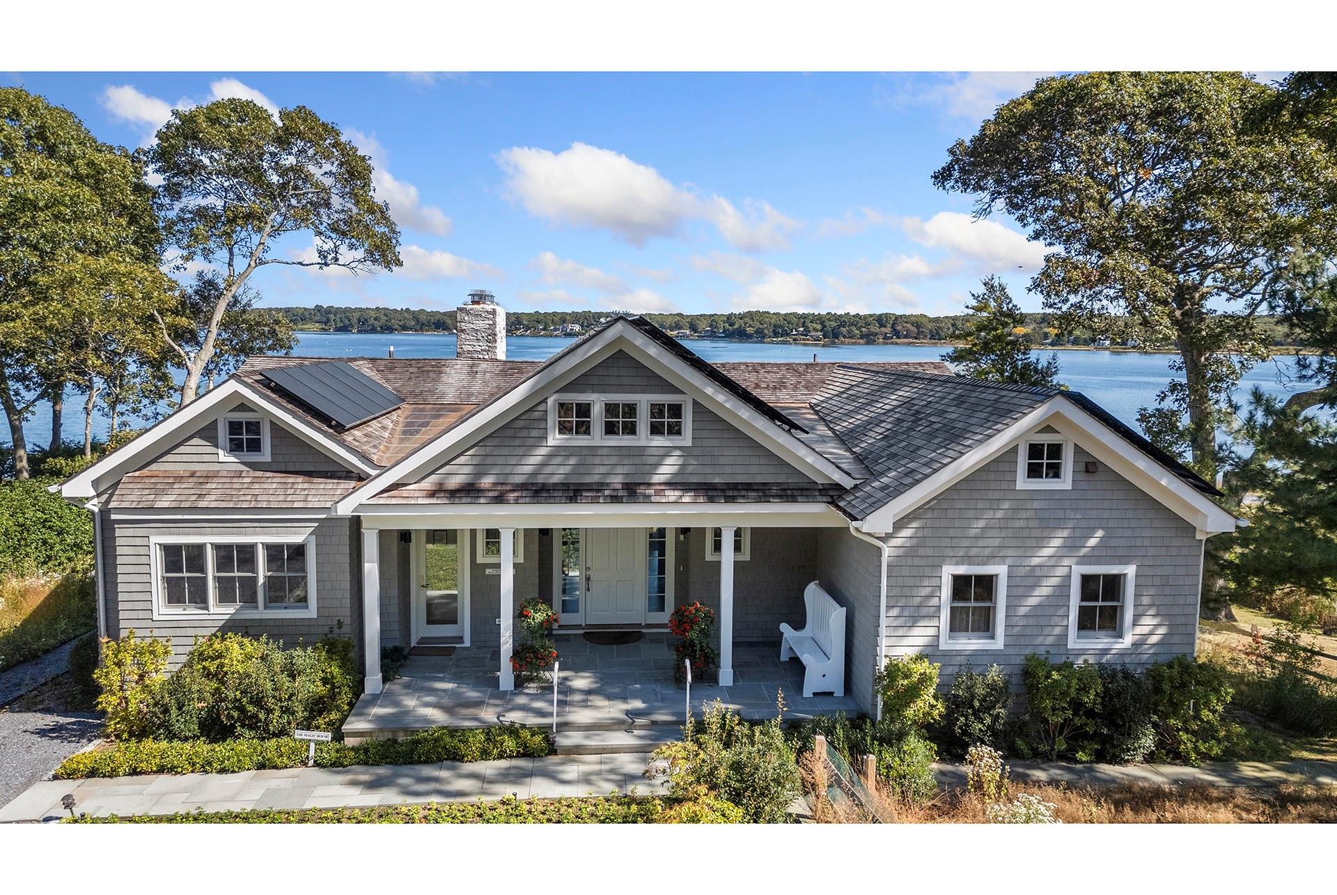 Facing due east with panoramic views and brilliant sunrises with 101' water frontage on Three Mile Harbor, this traditional house was thoroughly renovated in 2022. The upside-down configuration is approximately 3, 500 square feet and each floor can operate separate from one another. The main floor has a 23' vaulted ceiling that creates a dramatic space for the living room with fireplace, wet bar with wine refrigerator, dining area and designer kitchen with island, double sinks, dishwashers and generous walk-in pantry. There are 5 bedrooms with 10' tray ceilings and 4. 5 baths, two ensuite wings on the main floor, bedroom with private entrance and a separate private office with pocket door. The lower level hosts a living area with fireplace, kitchenette including sink, dishwasher and refrigerator, two ensuite bedrooms, miscellaneous room with shelving and a large mirror, laundry, massive amounts of storage and double doors leading to the water access. Additional amenities include a Kohler generator, solar panels, electric car charger, county water and Self- Contained Hydro Action AN600 waste treatment system. The house sits 50 feet from the shoreline and 13 feet above sea level setting up the best "in your face" preexisting view of them all. This is the home of the late Hamptons Wellness Foundation creator who was also a life coach and avid sportsman. Beautifully designed, built and sited on 0. 54 acre, the house is insulated from traffic noise because of the cul-de-sac location.