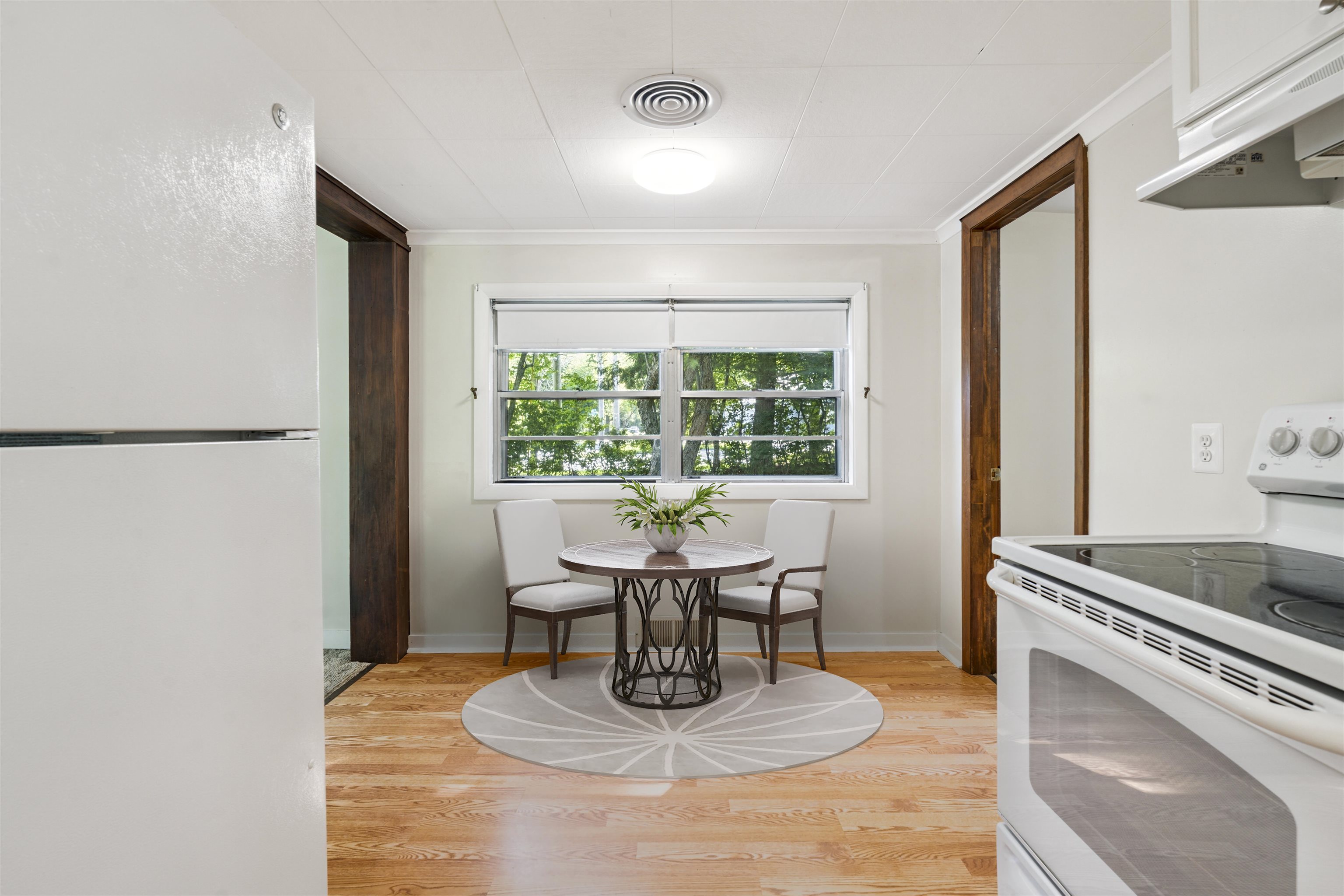 2 BROCKWAY ROAD- Cute contemporary bungalow in highly desirable neighborhood on the South End of Hanover just minutes to town, schools, Dartmouth College campus, shopping, and miles of conserved land and trails. The house interiors are bright and functional with a central south facing living room adjacent to a well-appointed kitchen. The primary bedroom is on the west side of the house with a second bedroom on the north, sharing a 3/4 bathroom with laundry. The lot is level and spacious with direct access to the sidewalk to town. Enjoy as is or bring your imagination to explore expansion. Showings begin Thursday, 7/17. Furnished photos are virtually staged.