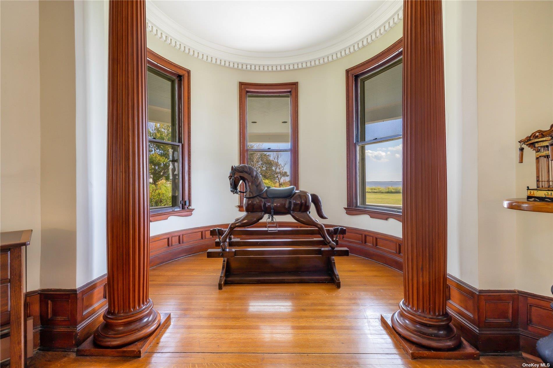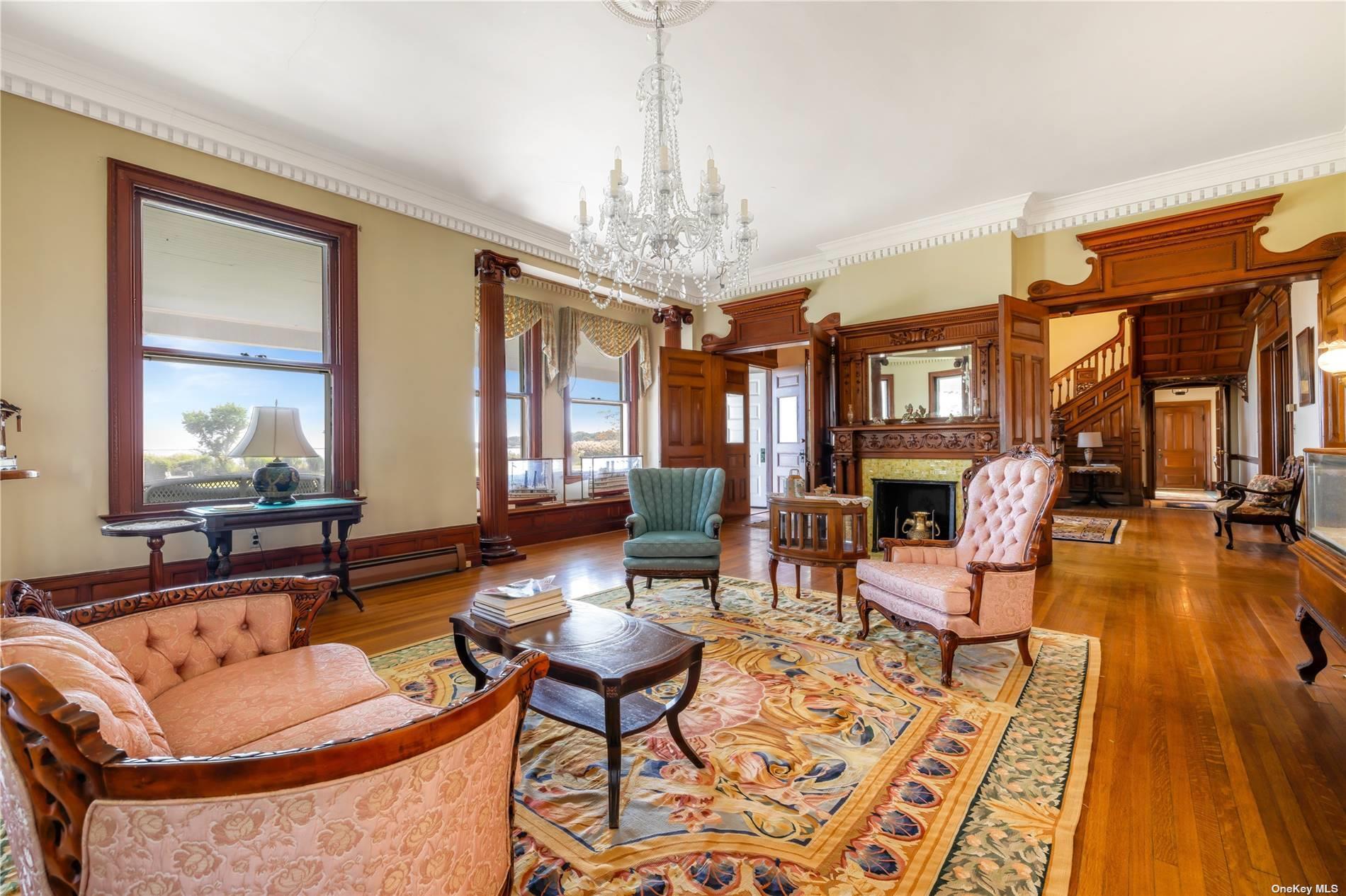 Timeless Grandeur on the Waterfront-Step into a world of historic elegance and boundless potential at this rare, waterfront gem. Nestled on over 3 acres of gently rolling grounds and boasting an impressive 383 feet of private bayfront, this iconic 1896 Queen Anne Victorian stands as a testament to craftsmanship, character, and charm. Spanning nearly 9, 000 square feet across three expansive levels, the home is a pristine, unspoiled masterpiece of original 19th-century architecture. From the moment you pass through the grand double arched doors, you’re greeted with soaring ceilings, ornate moldings, leaded glass windows, and hand-carved woodwork—all echoing the grace and grandeur of a bygone era. With 8 spacious bedrooms, 7 fireplaces, a dramatic spiral staircase housed in its own turret, and a fourth-floor attic with endless possibilities, this estate is as functional as it is breathtaking. Wraparound covered porches, private balconies, and oversized windows offer uninterrupted views of the bay, bathing the interiors in natural light and serene coastal beauty. Outside, discover English-style gardens, a charming gazebo, and a 40-foot swimming pool surrounded by stone patios—perfect for entertaining or private relaxation. Whether preserved as a historic showpiece or thoughtfully modernized to suit a contemporary lifestyle, this extraordinary estate offers limitless opportunity to create a one-of-a-kind legacy property.