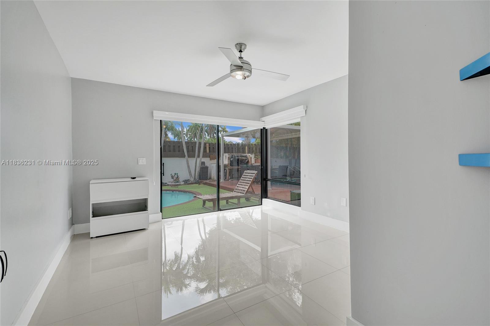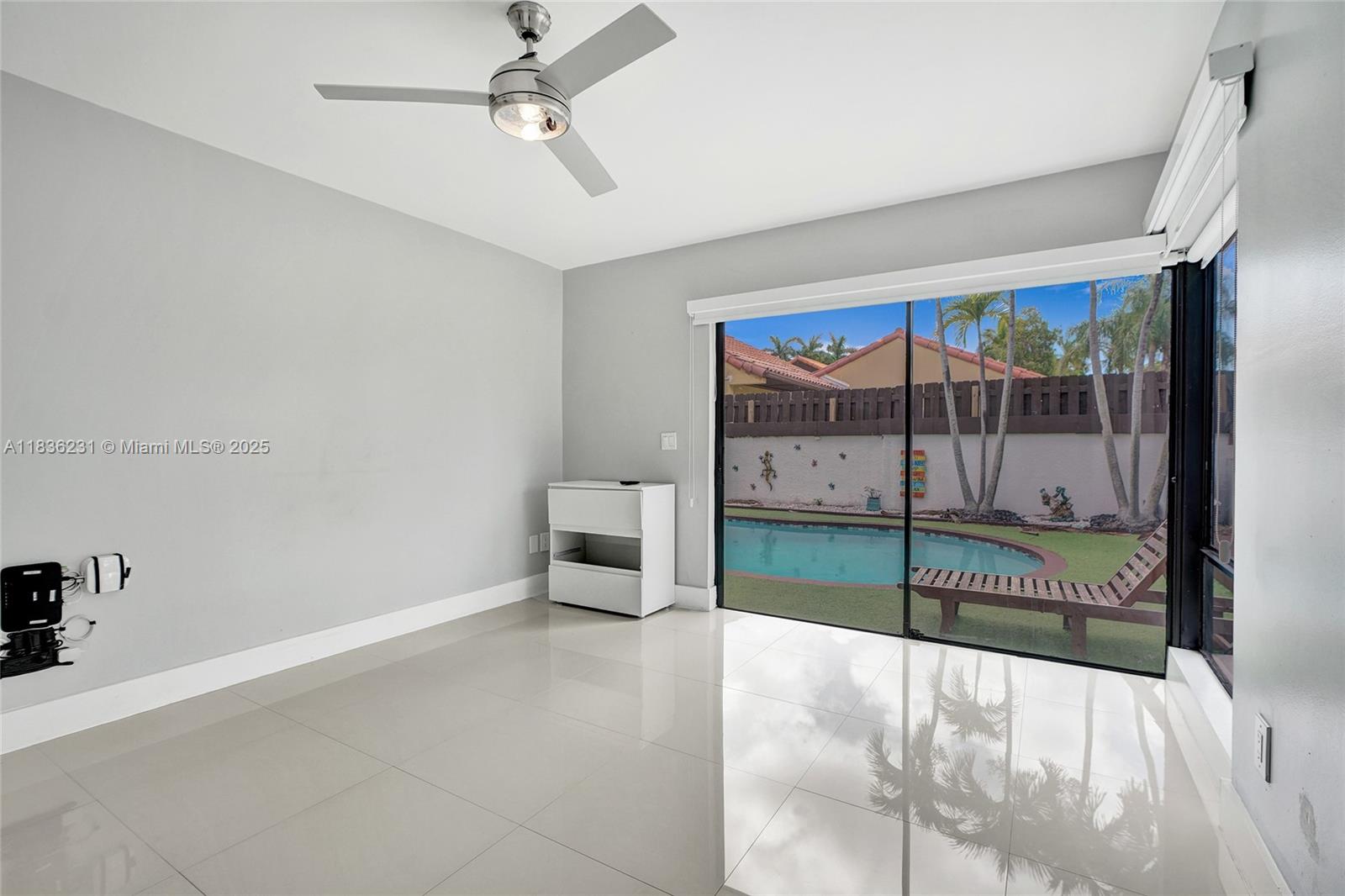 This stunning 4-bedroom, 3-bath home in California Club Homes, Miami, combines modern elegance with comfort. The backyard is an entertainer's dream, featuring a sparkling pool, lush landscaping, a shaded dining area, and a custom-built barbecue station. Inside, the bright, airy layout boasts high ceilings, stylish living spaces, and a gourmet kitchen with sleek cabinetry, stainless steel appliances, and a spacious island. The serene bedrooms include a luxurious master suite with a spa-like ensuite. A flex room adds versatility, while the two-car garage and convenient laundry room enhance functionality. Located near parks, shopping, dining, and top-rated schools, this home offers the perfect blend of luxury and convenience.