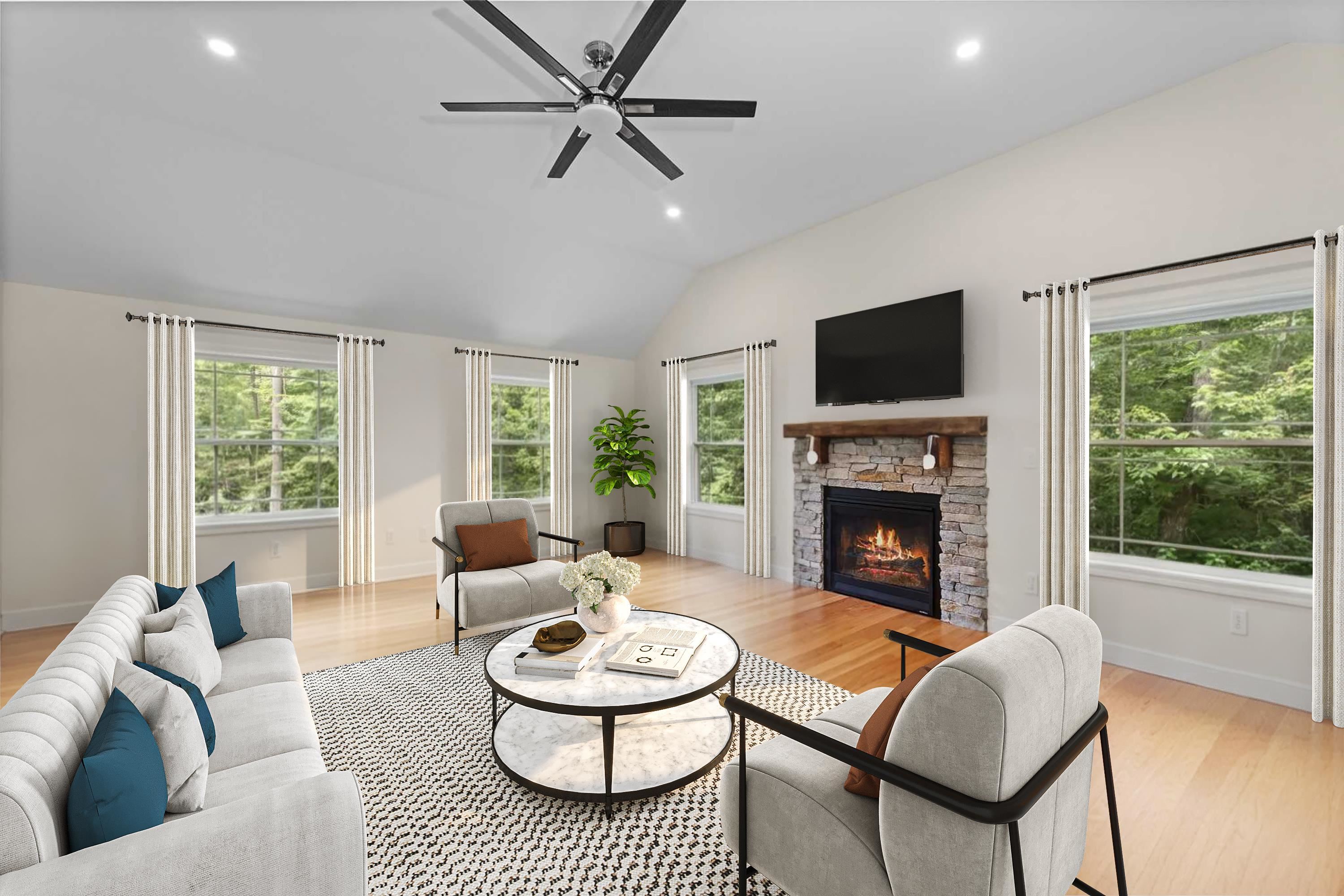 Newly constructed home! Welcome to 187 Intervale Road. Nestled on a quiet road in scenic Canterbury, this well-maintained 3-bedroom, 3-bathroom home offers the ideal mix of privacy, comfort, and convenience — only 5 minutes from I-93 and just 10–15 minutes to Concord and Tilton. Set on a private lot with a paved driveway, oversized insulated 2 car garage, and welcoming covered farmer’s porch, this home invites you in with an open, airy layout featuring hardwood floors, vaulted ceilings, and a cozy propane fireplace with easy light-switch control. The kitchen boasts quartz countertops and a smart-enabled oven, perfect for modern living and entertaining. In addition to the spacious bedrooms, this home offers a large dedicated office space, ideal for remote work, homeschooling, or creative projects. The oversized primary suite features abundant space and generous closet storage, while the future-finish-ready basement adds even more potential. Smart features throughout include programmable thermostats, smart lighting, and smart-enabled garage doors. Step outside to enjoy the backyard fire pit area, perfect for relaxing evenings in a peaceful, private setting. This move in ready home checks every box — from function to comfort and tech-savvy style.