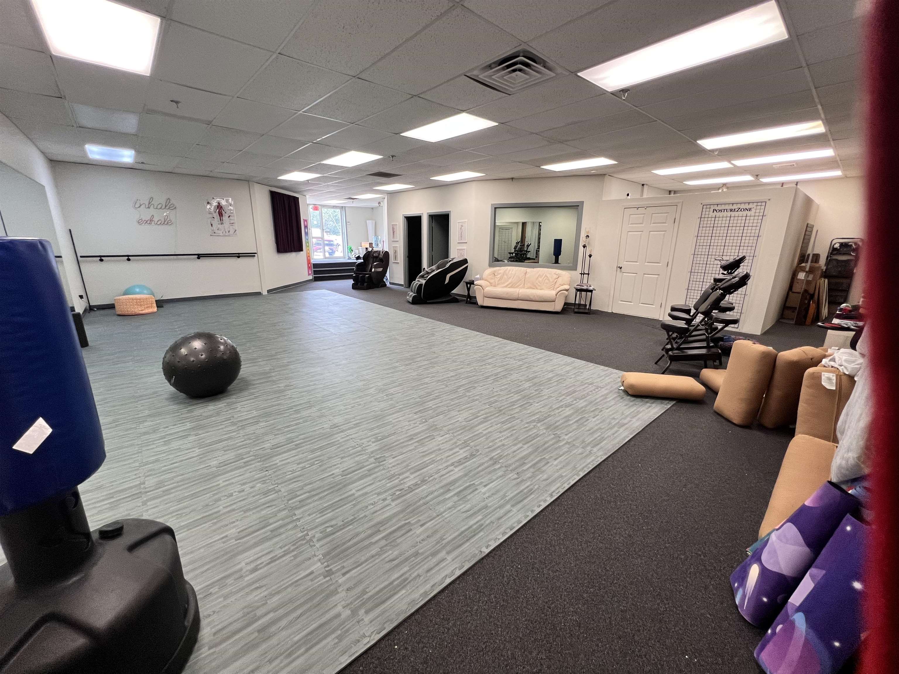 Available for lease: 1, 600 sq. ft. commercial space located on the back side of the building with its own private exterior entrance. Currently outfitted as a fully equipped massage and physical rehab studio, the space is turnkey and ready for immediate use—equipment can remain at no charge or be removed if preferred. Located on the first floor of a mixed-use building with residential units above, this unit sits directly across the street from Paugus Bay on Lake Winnipesaukee, offering high visibility on a busy road with strong foot traffic. Surrounded by other established health and wellness businesses, this location presents an ideal opportunity for professionals seeking collaboration and synergy in a thriving wellness-focused environment.