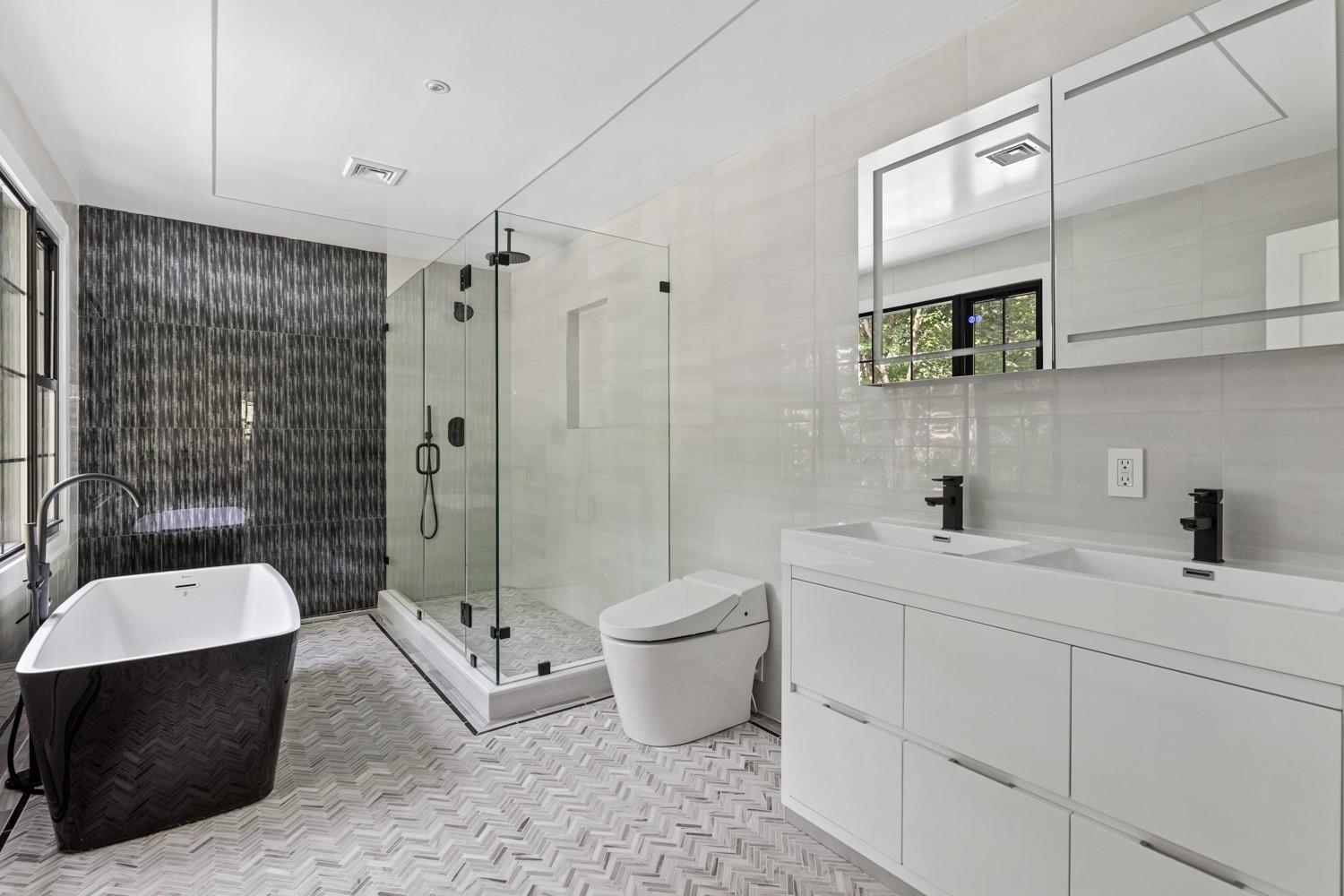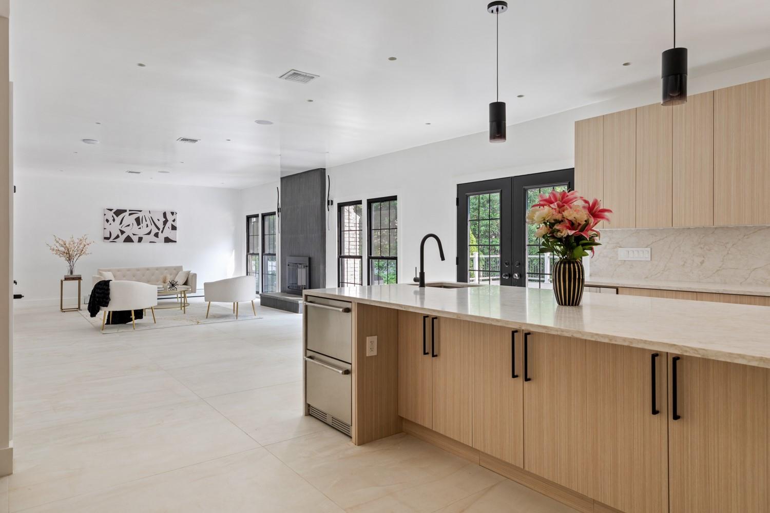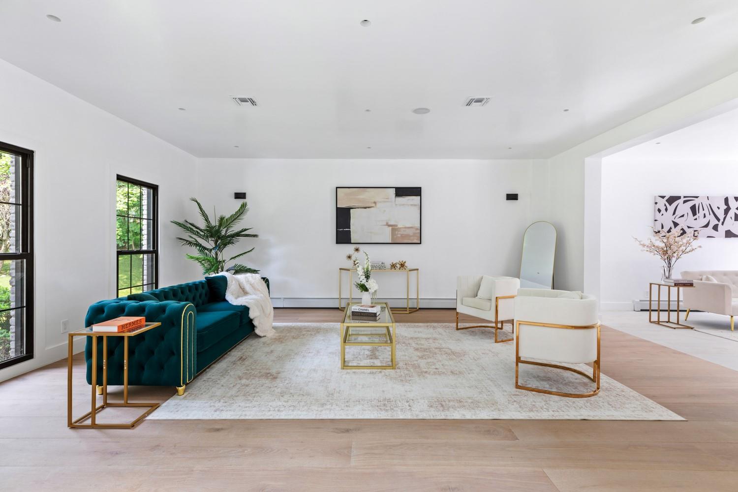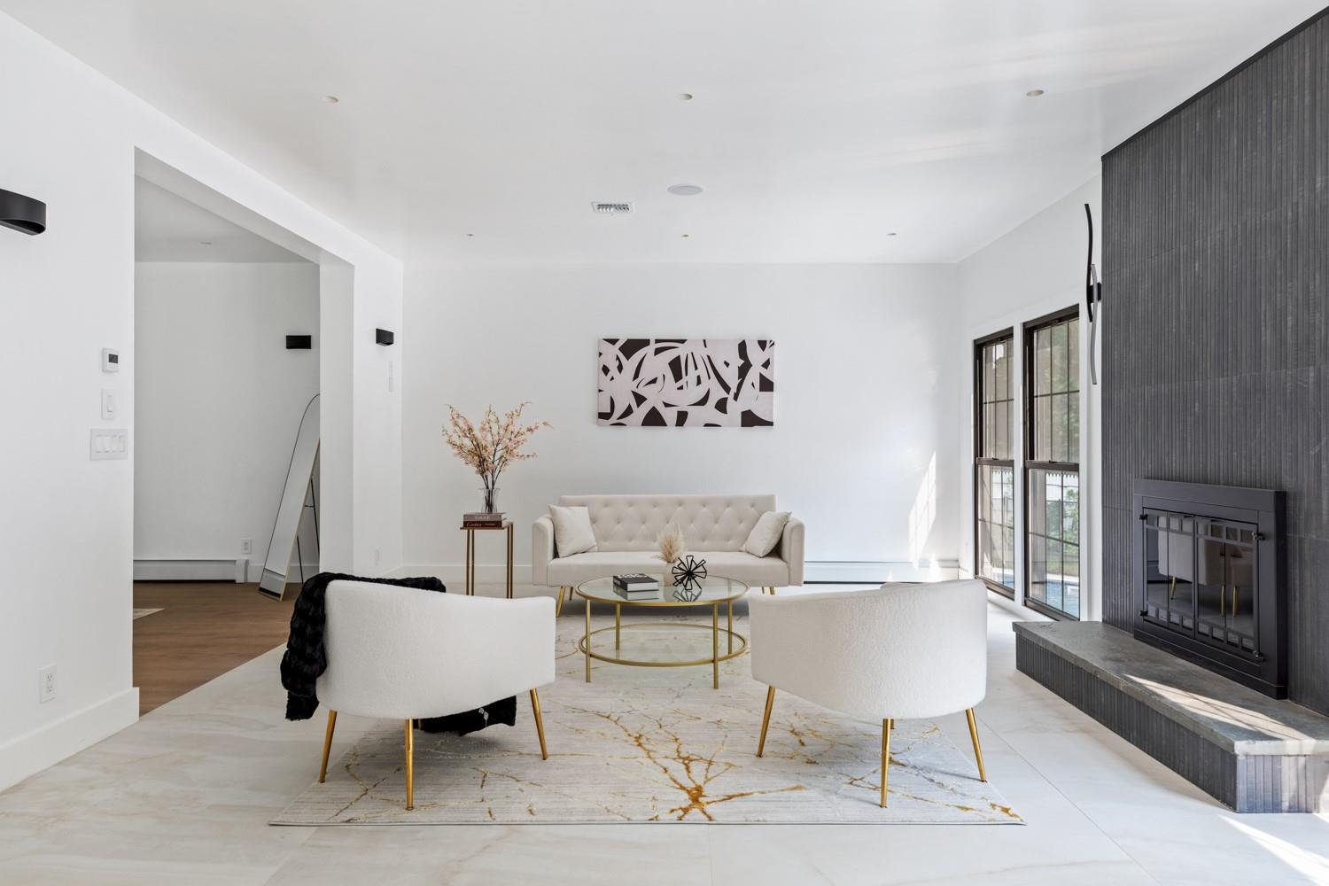Welcome to a rare opportunity to own a fully renovated and extended estate—rebuilt from the studs up and reimagined for modern luxury in the heart of one of Long Island’s most coveted neighborhoods. Set on a beautifully manicured 2 acre lot, this 6-bedroom, 5. 5-bathroom smart residence combines sophisticated design, premium finishes, and cutting-edge amenities, offering a seamless blend of elegance. Every inch of the home reflects quality and intention—from the radiant heated floors throughout the entire main level and every bathroom to the sleek, designer fixtures and finishes throughout. The gracious first floor features a private guest suite with a separate entrance, ideal for extended family and guests. The chef’s kitchen is the true centerpiece—a culinary dream outfitted with a massive center island, top-tier stainless steel appliances, including a 48” Bertazzoni induction range with double ovens, oversized refrigerator and freezer, dual dishwashers, custom cabinetry, beverage drawers, and thoughtful built-ins—all designed to inspire both intimate dinners and large-scale entertaining. The second floor is home to a luxurious primary suite with a spa-inspired en-suite bath, radiant heated floors, oversized closet, and tranquil views of the property. Three additional spacious bedrooms upstairs offer generous closets, and large windows that flood the rooms with natural light. With a dedicated second-floor laundry area, convenience meets everyday function for busy households. The fully finished basement features its own private exterior entrance and offers an abundance of versatile space, including a wine cellar, gym, recreation, full laundry room, and more— The home's brand-new exterior features include a new roof, striking black energy-efficient windows, and a large Trex deck that opens from the kitchen to your own private oasis complete with an in-ground pool. Every system has been updated—new electrical, plumbing, floors, HVAC, and insulation—ensuring true turnkey luxury living. This is more than a home—it's a statement. A rare offering of timeless craftsmanship and modern design in one of the most distinguished enclaves.