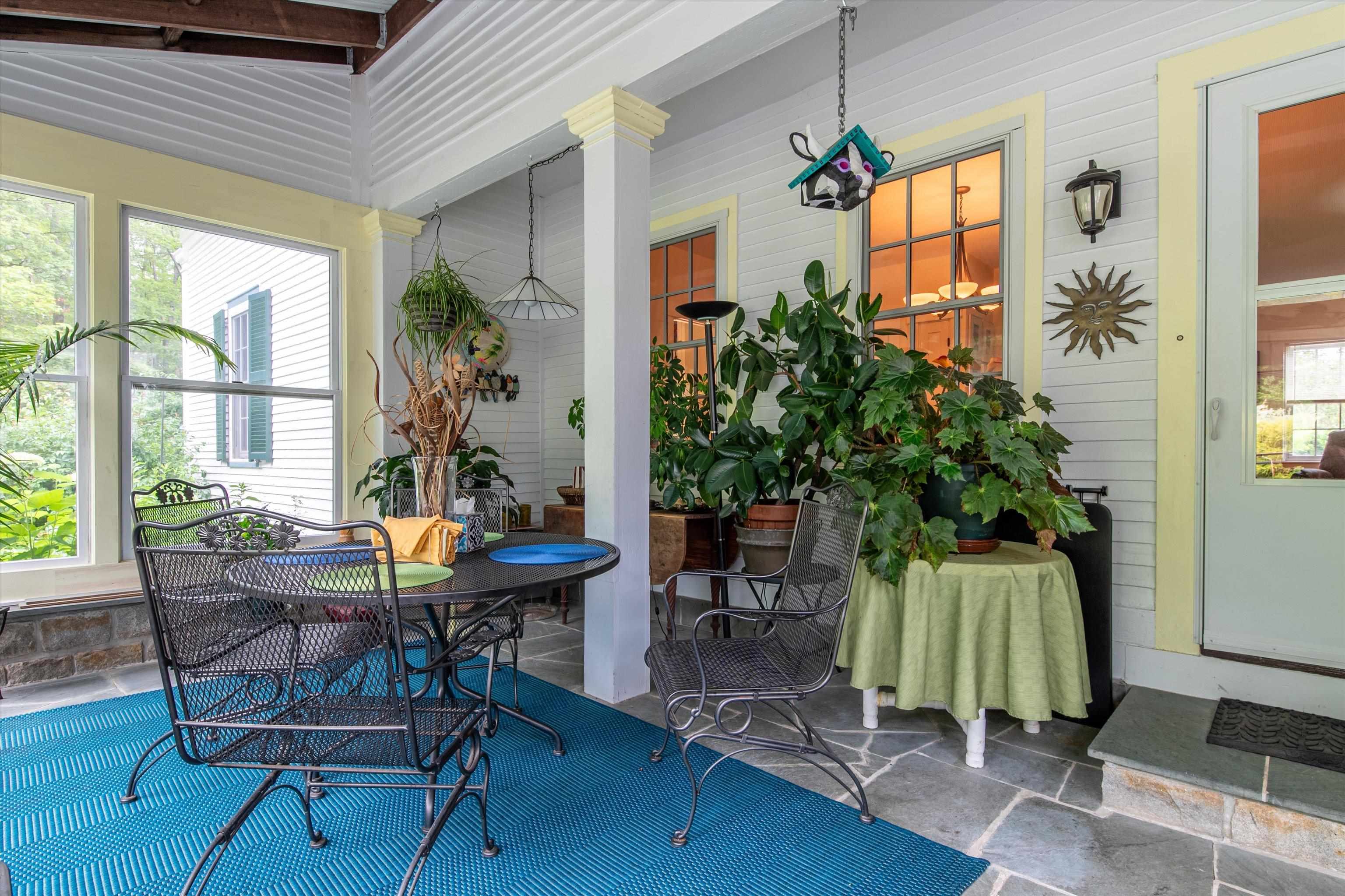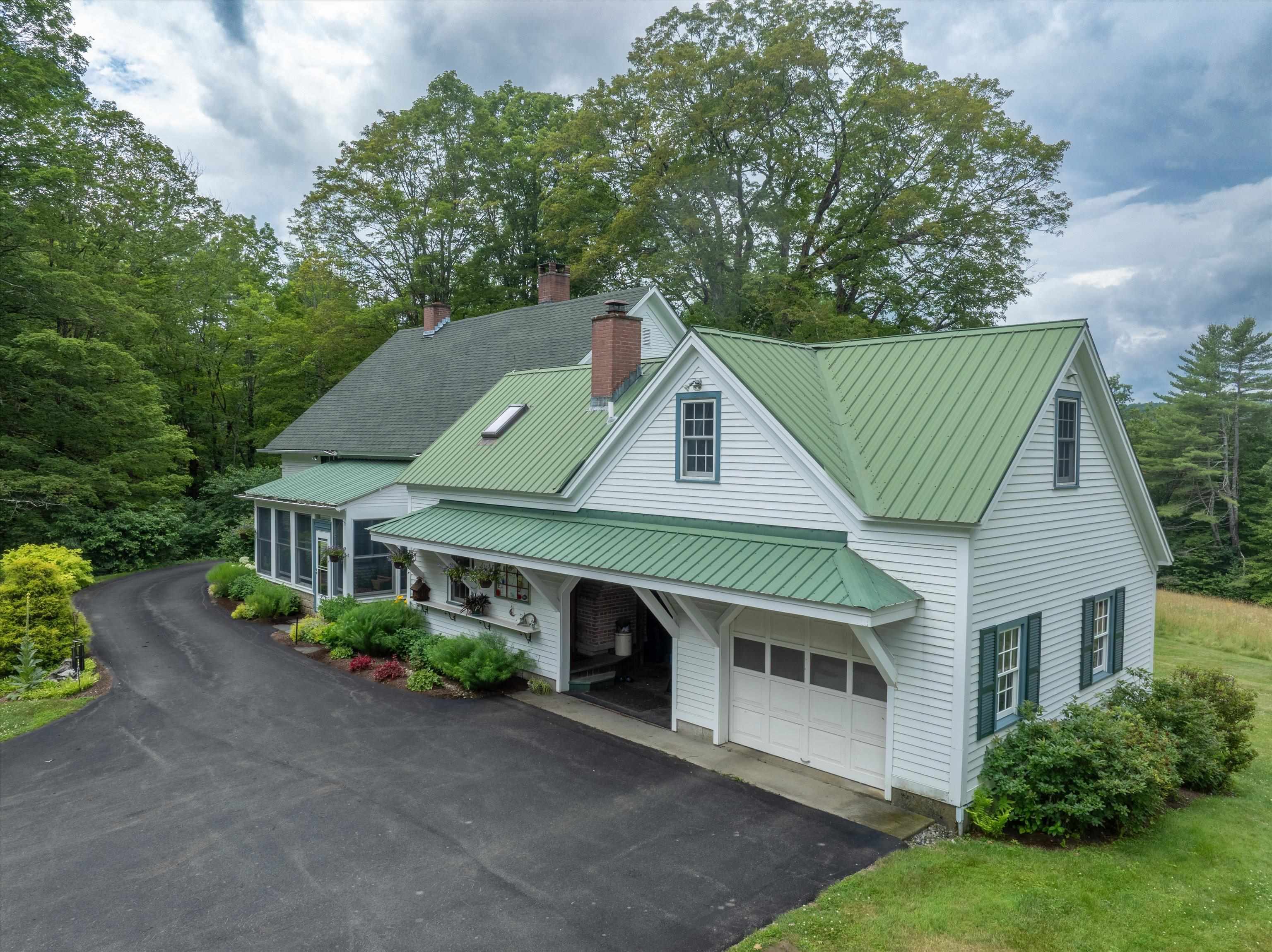 This charming vintage cape set on 6. 6 acres is the perfect blend of classic character and modern updates. The home offers 5 bedrooms, 4 baths and spacious common rooms including a lovely three season room just perfect for morning coffee or unwinding at the end of the day. There is a separate entrance in the garage leading to the second floor which offers an opportunity for a private space for extended family, guests or potential income rental. The first floor office can be turned into a bedroom allowing for one level living. Two pantries, a storage room and ample closet space offer lots of storage space inside the house. Updated kitchen, baths, newer windows, newer roofing, and a Tesla wall are just a few of the improvements made to this property. Outside there is a detached 2 car garage with additional storage space and an attached deck. There are stately maples as you approach the house which is graced with lovely perennial beds. A stunning stone patio with a screened gazebo is perfect for entertaining or just relaxing taking in the local view over the open field. The land is a combination of open land, manicured flower beds and woods offering an idyllic setting in every season. Not enough can be said in this brief description. A visit is needed to experience the privacy, serenity and beauty this property offers. Located 1/2 hour to Okemo ski area and 6-7 minutes to I-91.