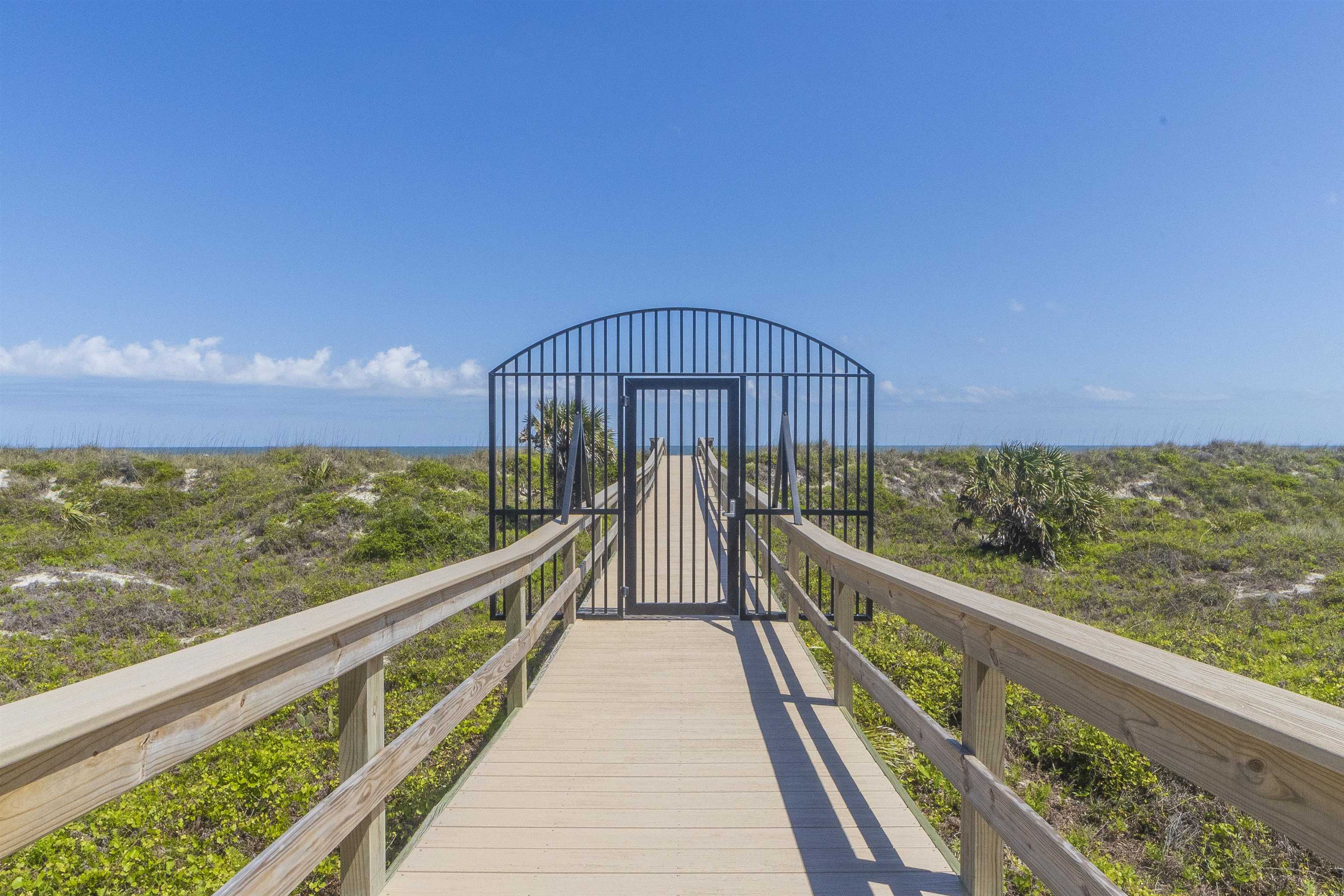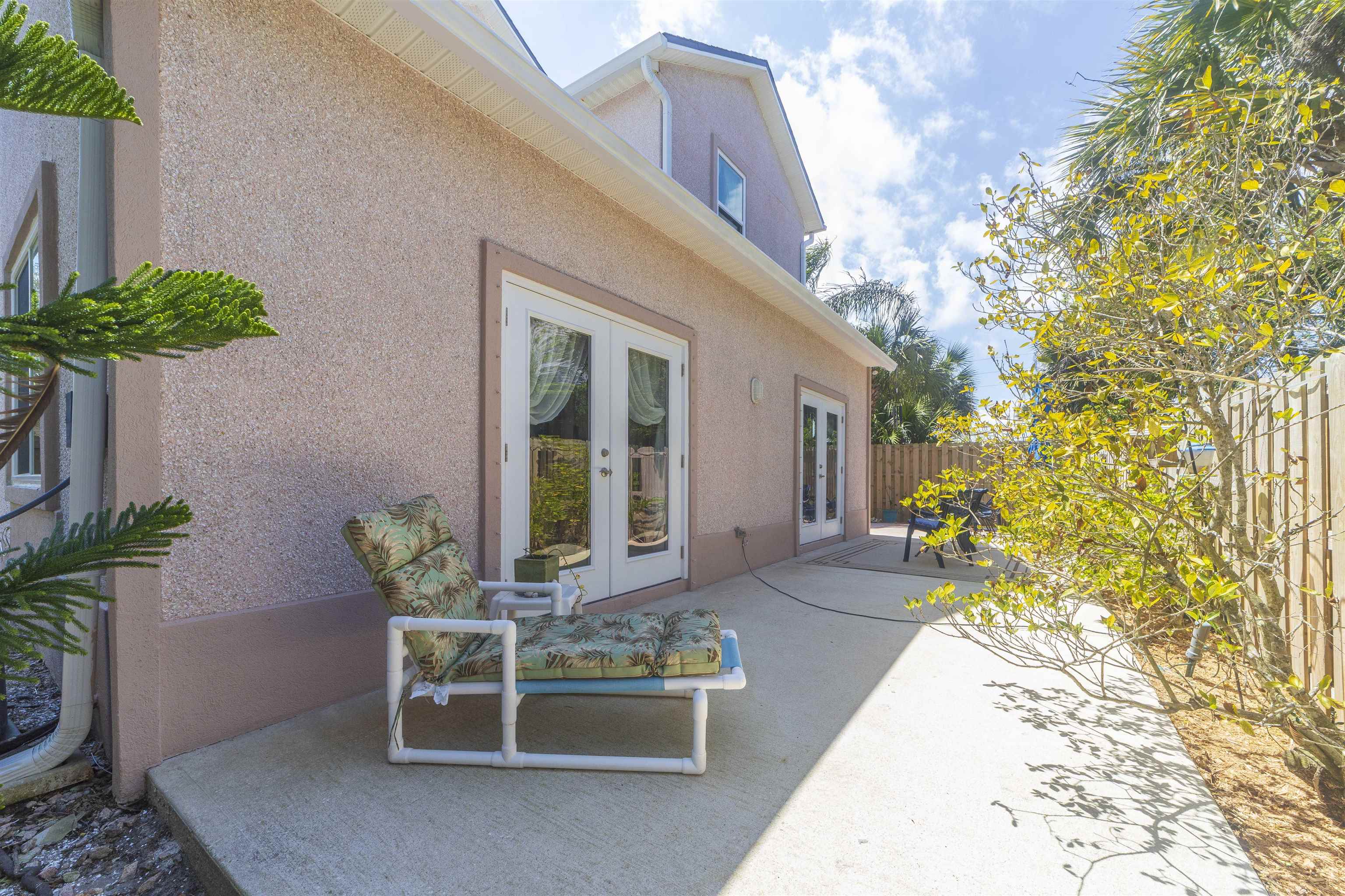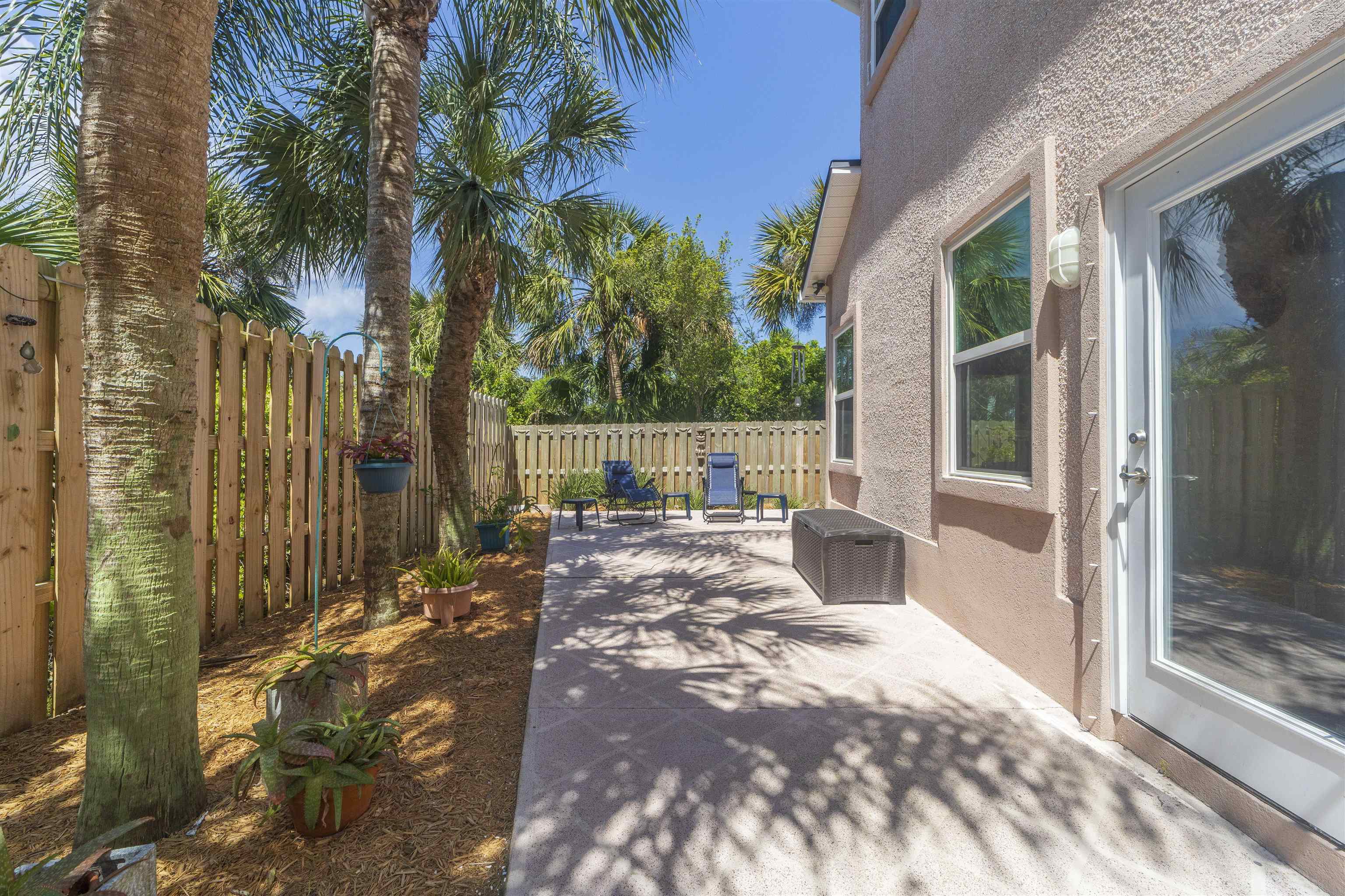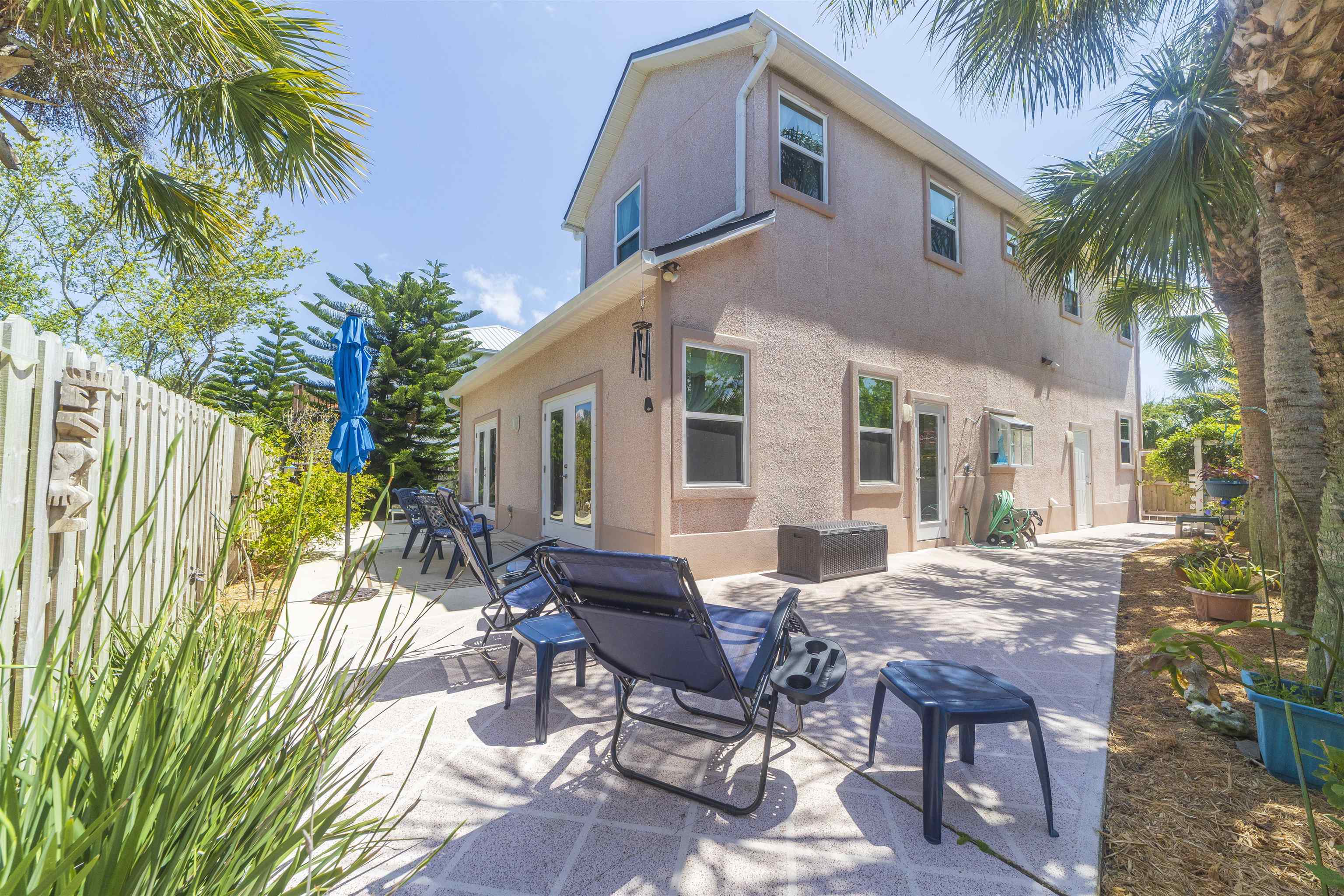 Positioned on the beach side of A1A, between Butler and Crescent Beach, this home is part of a cozy, established neighborhood and is just a one-minute walk from the private community boardwalk to the beach. The property, which has been lovingly maintained, is flooded with natural light and offers a spacious, semi-open floor plan. This layout is perfect for accommodating family and friends, allowing them to flow seamlessly between the living room, dining room, and large kitchen. The front porch is a charming spot for small gatherings, and the L-shaped patio and fenced backyard provide additional space for entertaining. A new roof installed in July 2025 with transferable warranty! System plus GAF Registered Warranty, 10 Year Labor Warranty and Lifetime product Warranty. The home features 10-foot ceilings downstairs with crown molding that continues to the upstairs landing, where you’ll find the south-facing deck and three generously sized bedrooms. Have coffee on the deck, enjoy the sunrise, or sip a libation and take in the stars. This home is convenient to shopping and dining, parks, the Amphitheatre, and our historic downtown. Relax and embrace a beachy lifestyle! Seller is offering a $10, 000 credit to the buyer at closing!