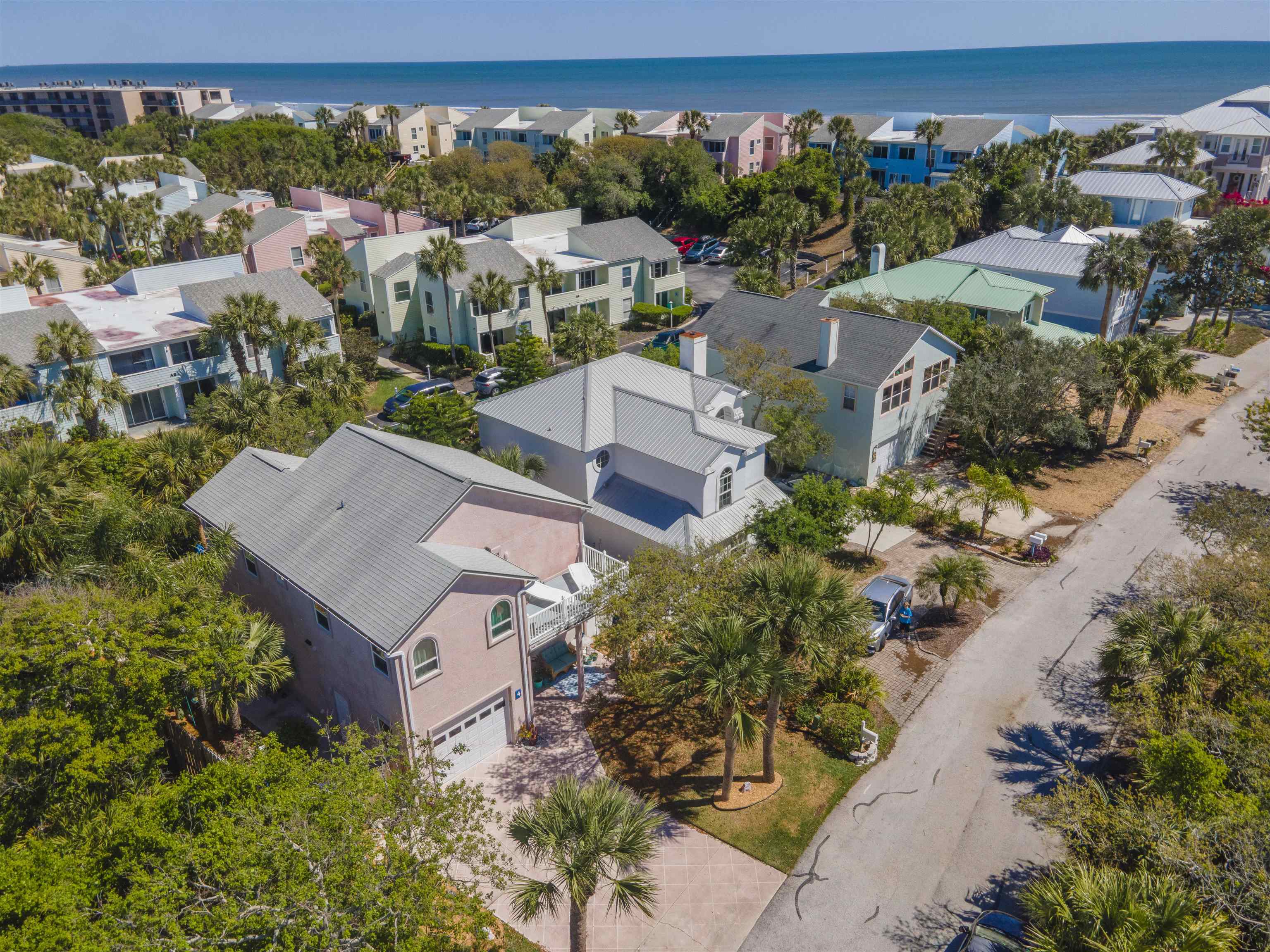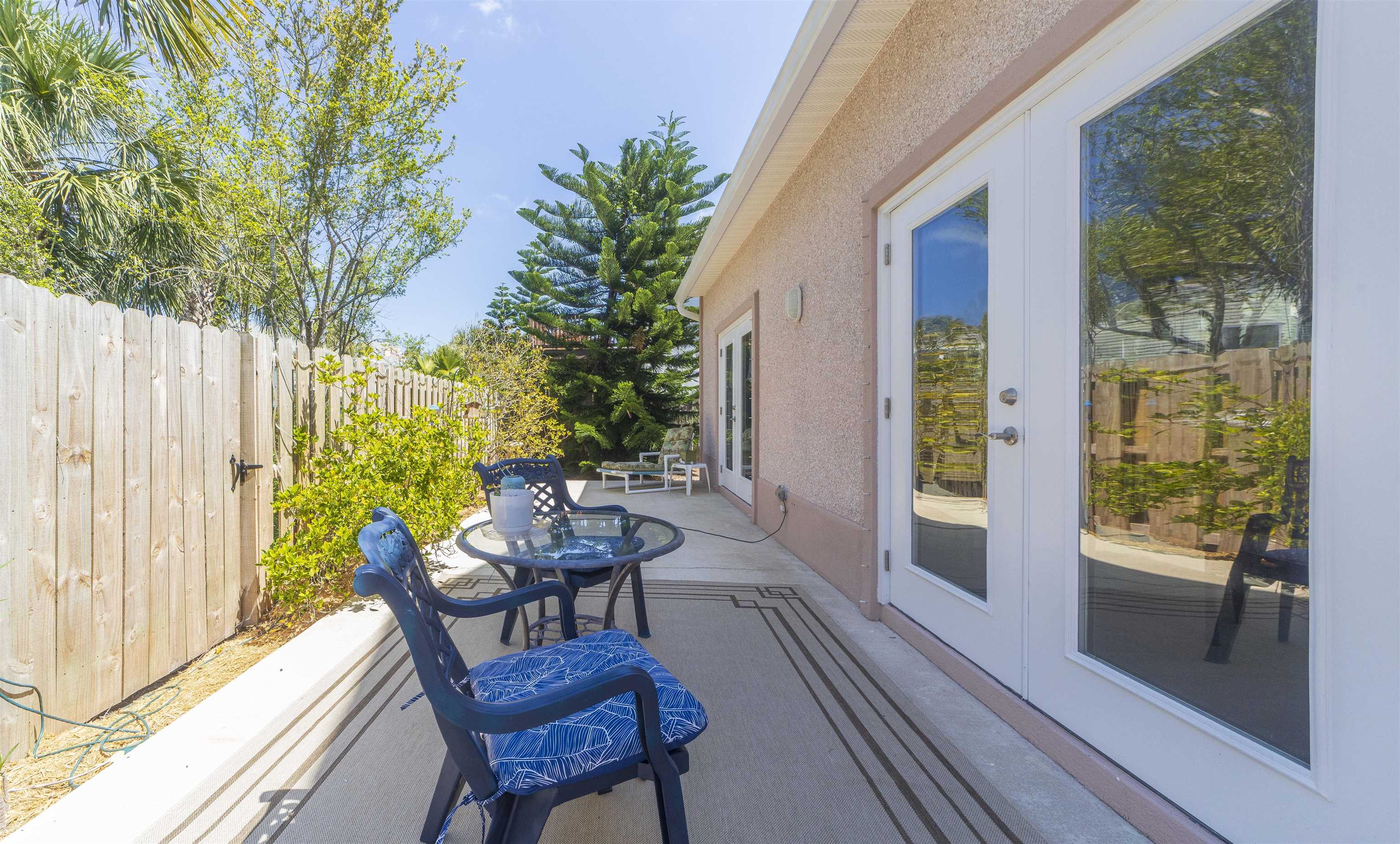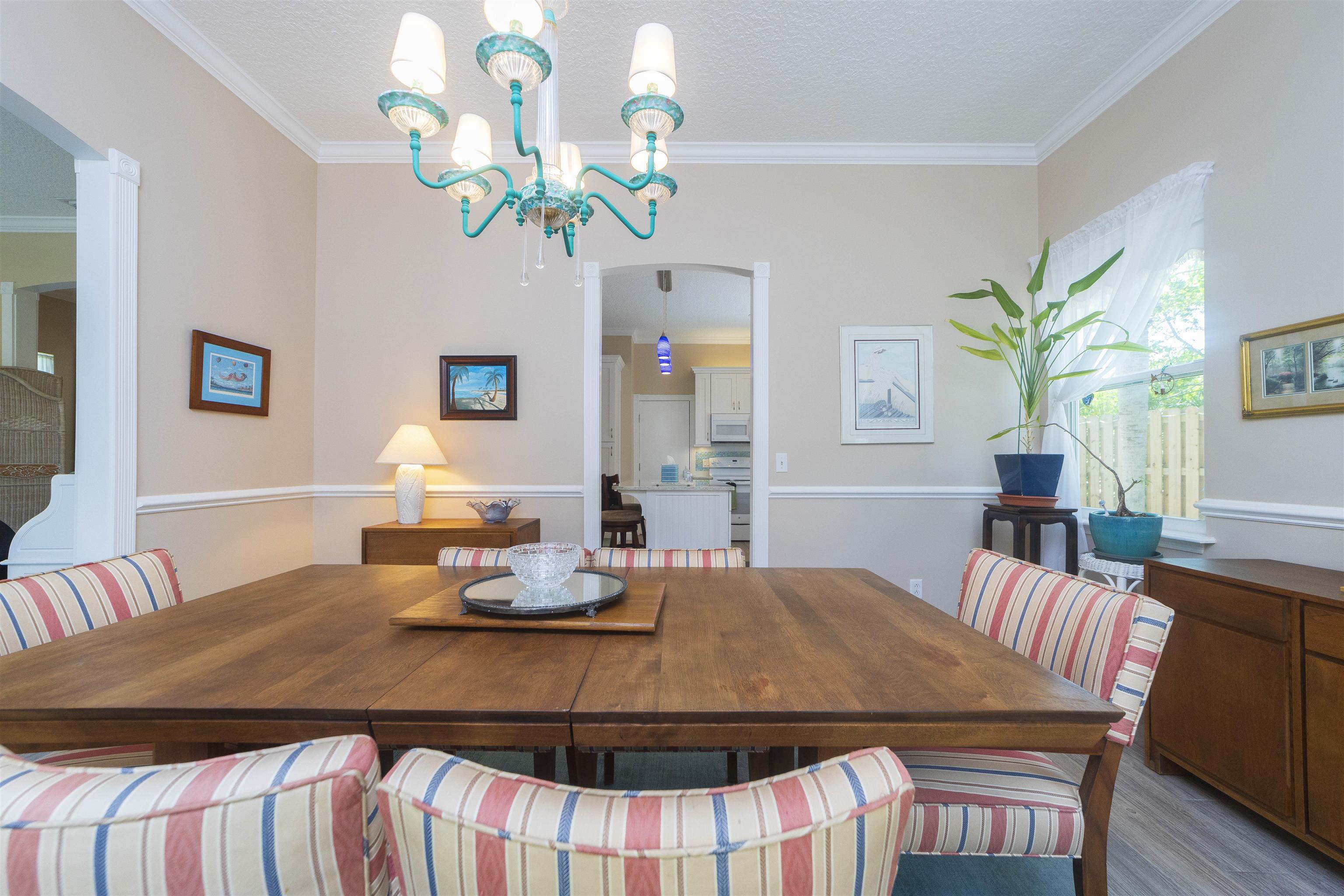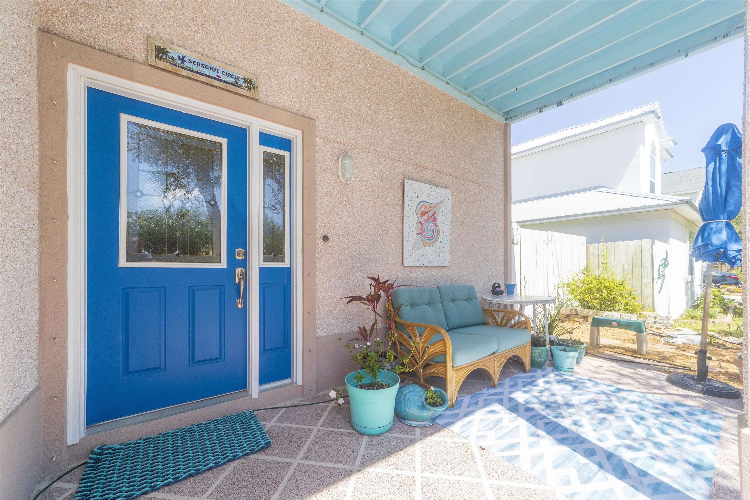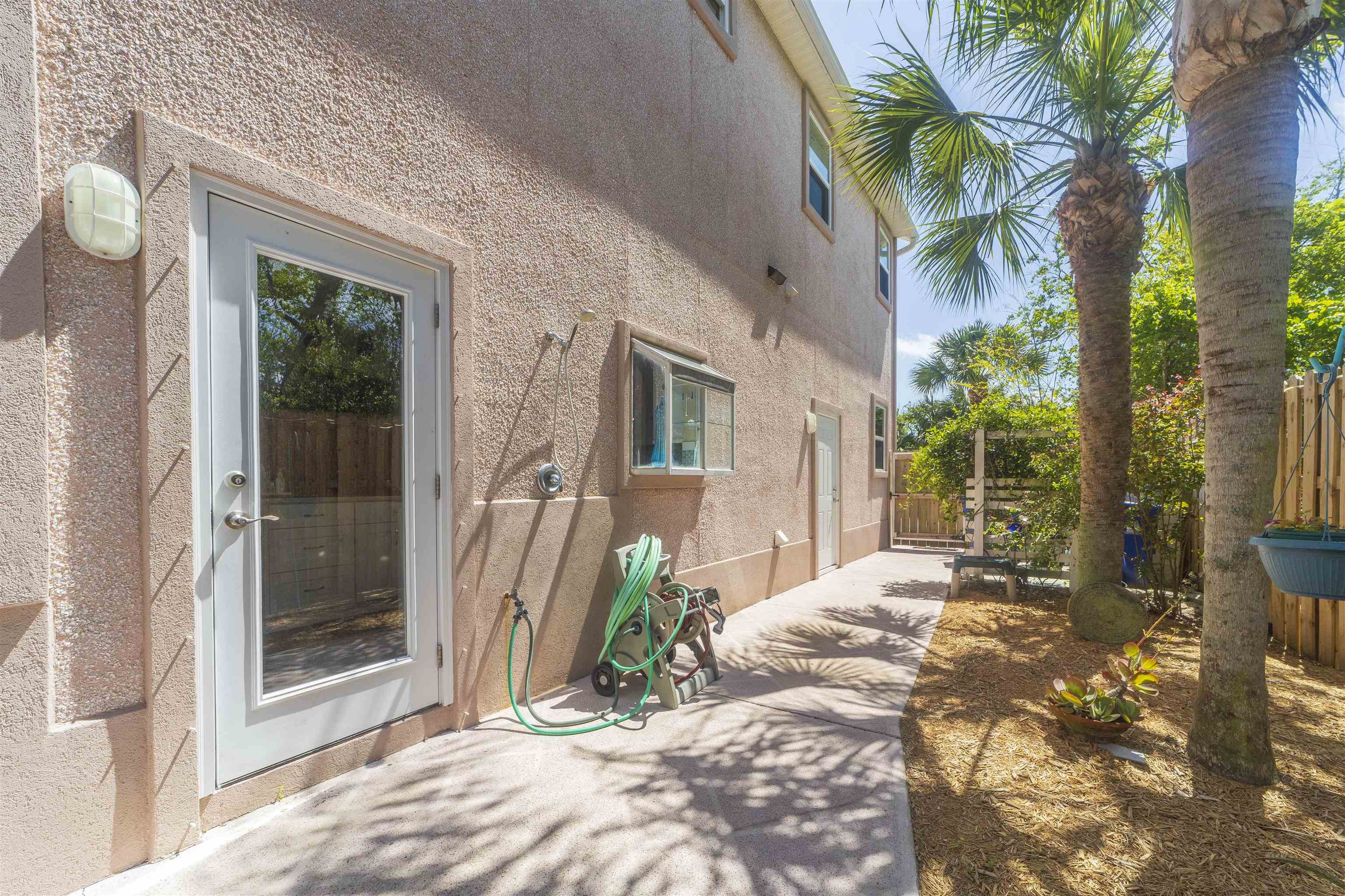 Positioned on the beach side of A1A, between Butler and Crescent Beach, this home is part of a cozy, established neighborhood and is just a one-minute walk from the private community boardwalk to the beach. The property, which has been lovingly maintained, is flooded with natural light and offers a spacious, semi-open floor plan. This layout is perfect for accommodating family and friends, allowing them to flow seamlessly between the living room, dining room, and large kitchen. The front porch is a charming spot for small gatherings, and the L-shaped patio and fenced backyard provide additional space for entertaining. A new roof installed in July 2025 with transferable warranty! System plus GAF Registered Warranty, 10 Year Labor Warranty and Lifetime product Warranty. The home features 10-foot ceilings downstairs with crown molding that continues to the upstairs landing, where you’ll find the south-facing deck and three generously sized bedrooms. Have coffee on the deck, enjoy the sunrise, or sip a libation and take in the stars. This home is convenient to shopping and dining, parks, the Amphitheatre, and our historic downtown. Relax and embrace a beachy lifestyle! Seller is offering a $10, 000 credit to the buyer at closing!