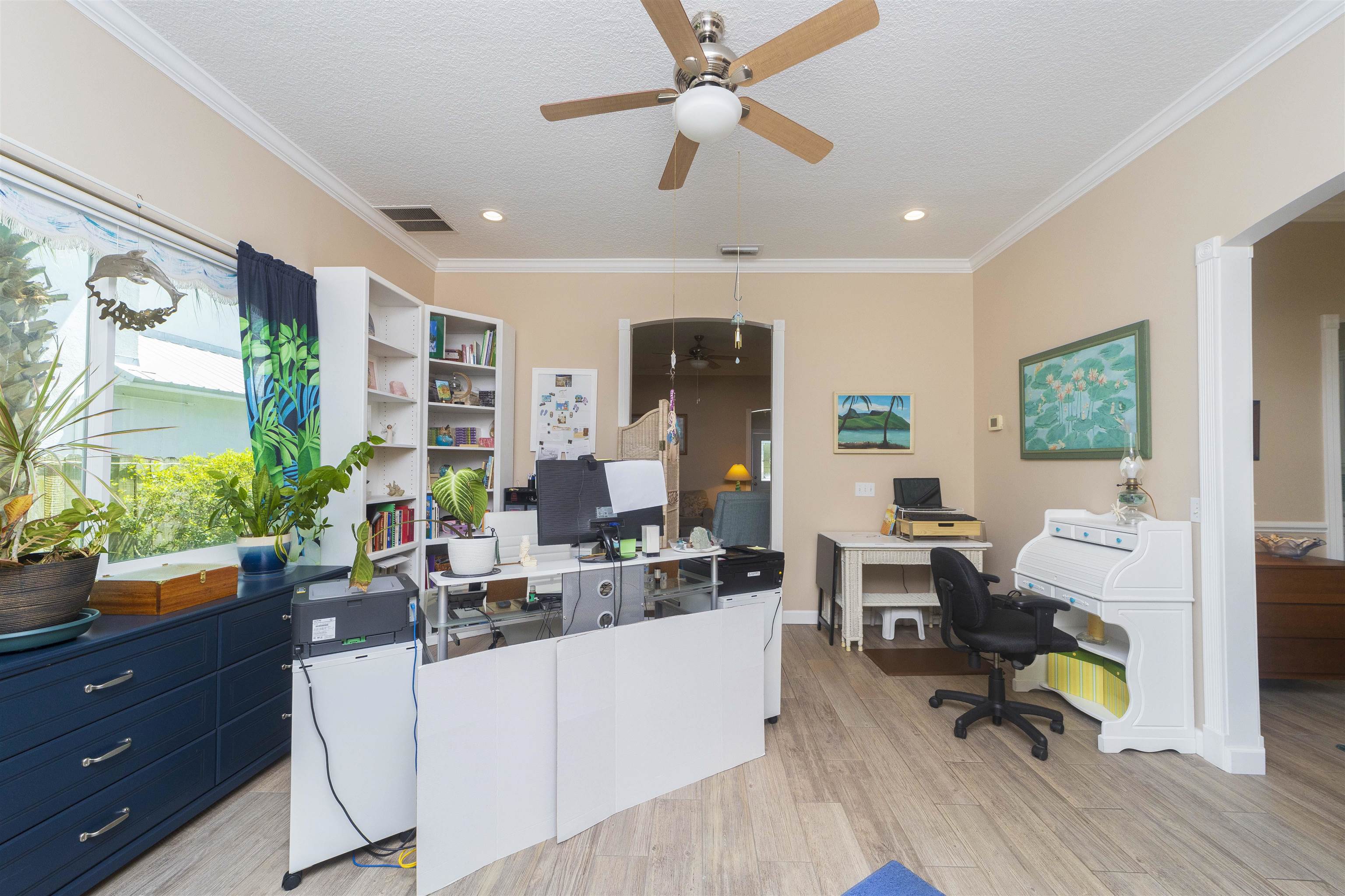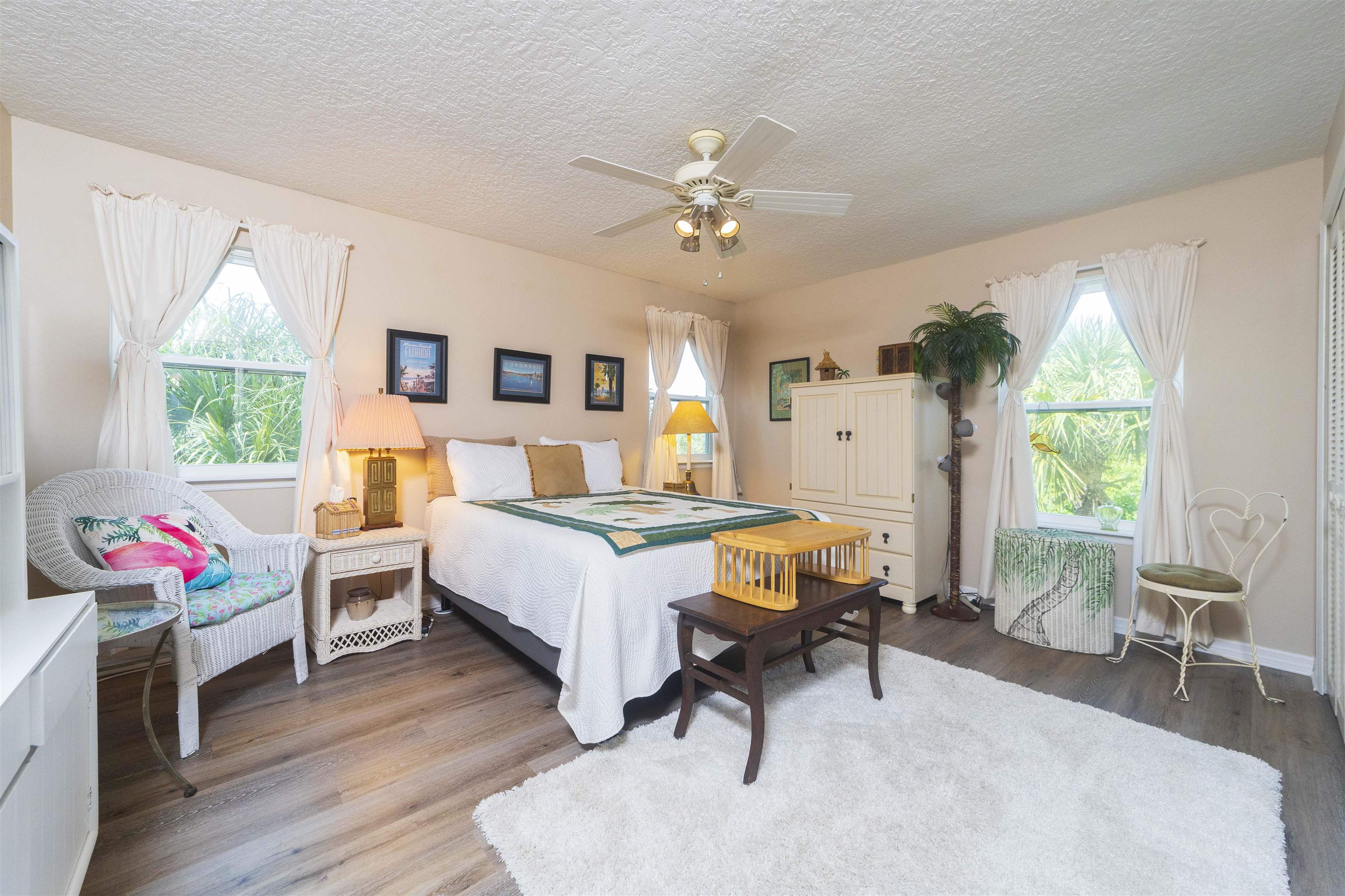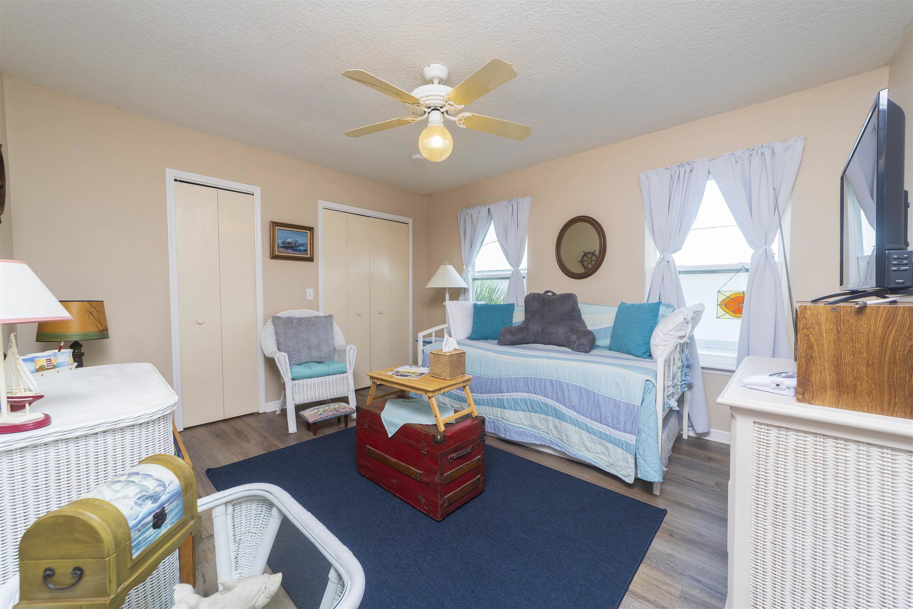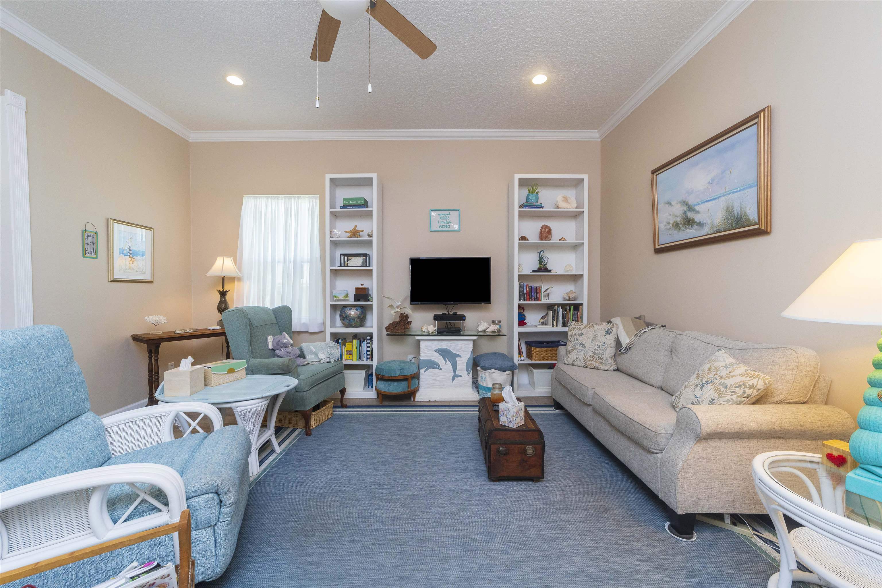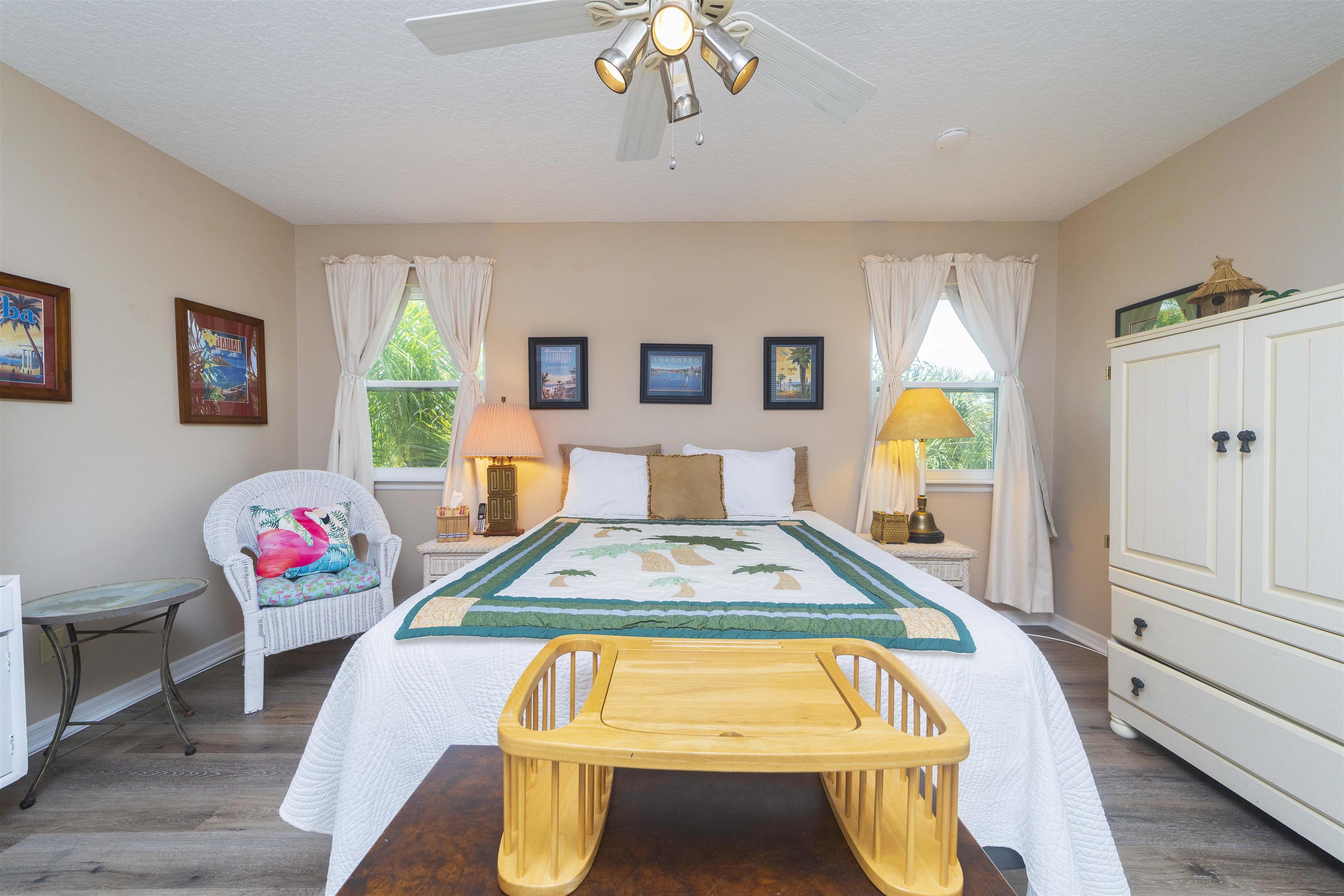 Positioned on the beach side of A1A, between Butler and Crescent Beach, this home is part of a cozy, established neighborhood and is just a one-minute walk from the private community boardwalk to the beach. The property, which has been lovingly maintained, is flooded with natural light and offers a spacious, semi-open floor plan. This layout is perfect for accommodating family and friends, allowing them to flow seamlessly between the living room, dining room, and large kitchen. The front porch is a charming spot for small gatherings, and the L-shaped patio and fenced backyard provide additional space for entertaining. A new roof installed in July 2025 with transferable warranty! System plus GAF Registered Warranty, 10 Year Labor Warranty and Lifetime product Warranty. The home features 10-foot ceilings downstairs with crown molding that continues to the upstairs landing, where you’ll find the south-facing deck and three generously sized bedrooms. Have coffee on the deck, enjoy the sunrise, or sip a libation and take in the stars. This home is convenient to shopping and dining, parks, the Amphitheatre, and our historic downtown. Relax and embrace a beachy lifestyle! Seller is offering a $10, 000 credit to the buyer at closing!