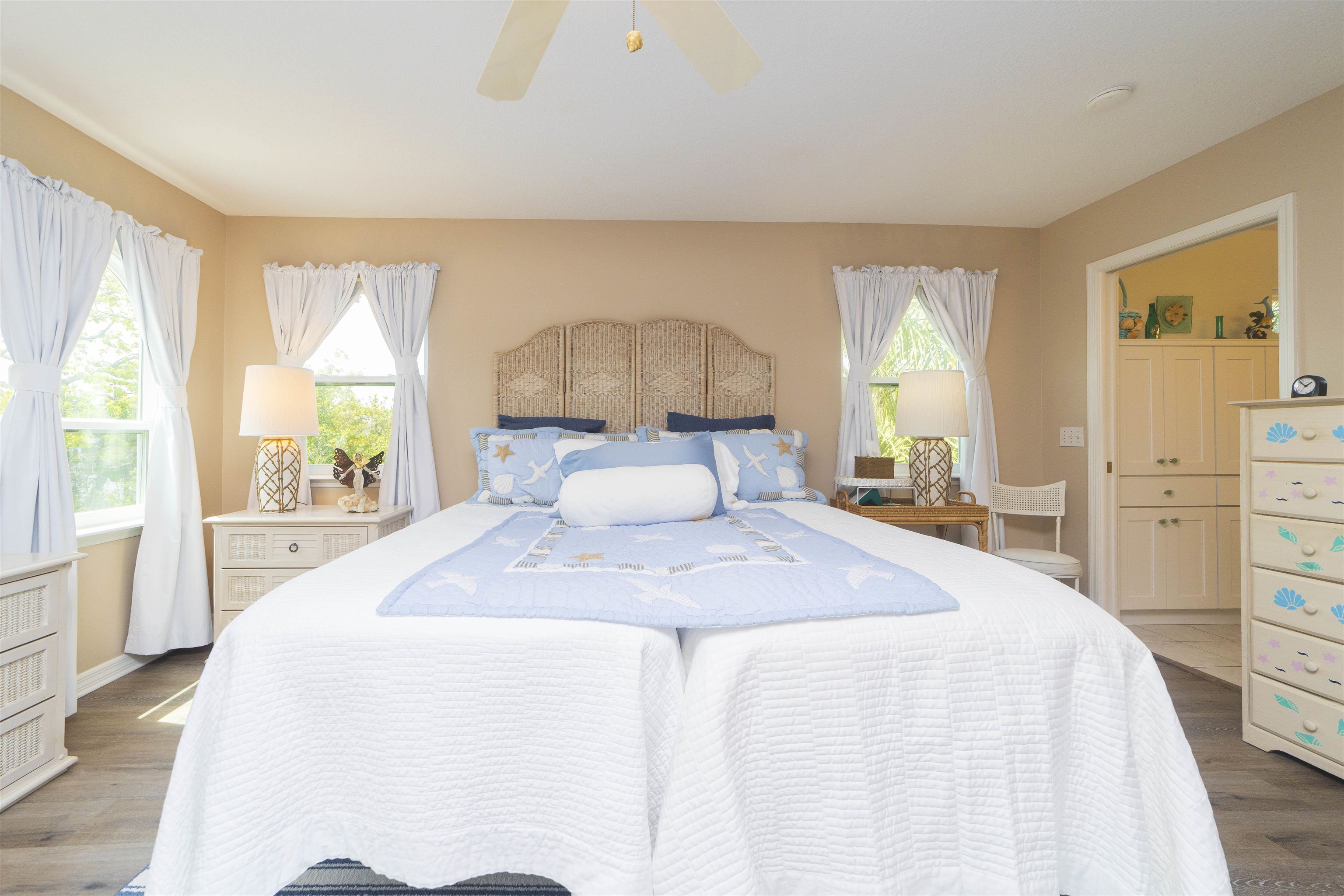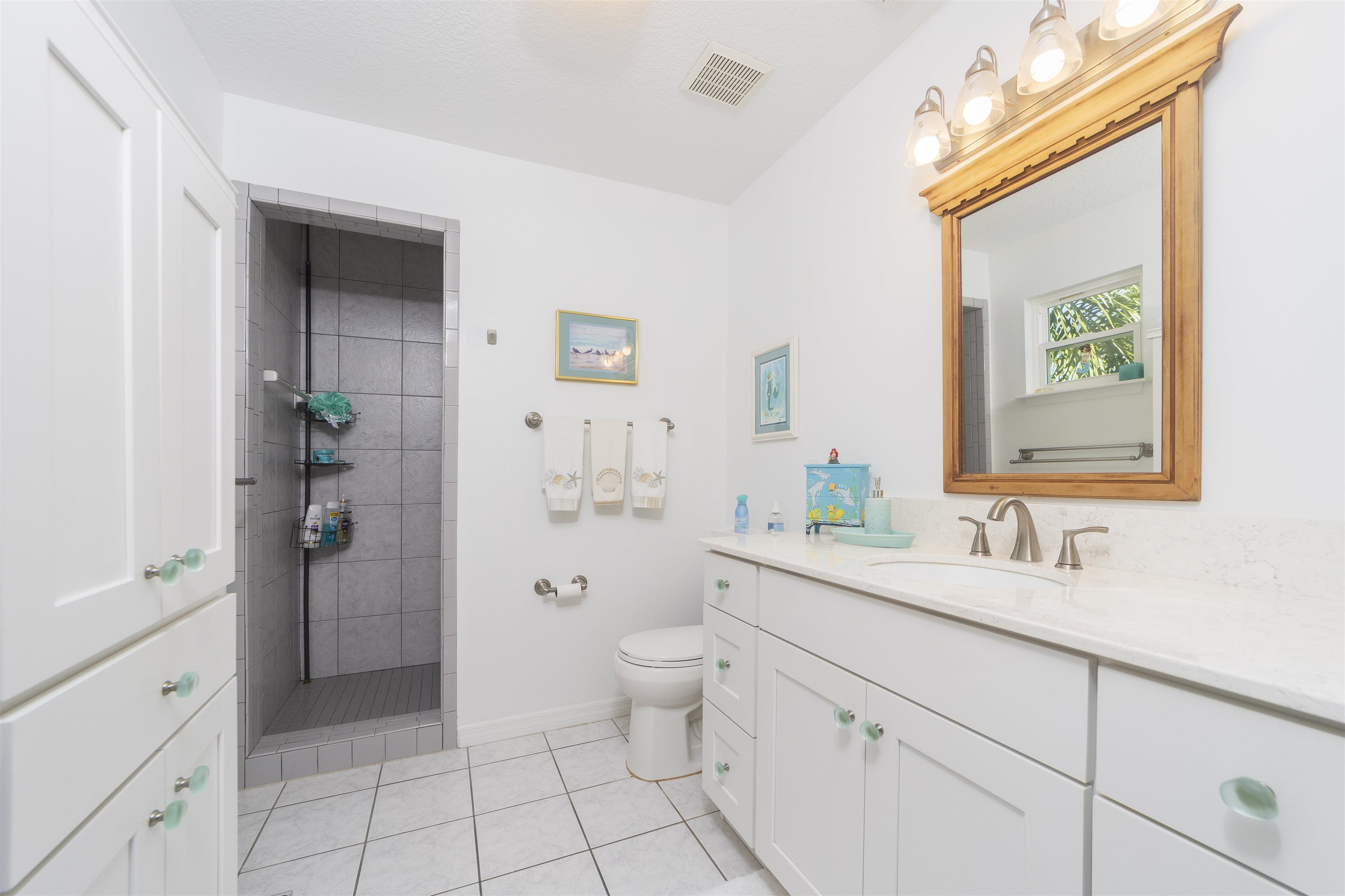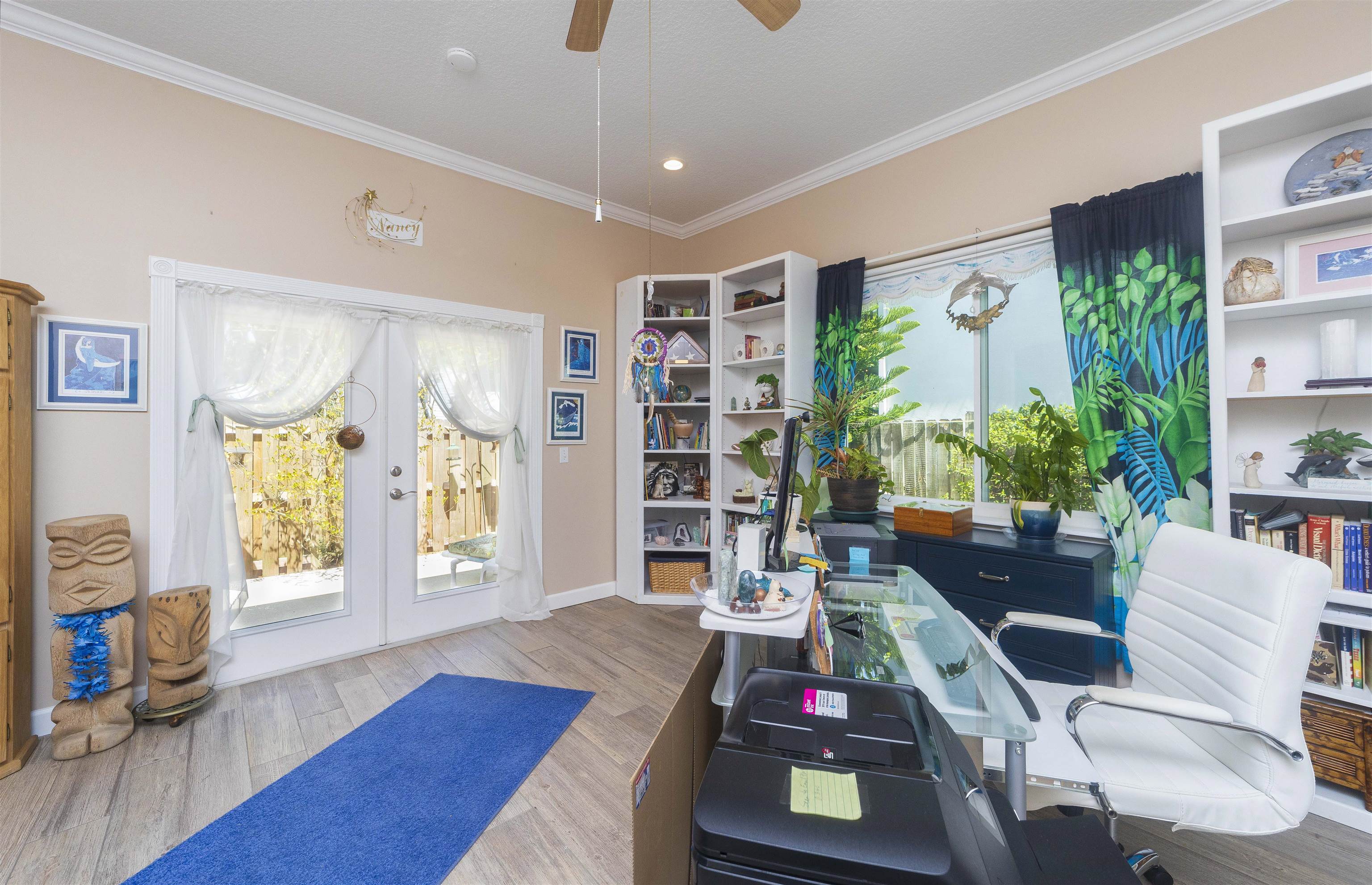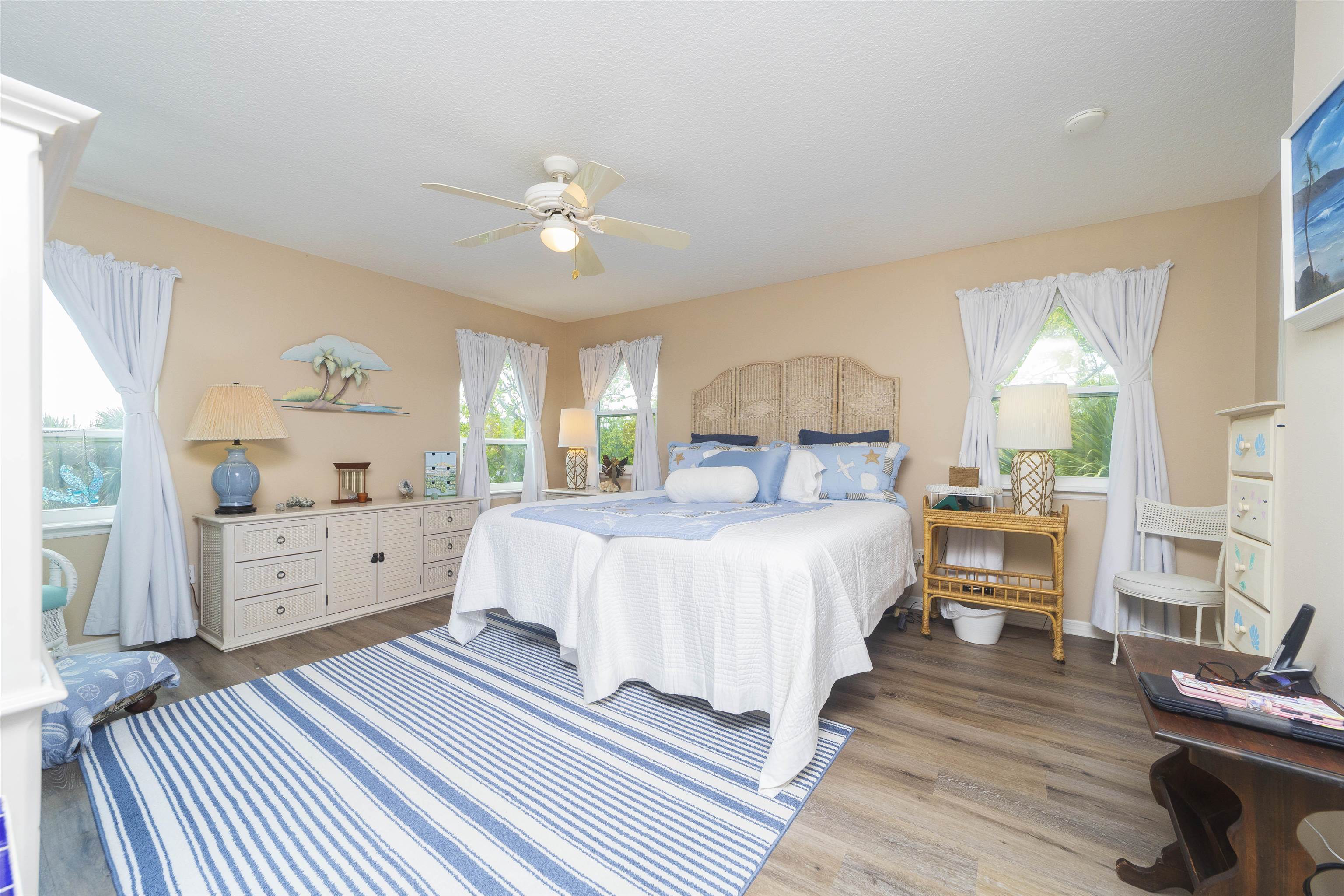 Positioned on the beach side of A1A, between Butler and Crescent Beach, this home is part of a cozy, established neighborhood and is just a one-minute walk from the private community boardwalk to the beach. The property, which has been lovingly maintained, is flooded with natural light and offers a spacious, semi-open floor plan. This layout is perfect for accommodating family and friends, allowing them to flow seamlessly between the living room, dining room, and large kitchen. The front porch is a charming spot for small gatherings, and the L-shaped patio and fenced backyard provide additional space for entertaining. A new roof installed in July 2025 with transferable warranty! System plus GAF Registered Warranty, 10 Year Labor Warranty and Lifetime product Warranty. The home features 10-foot ceilings downstairs with crown molding that continues to the upstairs landing, where you’ll find the south-facing deck and three generously sized bedrooms. Have coffee on the deck, enjoy the sunrise, or sip a libation and take in the stars. This home is convenient to shopping and dining, parks, the Amphitheatre, and our historic downtown. Relax and embrace a beachy lifestyle! Seller is offering a $10, 000 credit to the buyer at closing!