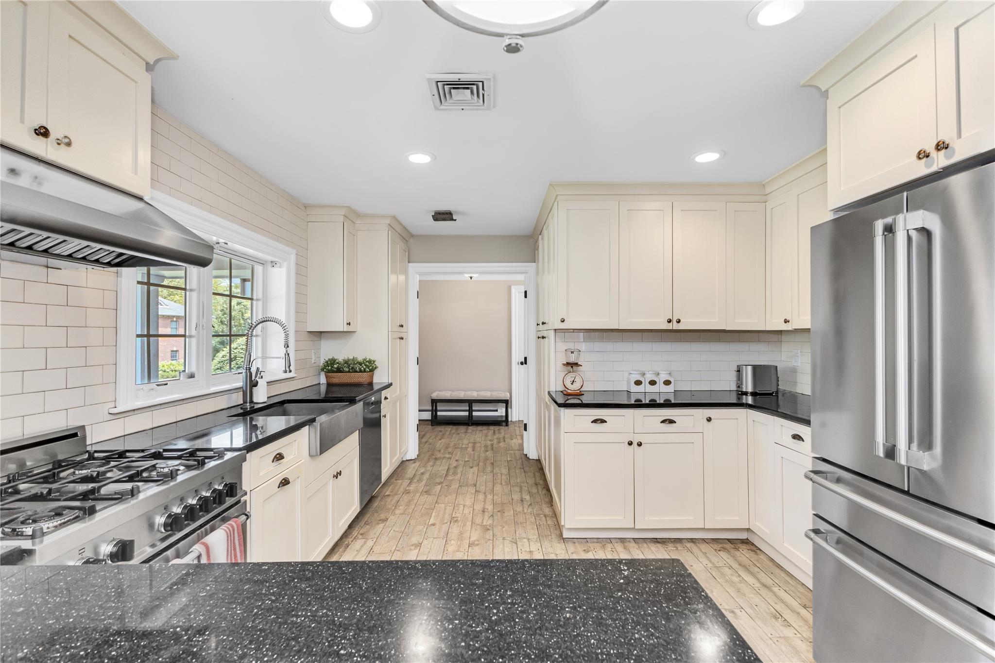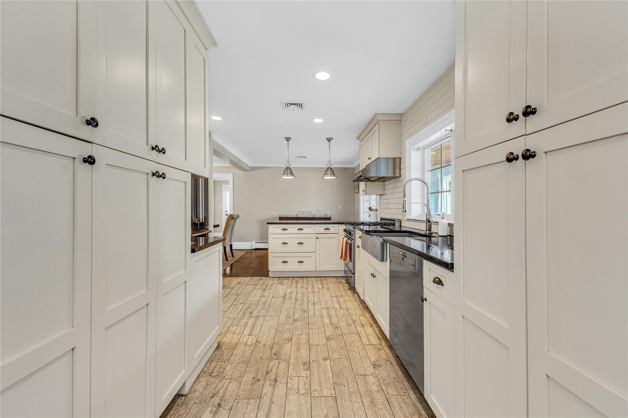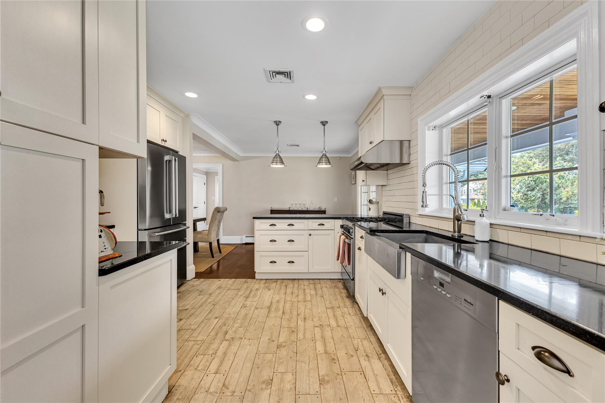 This expansive, sun drenched Farm Ranch is tastefully updated and situated in the most desirable flower hill neighborhood of Roslyn. Offering a seamless beautiful architecture, detailed finishes with tastefully built front porch, Azek detailing, mahogany ceiling and blue stone. Featuring a custom wood finished double front door that invites into a beautiful foyer. Taste fully finished with base and crow moulding through out the house. Living Room with a gas fire place, Family room with another gas Fire Place, flowing into Dining Room. Beautiful white kitchen with stainless steel appliances and granite counter top. Hardwood white oak floors along with modern tile finishes. 2 Generously sized bedrooms with two full baths on main floor. Beautiful white oak staircase leads to 2nd floor which offers 3 bedrooms and 2 full baths. Primary bedroom exceptionally large with tons of closet space and en suite bath. Beautiful manicured backyard with Cambridge pavers patio that leads to a generously sized lawn which has room for a pool. Mature privacy trees all around the backyard. Other Features, 5 zone sprinkler system, 4 zone base board heat, central air, 4 zone separate cooling and heating system. Anderson Doors and windows, beautifully landscaped, fully finished & readily accessible attic spaces for storage convenience. Azek trim throughout the exterior with LED recessed lighting inside and outside. French doors leading to outside backyard from family room as well as a bedroom. Roslyn School District, close to all shopping, Americana Mall, Parks. Walking distance to Roslyn Village, Roslyn Pond, Sports Time Tennis and other restaurants. Zoned For Port Washington LIRR Train Line. ( Port Washington Train Sticker. ) Very Low taxes includes Flower Hill Village Taxes. Total $21, 313 Exclusions- Chandeliers, TV, Cameras.
