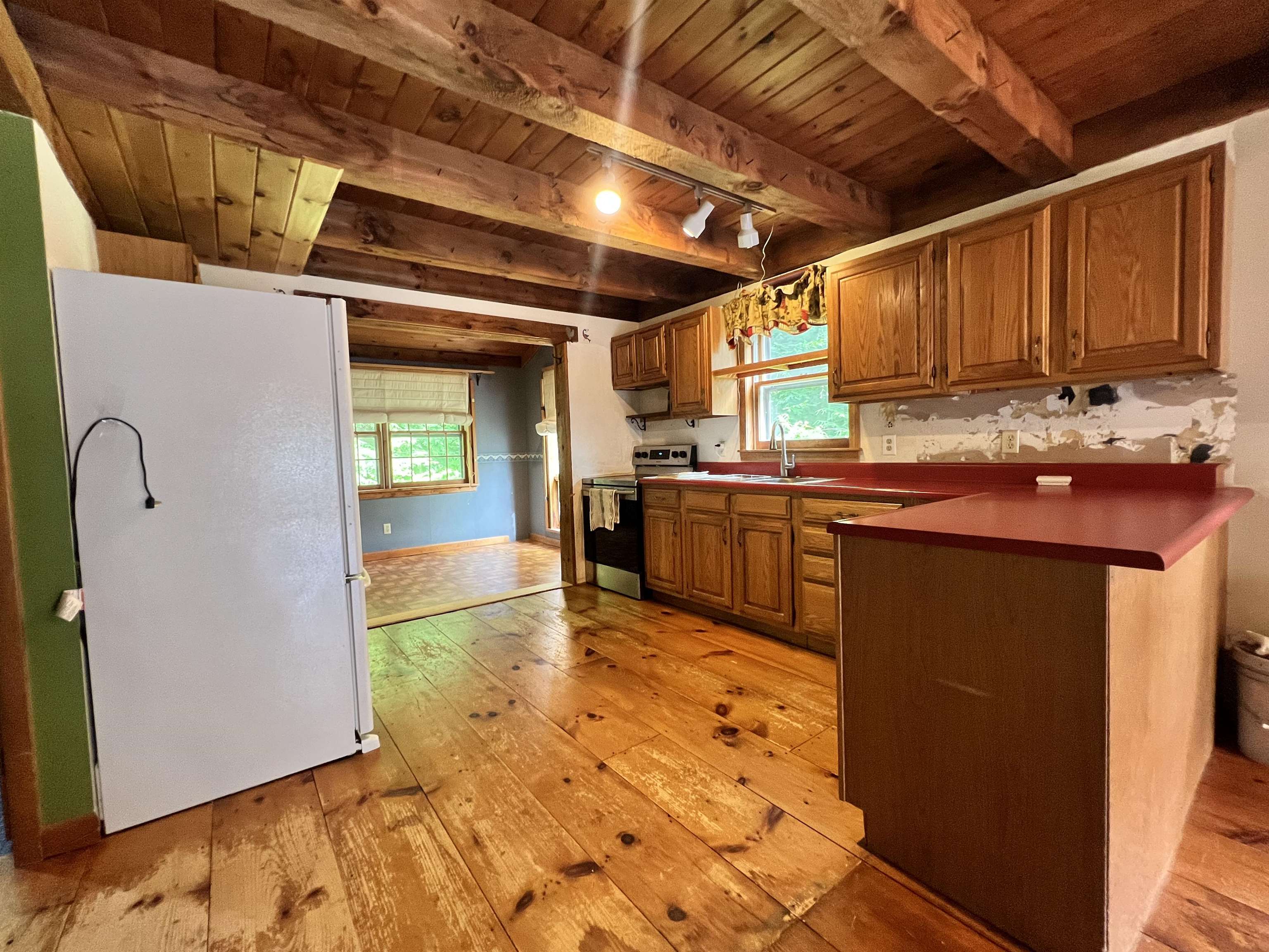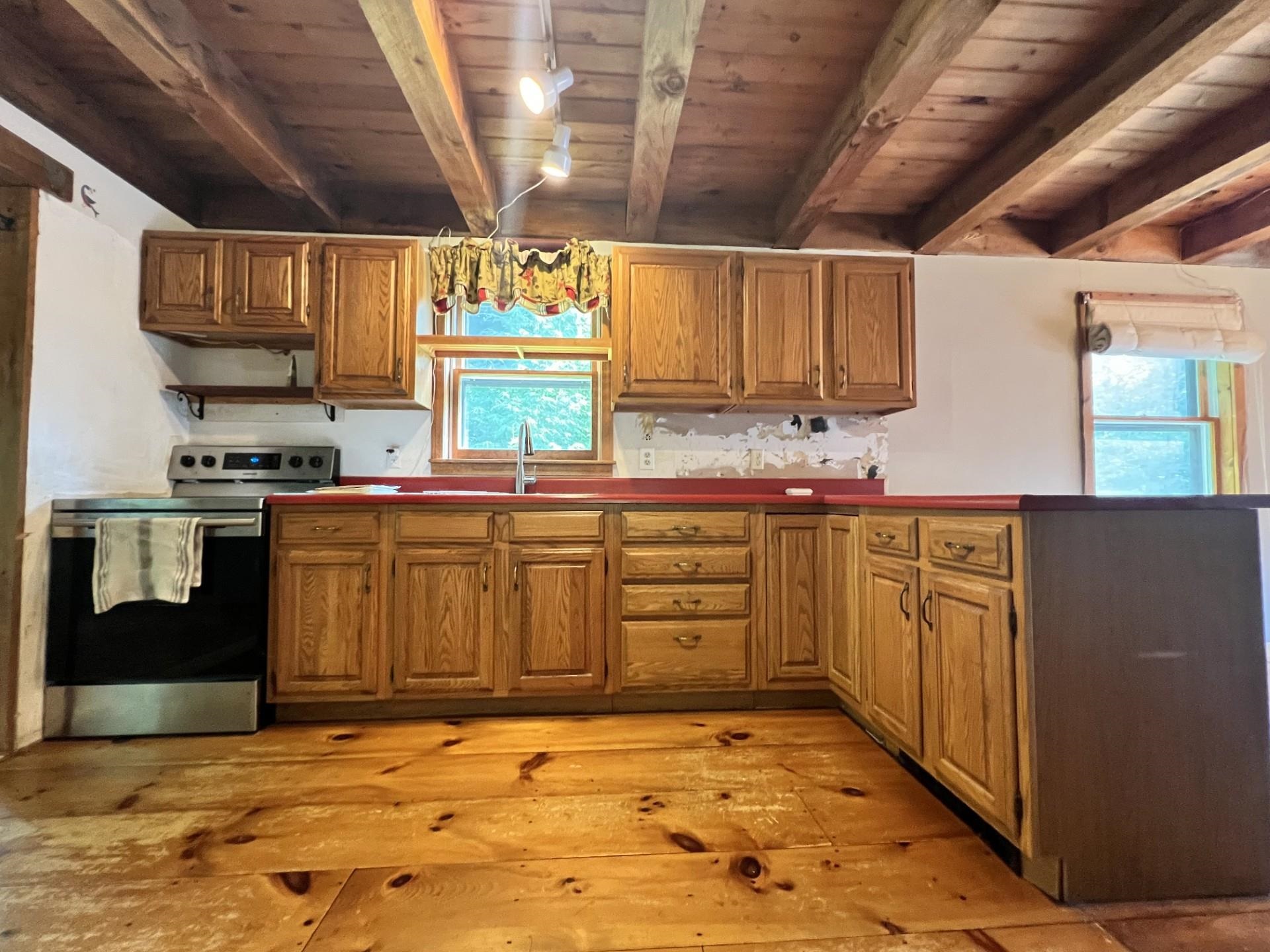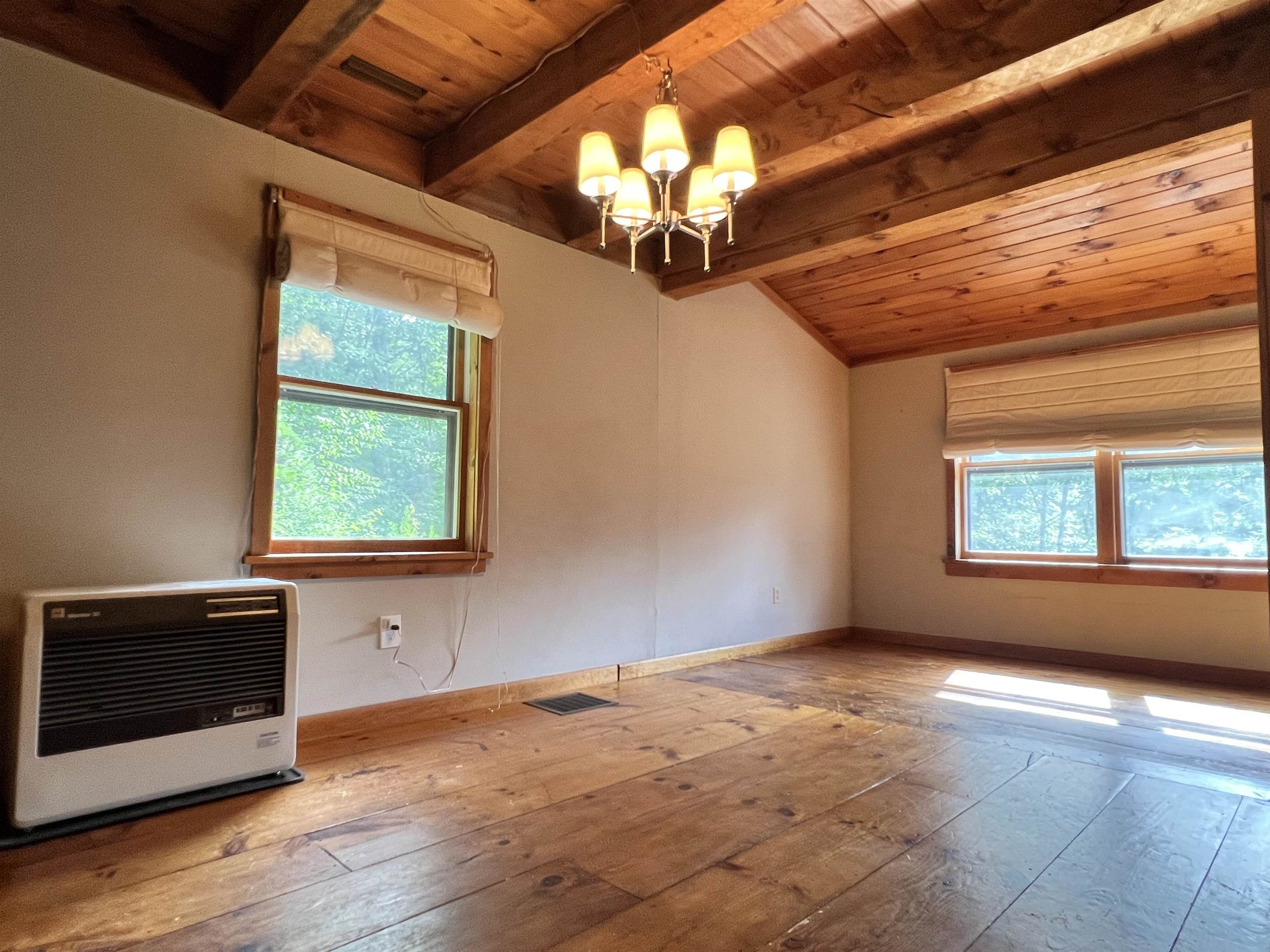 Spacious Gambrel, built as a 3-bedroom Pioneer log home, currently a 2-bedrooms, 1. 5 bath, on a private road with 1 owner of 41 years. 30X25 garage/shop previously used as a wood shop, heat with wood and has a 220amp power great for hobbyist. 2 lots of record. 3 season porch, eat in kitchen, room off back of kitchen would make a great office space. Potential for wood heat. Come put your personal touches on this beautiful home. Resident only Long Pond access. Open House Sunday 12-2pm