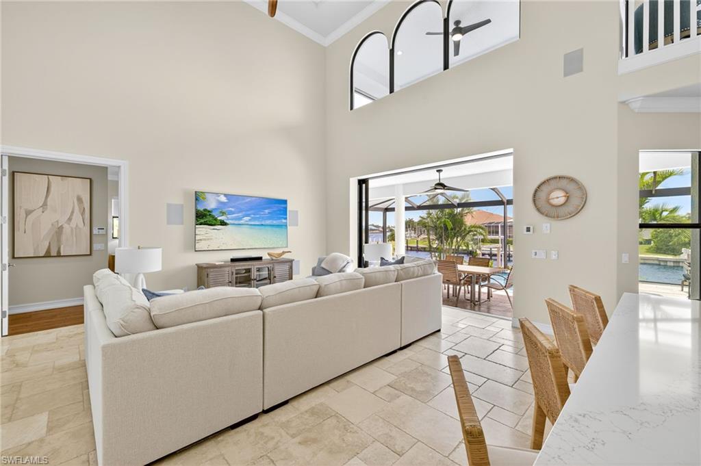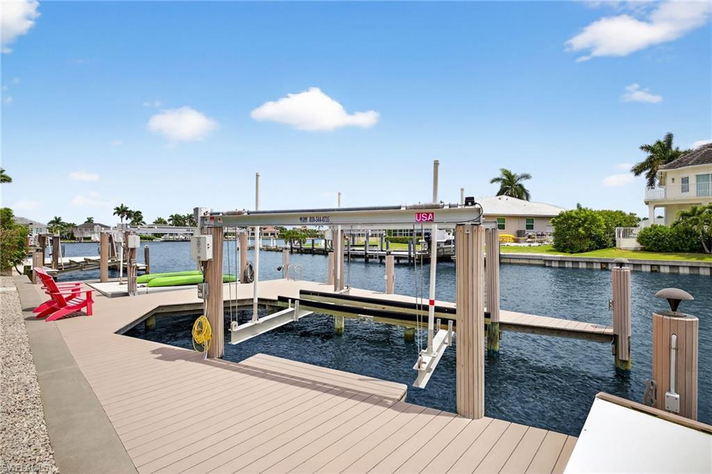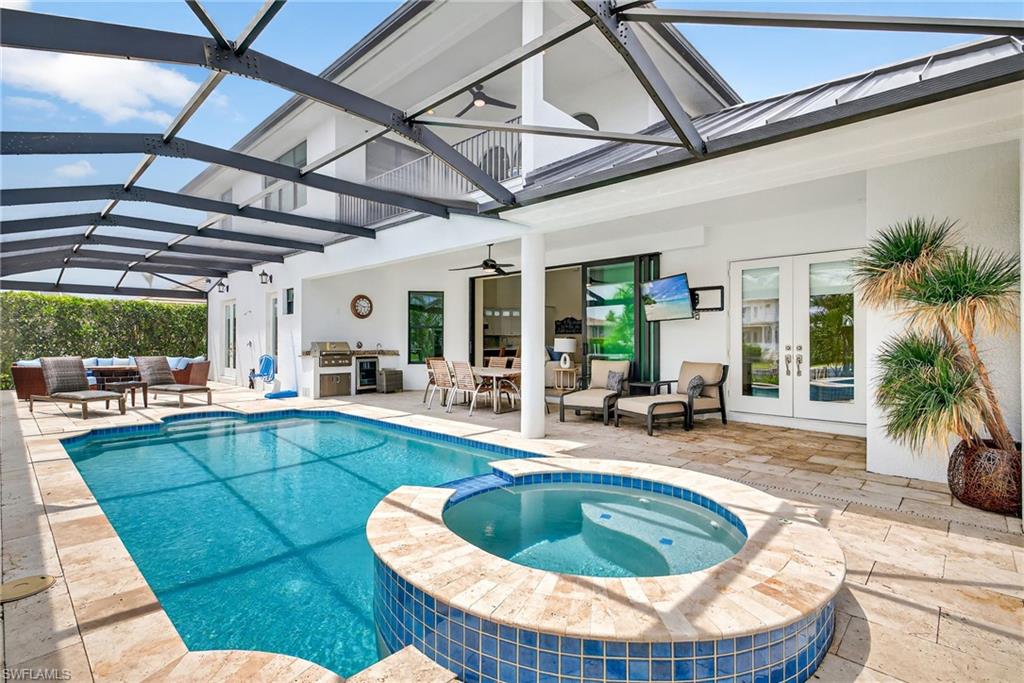 Welcome to 1649 San Marco Road, an extraordinary two-story home offering 3, 550 square feet of luxurious living space, 4 bedrooms plus a den, 3 full bathrooms, and a private Gulf-access dock with coveted southern exposure. Built in 2015 and renovated in 2024, this timeless residence effortlessly blends timeless coastal design with modern luxury. This home stands out not only for its incredible design but also for its great rental potential, due to its open, wide-water views and prime location. This is the best-priced home available in the area, it offers a rare opportunity for both personal enjoyment and investment potential. Enter through elegant French doors into a light-filled great room with soaring ceilings, impact-rated windows and doors, and an open-concept layout that enhances the flow of the space. The gourmet kitchen is a chef's dream, featuring custom cabinetry, a wine cooler, built-in appliances, and a generous walk-in pantry. The expansive primary suite, located on the main floor, offers a private retreat with custom-built closet cabinetry and a spa-inspired bathroom featuring dual vanities, a soaking tub, and a large walk-in shower with multiple shower heads. Upstairs, a flex room opens to a balcony, ideal for a home office, media room, or quiet lounge space. This level also includes a well-appointed guest bedroom and spacious guest bathroom, offering privacy and comfort for family or visitors. The 4th bedroom features a Murphy Bed, creating a multi-purpose room for flexibility. Step outside to your personal slice of paradise, where a screened-in pool and spa with a heater/chiller are surrounded by lush tropical landscaping. The outdoor kitchen, with built-in grill and pool bath, is perfect for dining and entertaining. The private dock, equipped with two boat lifts and twin jet ski lifts, offers direct access to the Gulf through the scenic Marco Island waterways. Additional features include a standing seam metal roof, stucco exterior, a two-car epoxy floor garage, Lutron lighting system, dual-zone HVAC, and impact glass throughout. This home is a true gem. Located just minutes from Marco Island’s pristine beaches, world-class dining, and boutique shopping, this property offers unmatched access to the best of island living. Enjoy boating, breathtaking sunsets, and a vibrant community—whether you're sipping morning coffee on the lanai, cruising through the Ten Thousand Islands, or dining by the water, life at 1649 San Marco Road delivers the perfect blend of relaxation and sophistication.