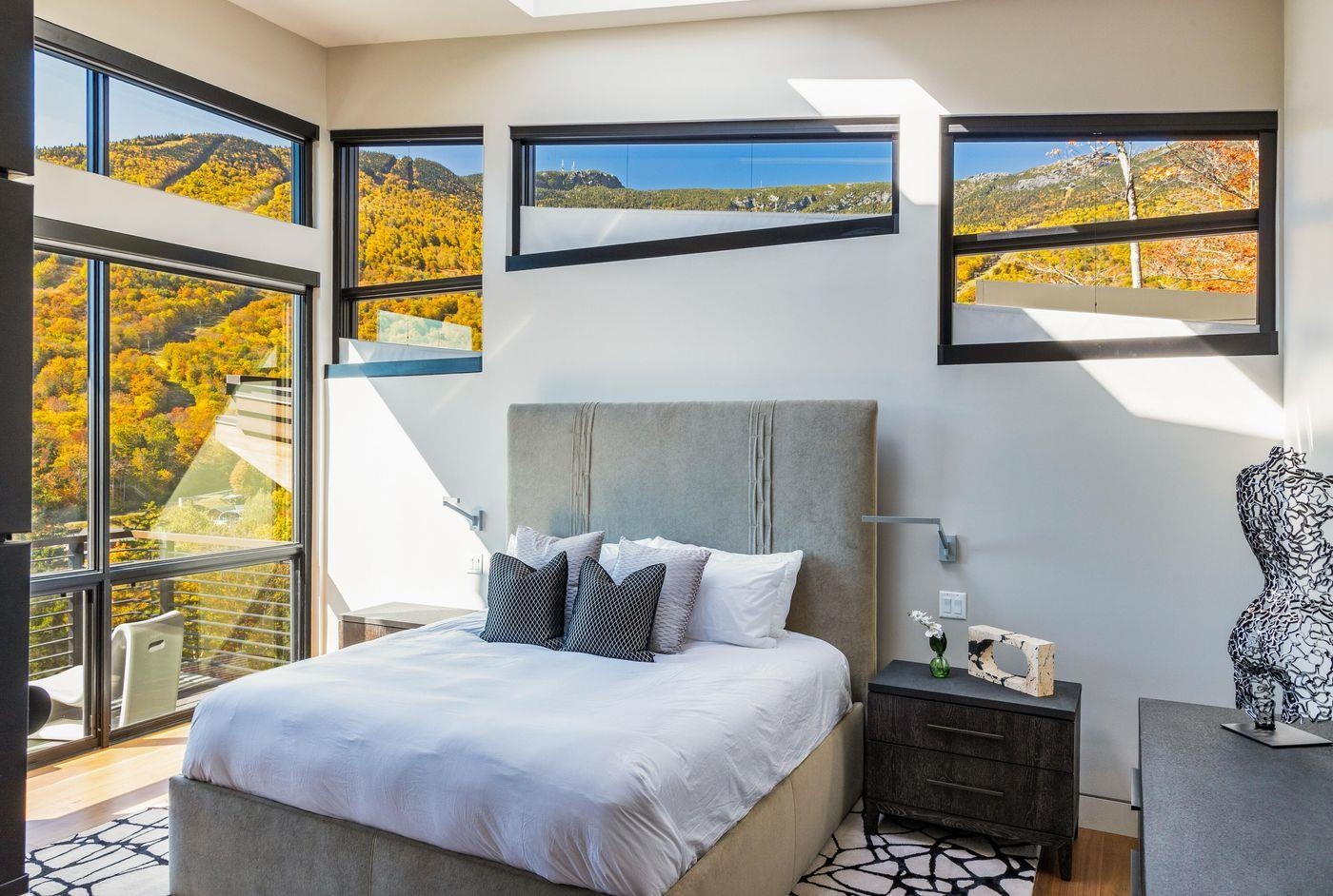 Experience unrivaled views and a premier, slopeside, Spruce Peak location in this newly constructed, magnificent home. This modern mountain residence was designed by renowned alpine architects Zehren & Associates with floor-to-ceiling glass walls, seamless indoor-outdoor living, and an “infinity view” to Vermont’s natural beauty from every room. Entertain or unwind in world-class amenities including an endless pool and outdoor jacuzzi, custom Japanese soaking tub, infrared sauna, media/game room, and three fireplaces for cozy après-ski evenings. Crafted with precision and curated for luxurious mountain living, this fully-connected smart home features efficiencies such as radiant heat, motorized window shades, an elevator, security system, ski room, executive office, heated garage, primary bedroom with dual walk-in closets, and a backup generator. Each bedroom suite is thoughtfully designed for comfort, privacy, and vantage, and all bathrooms are distinctively designed. The house is under full developer/builder warranty for an additional 1 year. Ski-in/ski-out and just steps from skiing, golf, fine dining, and year-round adventure at Spruce Peak village, 101 Switchback is the ultimate turnkey retreat.