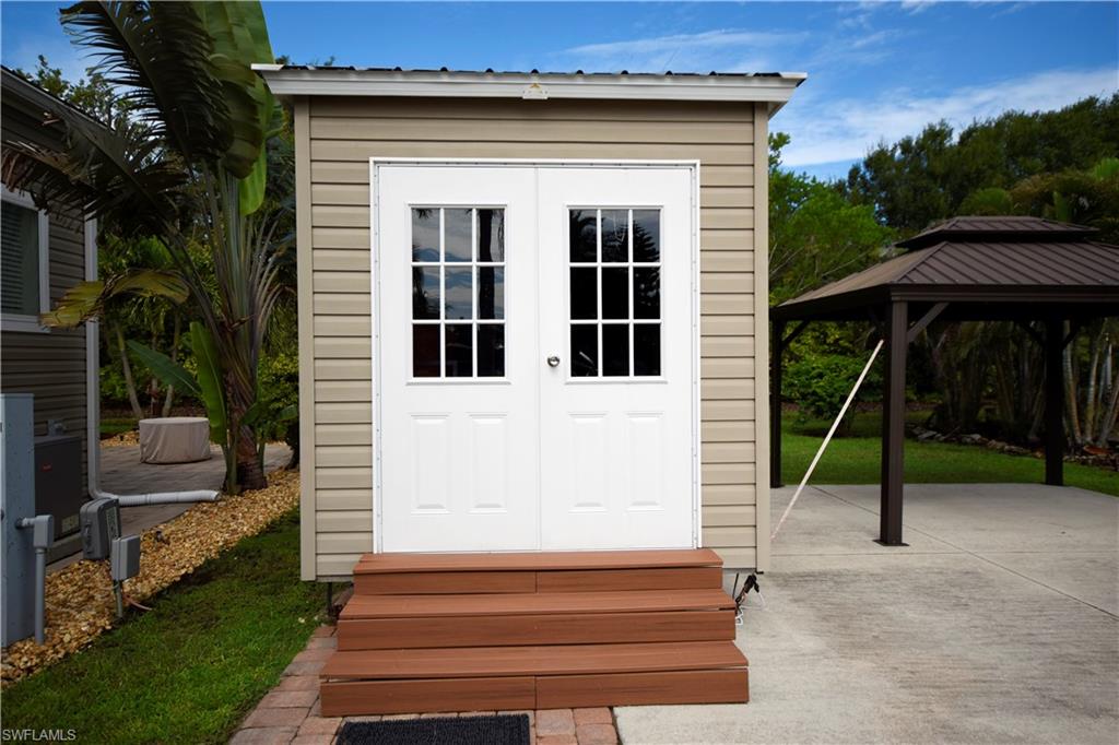 Welcome to Lot 19, a beautiful perimeter lot offering privacy and convenience—just a short walk from the clubhouse, pool and hot tub, and pickleball courts. This lot features a spacious concrete pad perfect for your RV or trailer, and backs up to lush, landscaped greenery—so there are no neighbors behind you. The property comes with an 8’ x 15’ unfinished shed for future potential for customization. A 10’ x 12’ furnished gazebo is a stylish and cozy outdoor retreat.