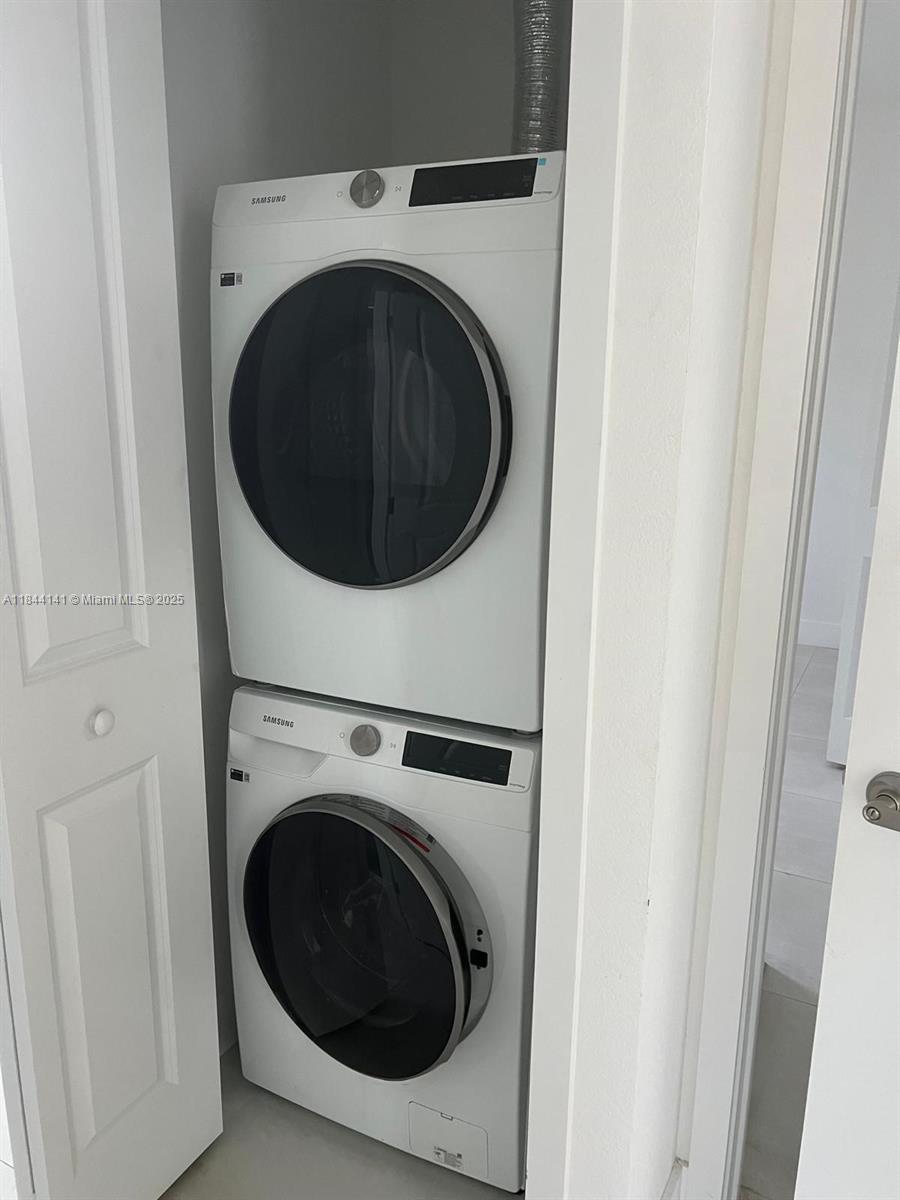 New apartment at a great location, two parking spaces, washer and dryer, tiled throughout, private entry, Independent central A/C, water and electricity included in the rent.