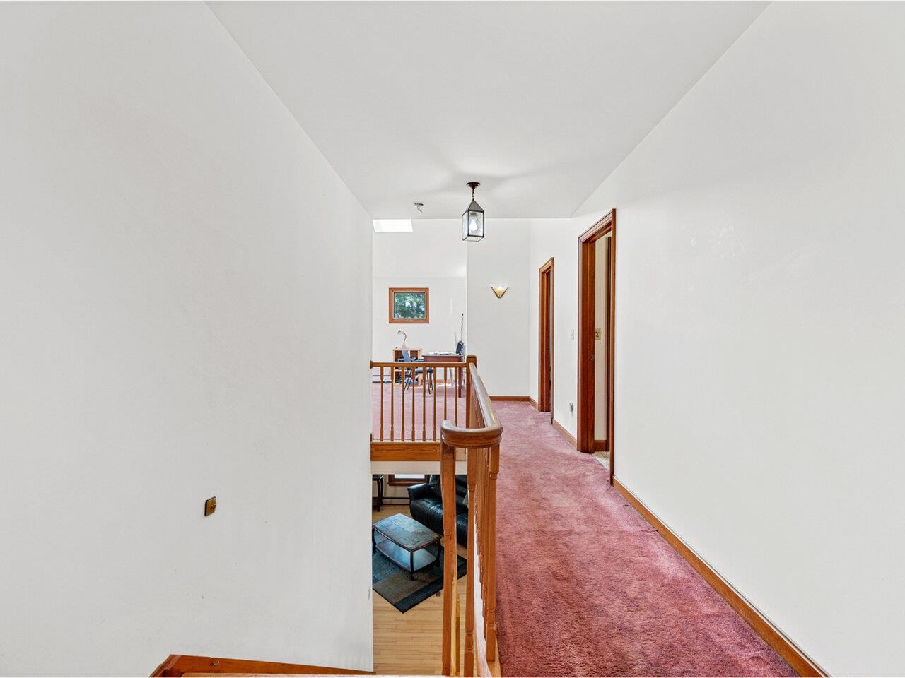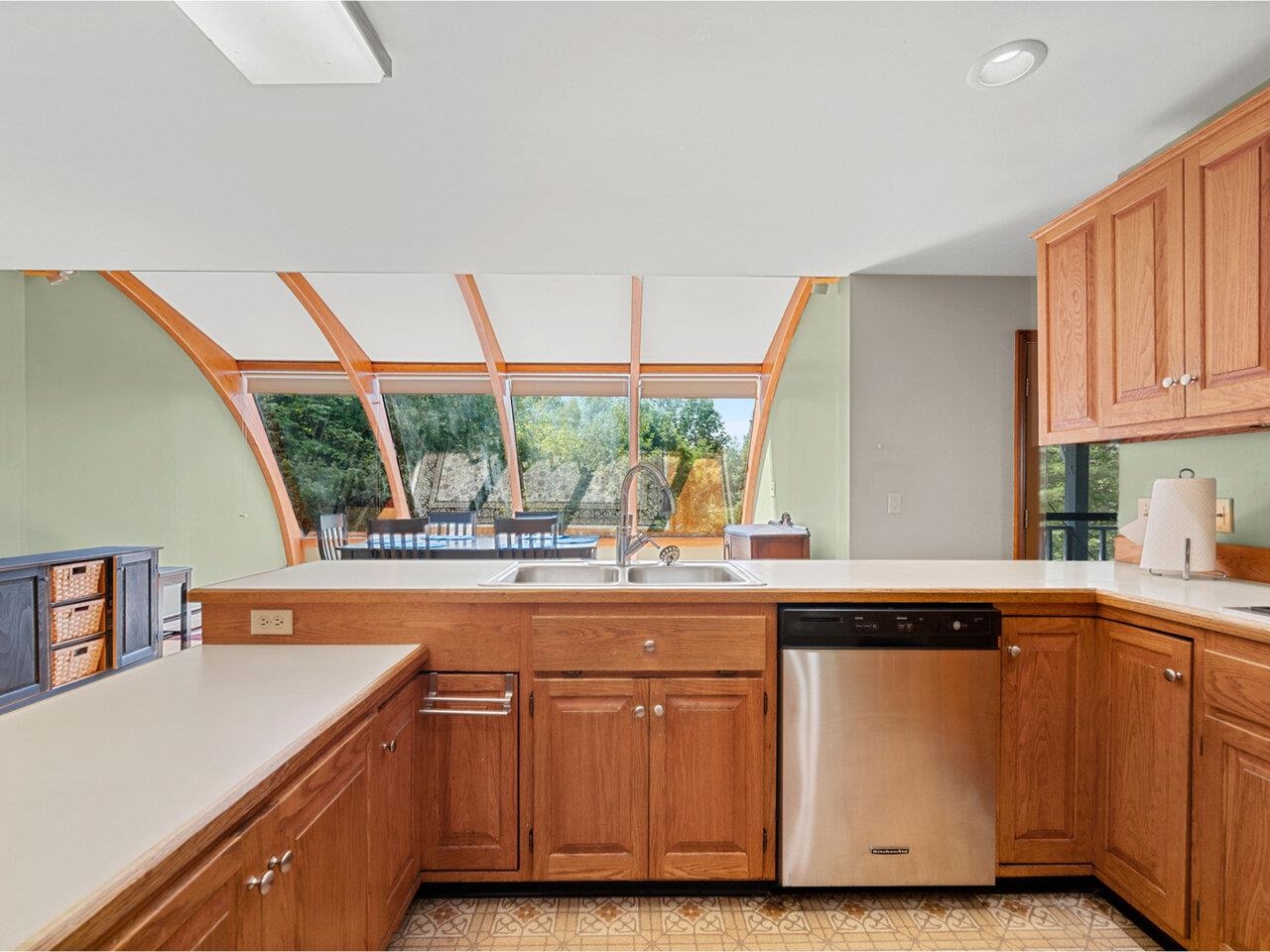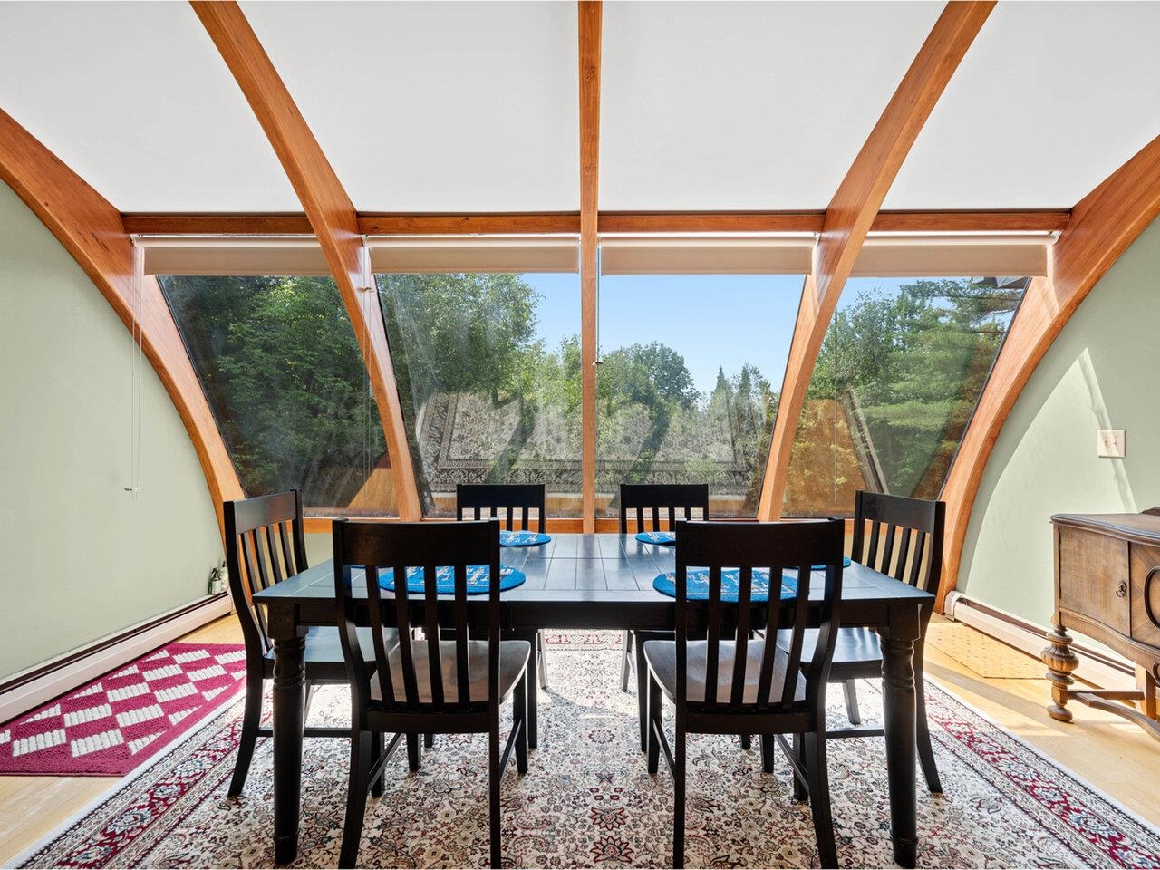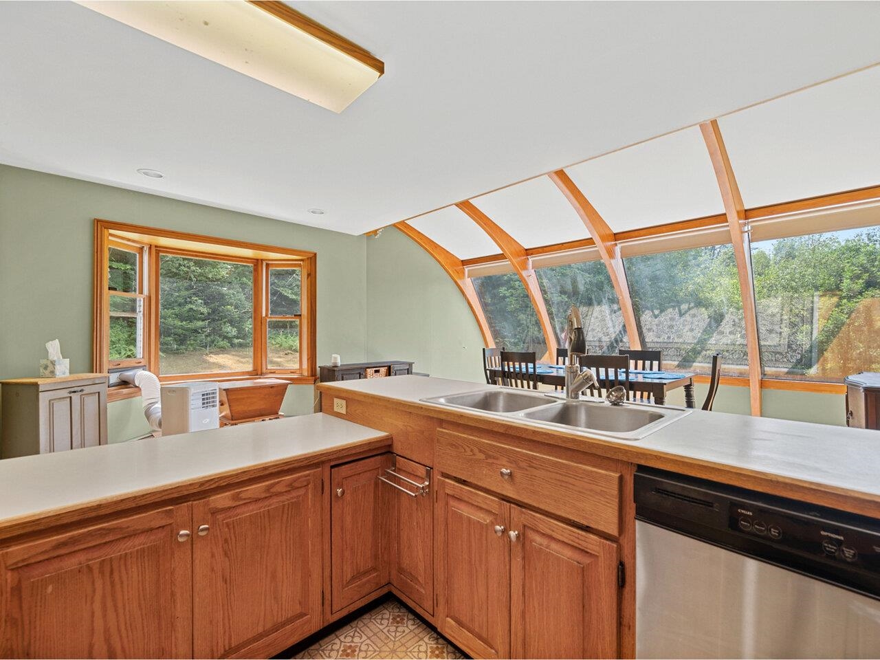 Perched atop a sunny hill, this property offers total privacy, country serenity, and long-distance views, and yet is only minutes from Northfield, Norwich University, Sugarbush skiing, and I-89. Sunlight and breezes prevail here with skylights, a wrap-around covered porch, and picture windows for enjoying the views from every room in the house. The kitchen is open to the amazing sunroom with huge windows encased in curved oak beams - truly an architectural centerpiece! The gracious living room has beautiful hardwood floors and faces the mountain views. Also on the first floor is a bright and airy primary bedroom with en suite bathroom and a walk-in closet. A convenient office or den is also on the first floor. Upstairs are three spacious bedrooms and a full bath, as well as a fabulous gathering room with cathedral ceilings and skylights. This room has so many possibilities. . . family room, sewing or craft room, exercise room, and the list goes on. The basement has lots of room for storage, a laundry room, and the walkout access is great for bringing in wood for the wood boiler. The large two-car garage has a horse stall and upstairs in the hay loft there's more dry storage. Trails through the pasture and woods allow for exploring, snow shoeing, cross-country skiing, and more. Come home to this private country estate and feel your cares slip away!