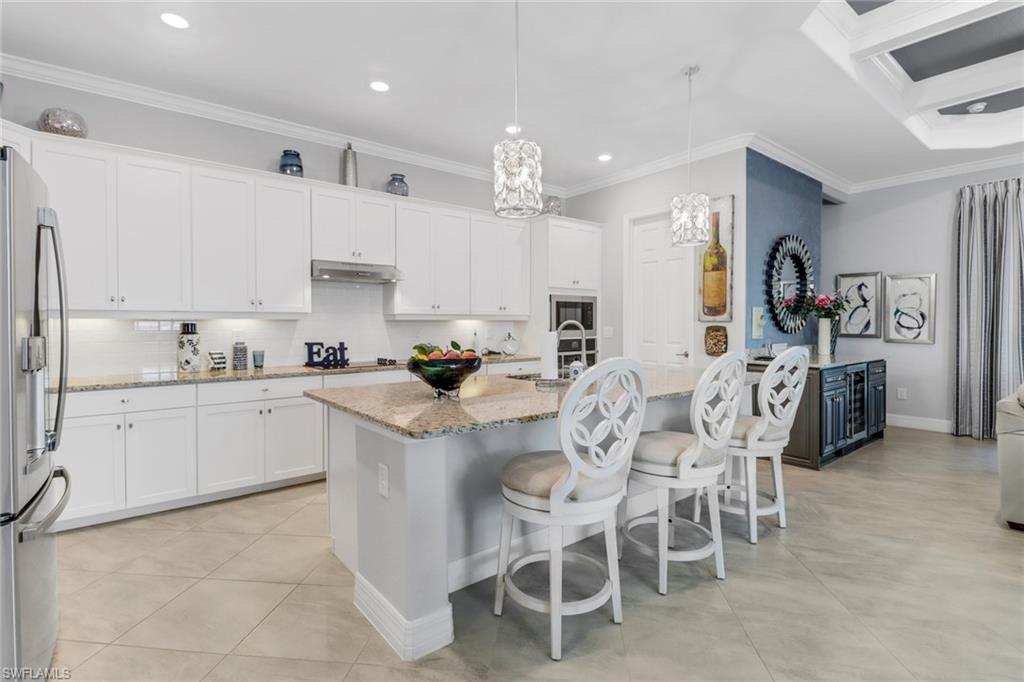The spacious and inviting layout features granite countertops, stainless steel appliances, and an open main living area. The primary suite offers a king bed, walk-in shower, and dual vanities. Two guest bedrooms each offer queen beds and dedicated bathrooms, and the den adds extra flexibility for work or relaxation. A screened lanai with heated pool, spa, and outdoor kitchen offers the perfect outdoor setting. Social membership grants access to resort amenities including tennis, fitness center, spa, dining, and the lagoon-style pool.