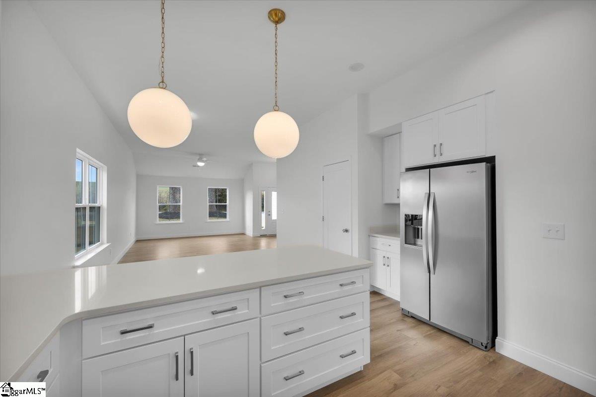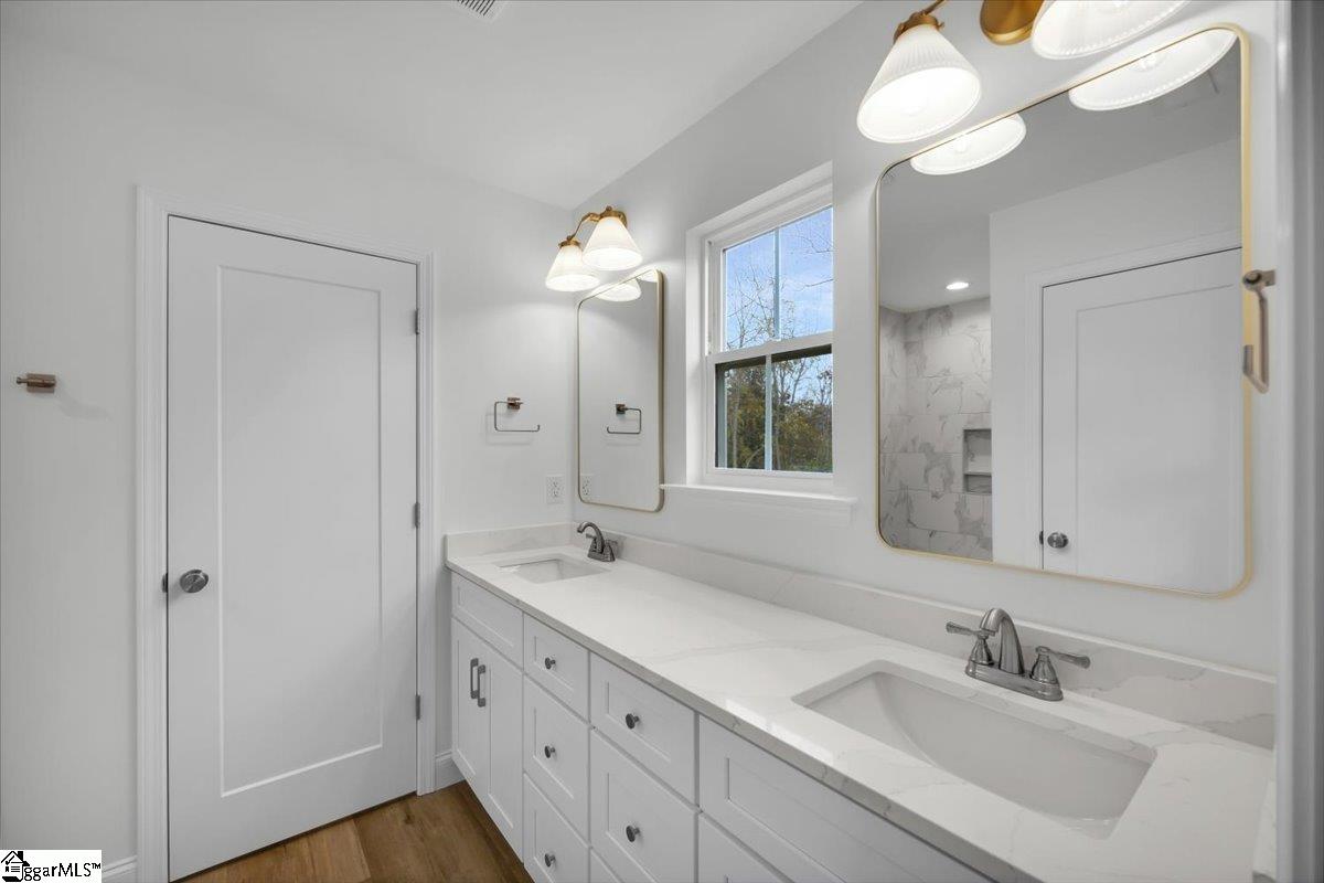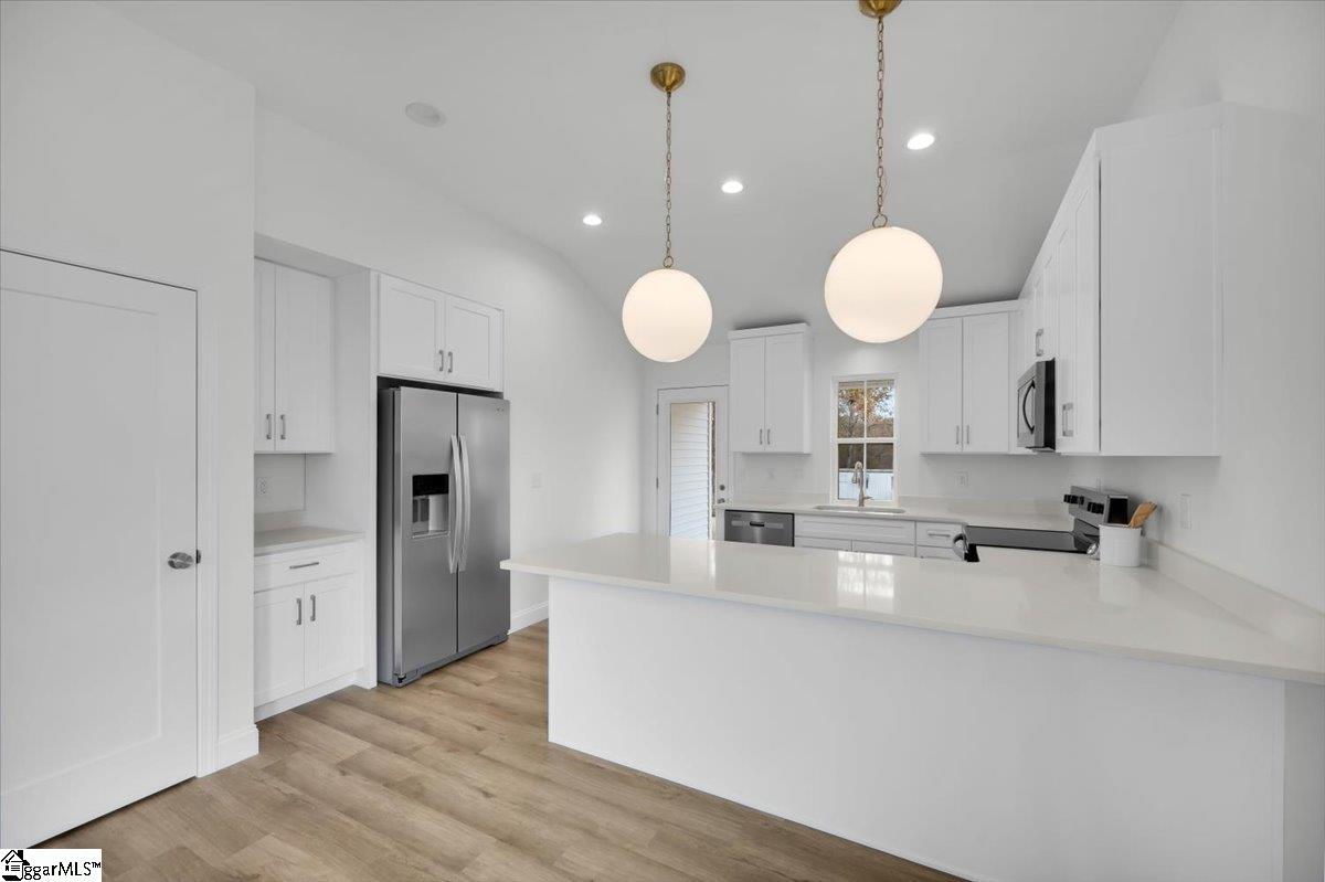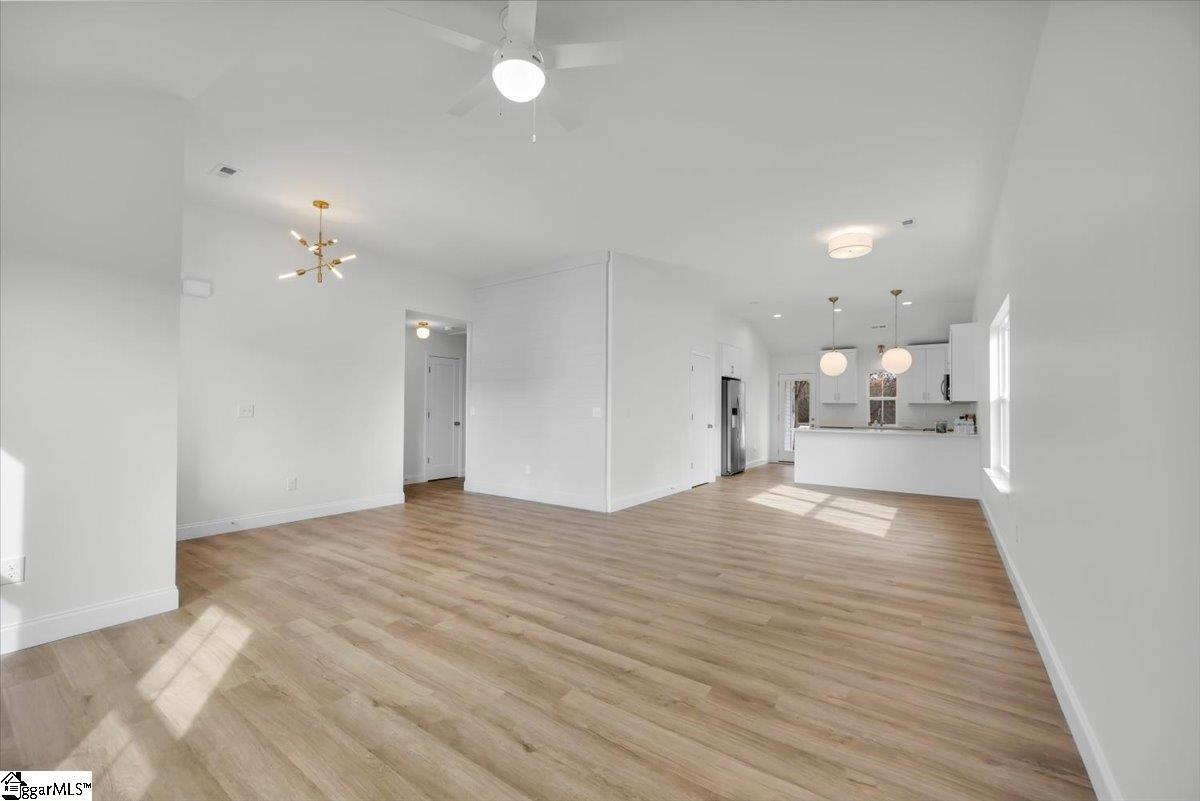 Welcome to your brand new home! A brand new home in an established area with easy access to Landrum, Tryon, and I-26 make it yours! This home features brass lighting and a lovely soft blue front door. A sodded yard and mulch bed are all ready for you to enjoy. Inside you have a soft blue accent wall perfect for a drop zone or artwork. The living room features a ceiling fan and is open to the dining room and kitchen. The kitchen has white cabinets, quartz countertops, and stainless steel appliances. An upgraded LVP is durable and beautiful and it runs through the entire home. Down the hall there is a walk in laundry room and laundry sink. The guest bathroom has a tub/shower and white vanity with quartz countertops. There are two guest bedrooms. The primary suite has a tray ceiling and large window as well as an ensuite bathroom. The ensuite has dual vanities with white cabinets and quartz counters, a walk in shower with a tile surround, and a separate toilet room. There is also a walk in closet. This home also has a 2 car garage. The location is convenient to Campobello and minutes from downtown Landrum. Make it yours today.