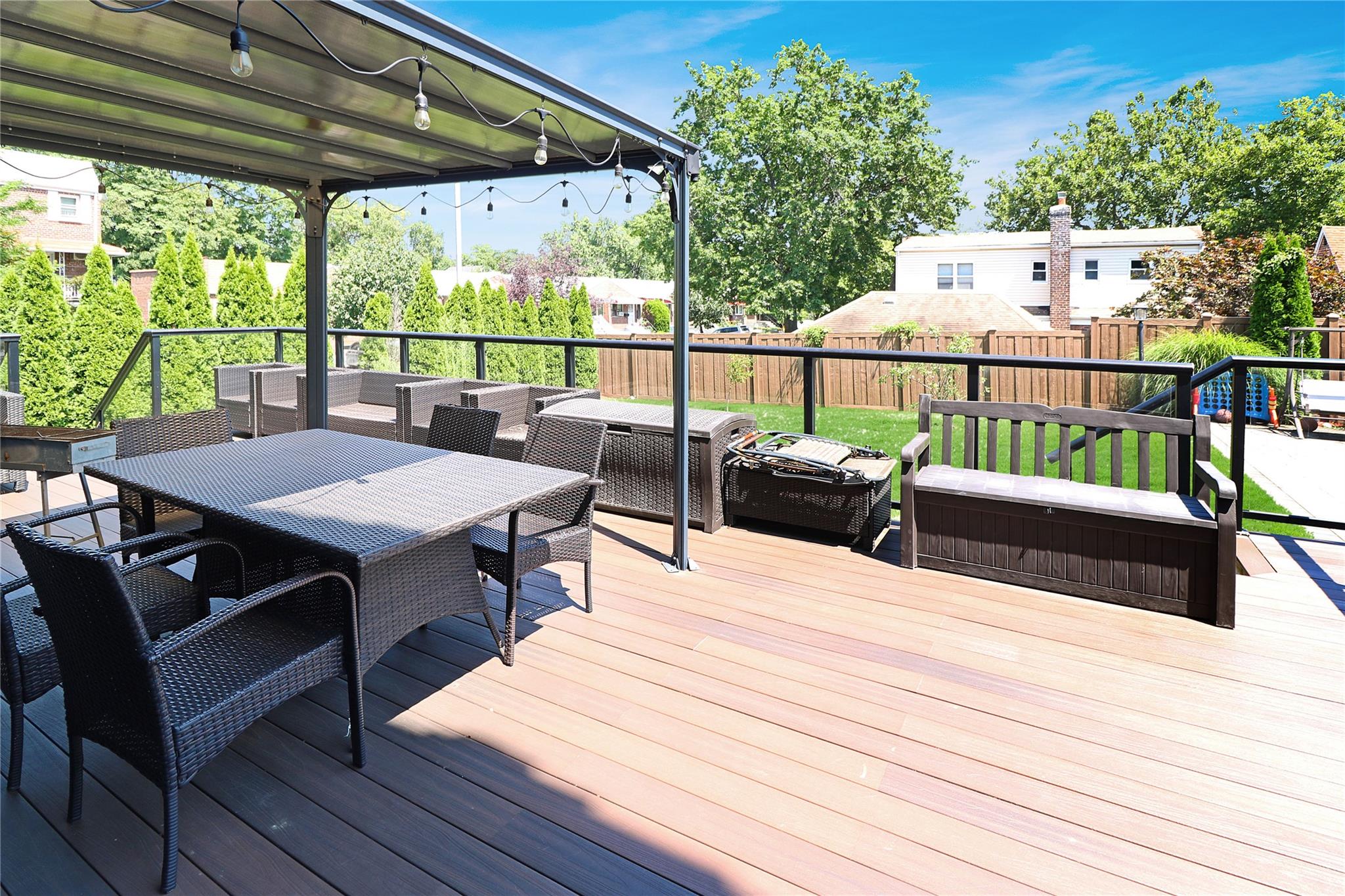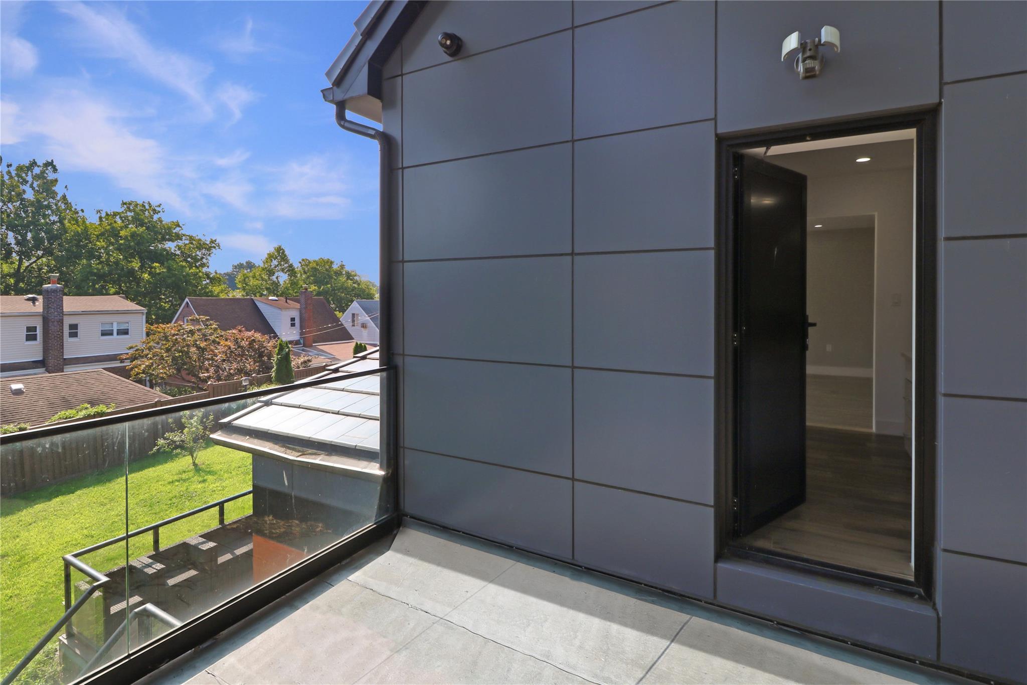 Welcome to this stunning new luxury home in the heart of Fresh Meadows. Built in 2018, this detached aluminum residence boasts a ceramic tile roof and thoughtful design throughout. The home offers five bedrooms and five and a half bathrooms, including a master suite on the second floor with a private balcony and a walk-in closet. The open-concept kitchen is equipped with high-end appliances, including a Miele built-in coffee maker, Miele speed oven, Miele convection oven, and a Bosch dishwasher. Custom cabinetry and a gas cooking range elevate the space for both everyday use and entertaining. The fully finished basement features impressive ceiling height, a gym, karaoke room, and a laundry area with two washers and one dryer. The main level also offers high ceilings, enhancing the home’s spacious and airy feel. Perfectly situated across from Kissena Golf Course, this property sits on a large lot just three blocks from Francis Lewis High School.