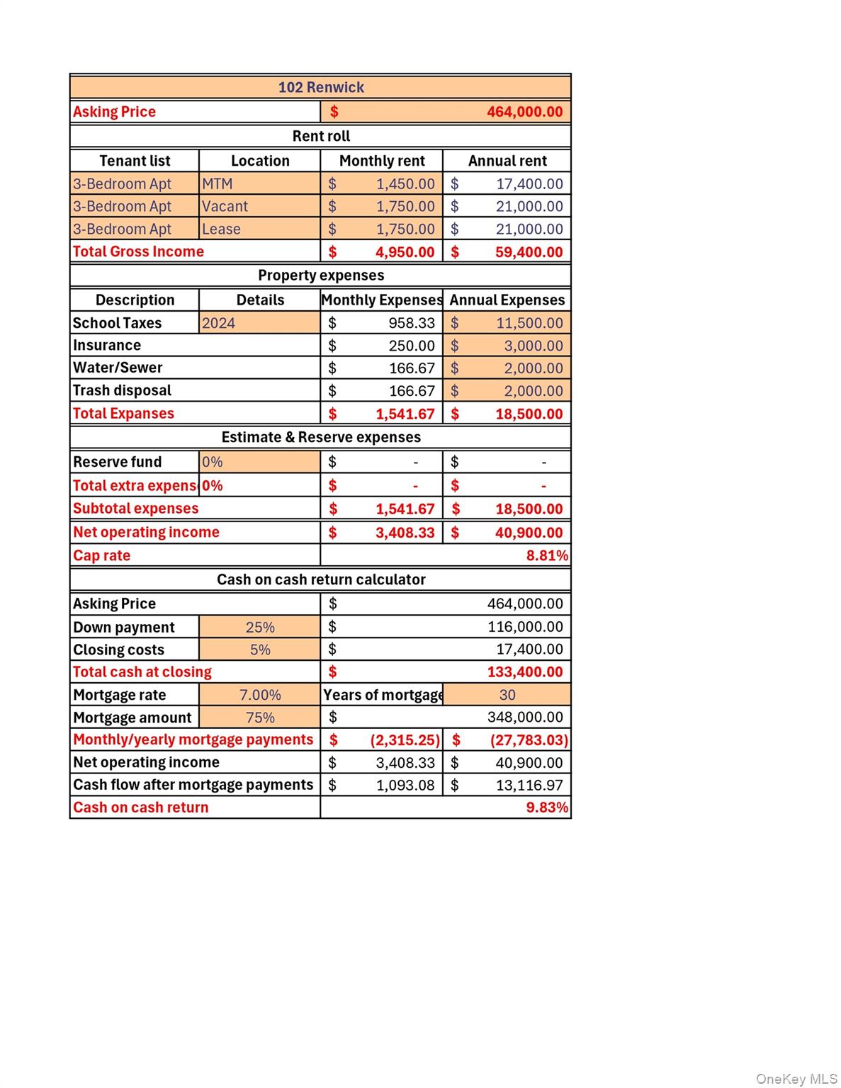 | Monthly Tax Payment | $955 | $955 | $955 |