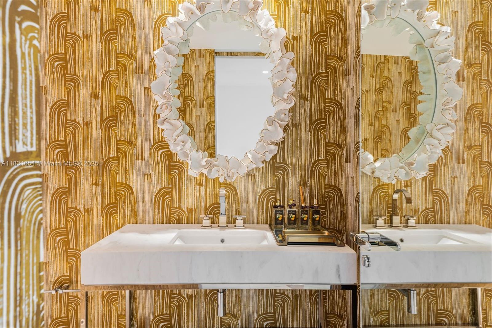 One of Miami's most spectacular condos, Fendi Chateau #1101 is an ocean front masterpiece. Designed & decorated by renowned Brazilian architect Sig Bergamin, this 5bed/6. 5 bath 6, 726 SF home in the sky exudes beachfront elegance. Perfectly situated taking up the entire north corner, the 1, 885 SF wraparound terrace allows for spectacular ocean & intracoastal views. Exquisite interior features include 10' ceilings, teak flooring, Italian Calacatta stone, & smart home system. The oversized primary suite has dual ocean view bathrooms & a closet the size rarely seen in new construction. The Fendi designed eat-in-kitchen is equipped with Gaggenau appliances & wine fridge. A private elevator opens to elegant living areas, formal dining room, & a media lounge perfect for billiards & game night.