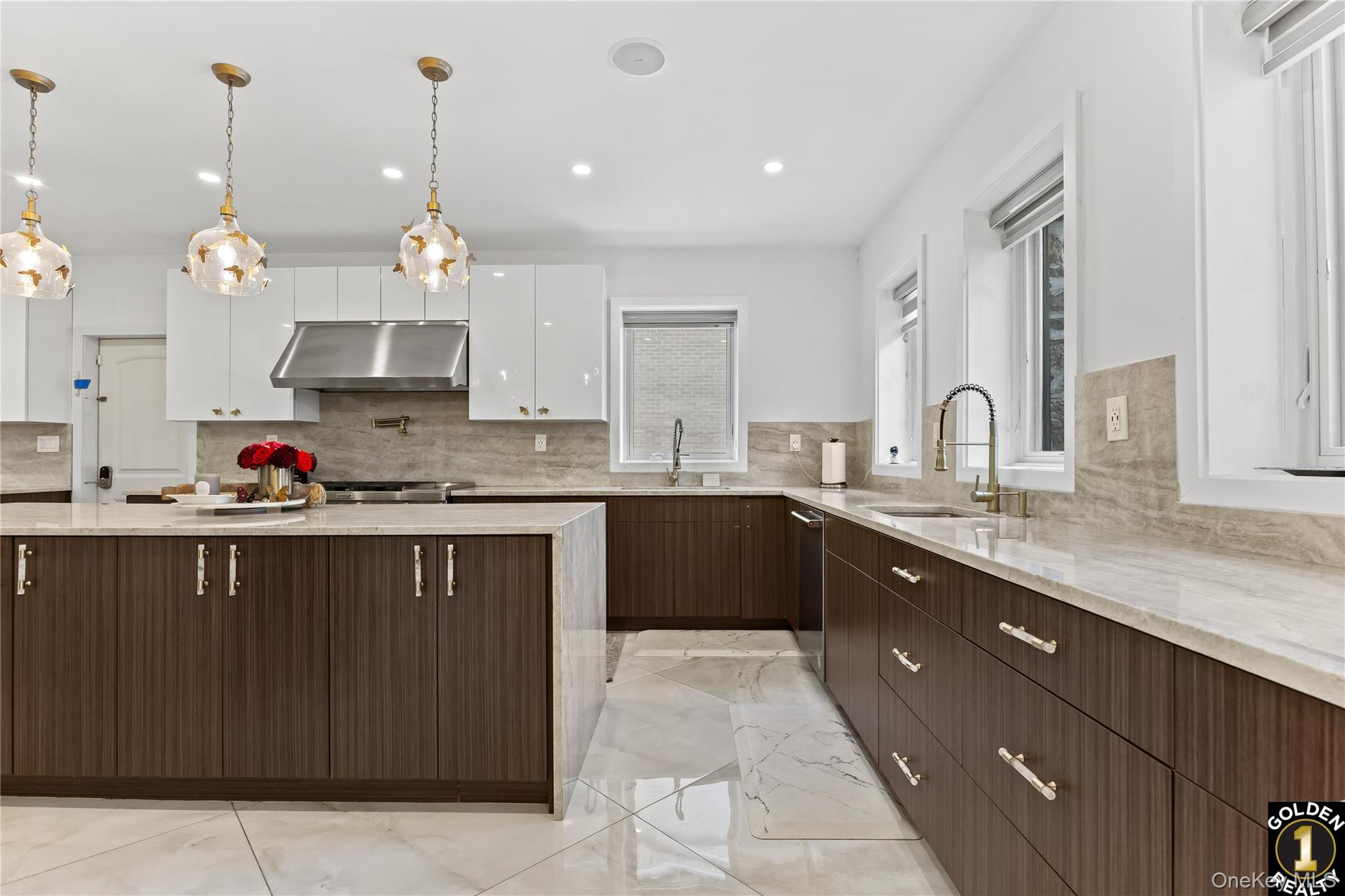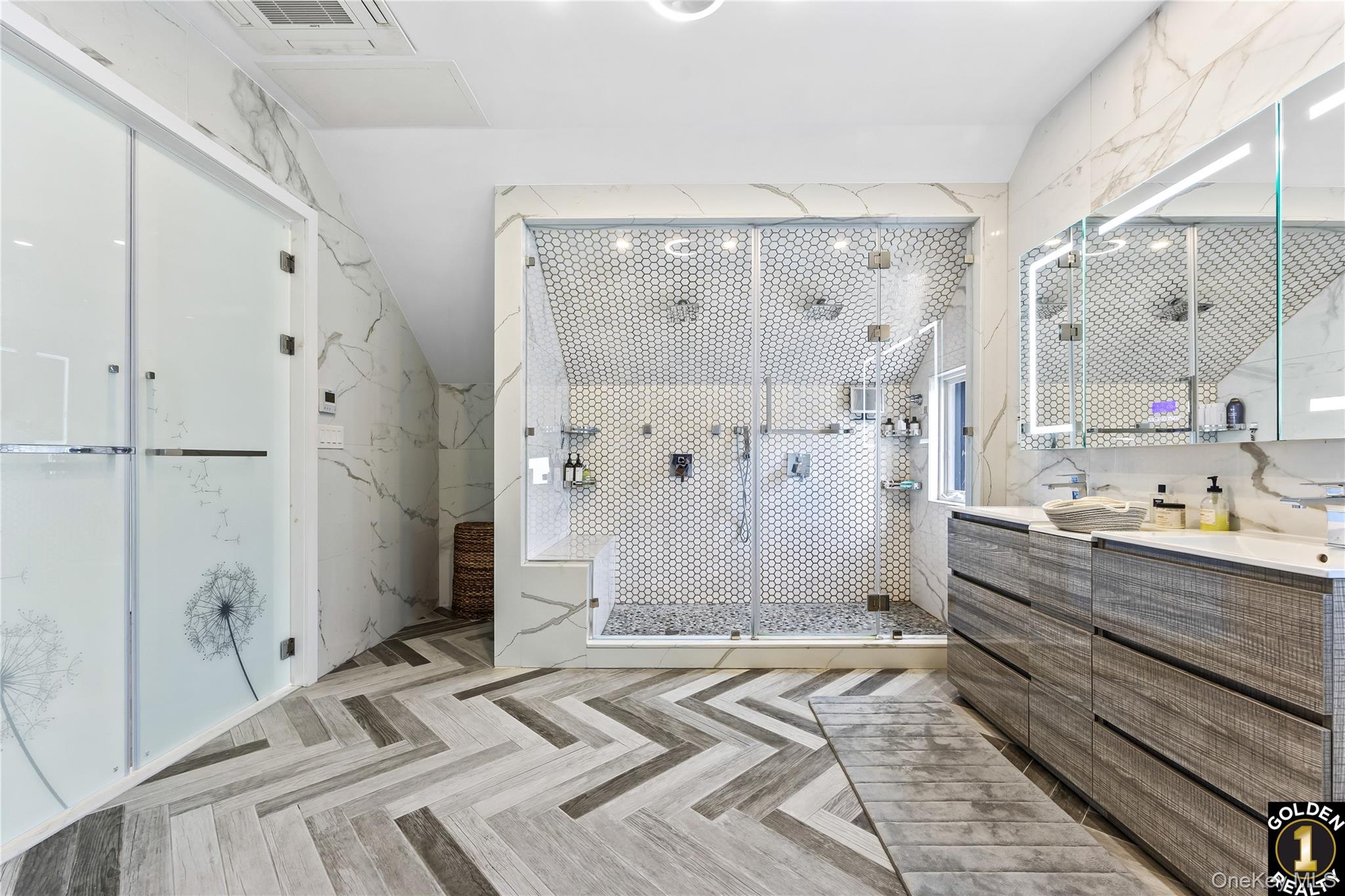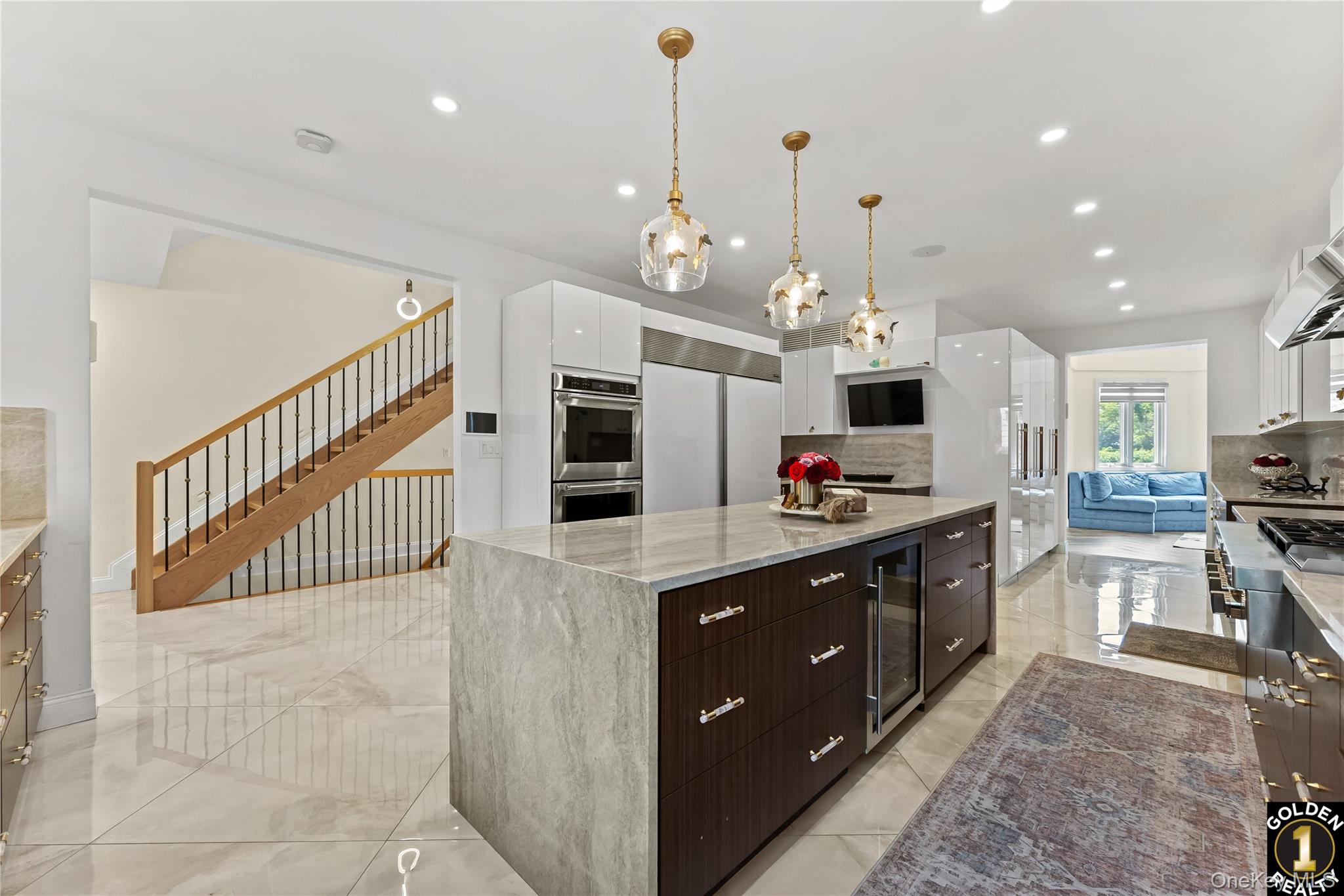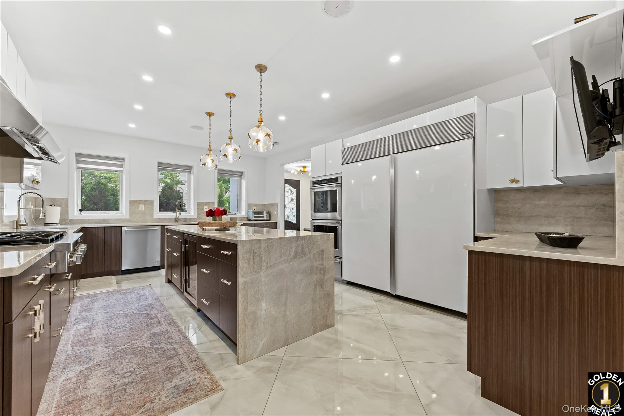 Welcome to a Masterpiece in the Heart of Kew Gardens! Step into one of Kew Gardens' most distinguished custom residences, where sophistication meets unparalleled craftsmanship. Behind grand, handcrafted double doors lies a home of timeless elegance, thoughtfully designed for luxurious living and effortless entertaining. Main Level – Grace in Every Detail The first floor unfolds in a harmonious layout that seamlessly balances refinement and comfort. From exquisite architectural finishes to the warm glow of radiant heated floors, every element has been curated with impeccable taste. To the right, a chef’s kitchen awaits—an epicurean’s dream. Adorned with sleek European cabinetry in a rich walnut and crisp white blend, the kitchen is graced with opulent Taj Mahal quartz countertops and backsplash. Culinary experiences are elevated with a professional-grade Wolf six-burner range with griddle, a commercial “Best” exhaust hood, double 54” Sub-Zero refrigerator/freezer, dual sinks and get ready to impress your guests with decadent home cooked meals made in your Double Kitchen-Aid Ovens and Wolf warming drawer. A central island offers abundant storage and houses a Sub-Zero mini fridge, and ample workspace—designed to inspire both casual meals and gourmet feasts. The formal dining room is framed by a sweeping picture window overlooking the manicured backyard, setting a serene stage for both intimate gatherings and lavish soirées. Nearby, the elegantly curved “Round Room” invites cozy conversation and relaxed family moments with its custom-built seating and inviting ambiance. To the left, a grand salon pays homage to the home's 19th-century roots, featuring an original 1890 wood-burning fireplace accented by a contemporary Taj Mahal quartz surround, melding historic charm with modern luxury. Two tastefully appointed guest baths complete this level. Second Floor – Tranquil Private Suites The upper level hosts five expansive bedrooms, including a junior primary suite with a full en-suite bath and generous closets. Four additional bedrooms are paired via Jack-and-Jill baths, all offering abundant storage and independent Mitsubishi split-system climate control for personalized comfort. Third Floor – A Master Loft Like No Other The top floor is a private sanctuary: a breathtaking master loft with vaulted ceilings, abundant natural light, and a warm original 1890 fireplace. This elegant retreat includes a personal lounge with an 80” swiveling flat-screen TV and a couture walk-in wardrobe with custom glass doors, marble counters, and ambient LED lighting. The spa-inspired bathroom features a TOTO smart toilet, dual vanities, and BRIZO luxury shower fittings, designed for indulgent relaxation, for him and her. Lower Level – Endless Possibilities The fully finished lower level offers versatile space for fitness, entertainment, or extended guest living. It includes a private bedroom, full bath, and a thoughtfully designed laundry suite Home Systems & Construction Highlights: • Custom-built in 2020 with premium finishes throughout, with Smart Features throughout the home • Radiant heated floors on the entire main level • 220-volt electrical system • Energy-efficient foam insulation • Anderson Architectural Series argon-filled windows • Architectural shingle roofing • Original Masonry Foundation with Modern Stucco Detailing Step into a beautifully landscaped and fully fenced backyard retreat, centered around a stunning saltwater heated inground pool. A rare luxury in Queens, this outdoor space offers a resort-quality experience for both entertaining and everyday serenity.