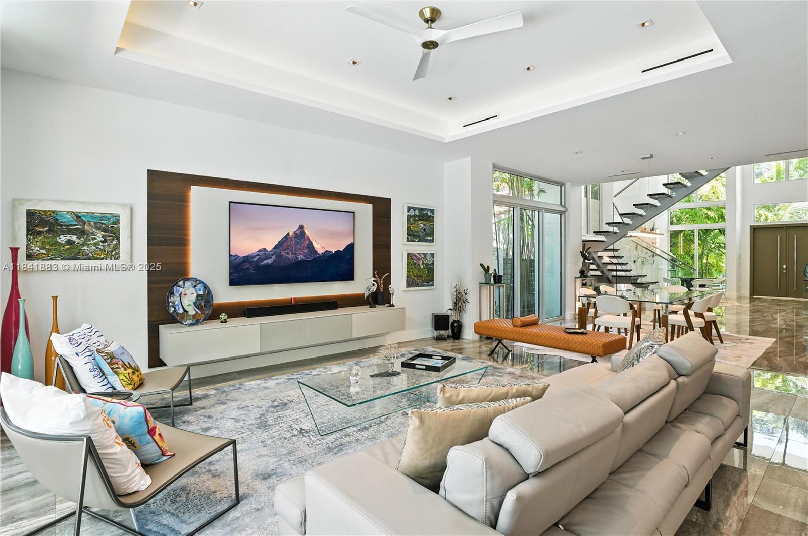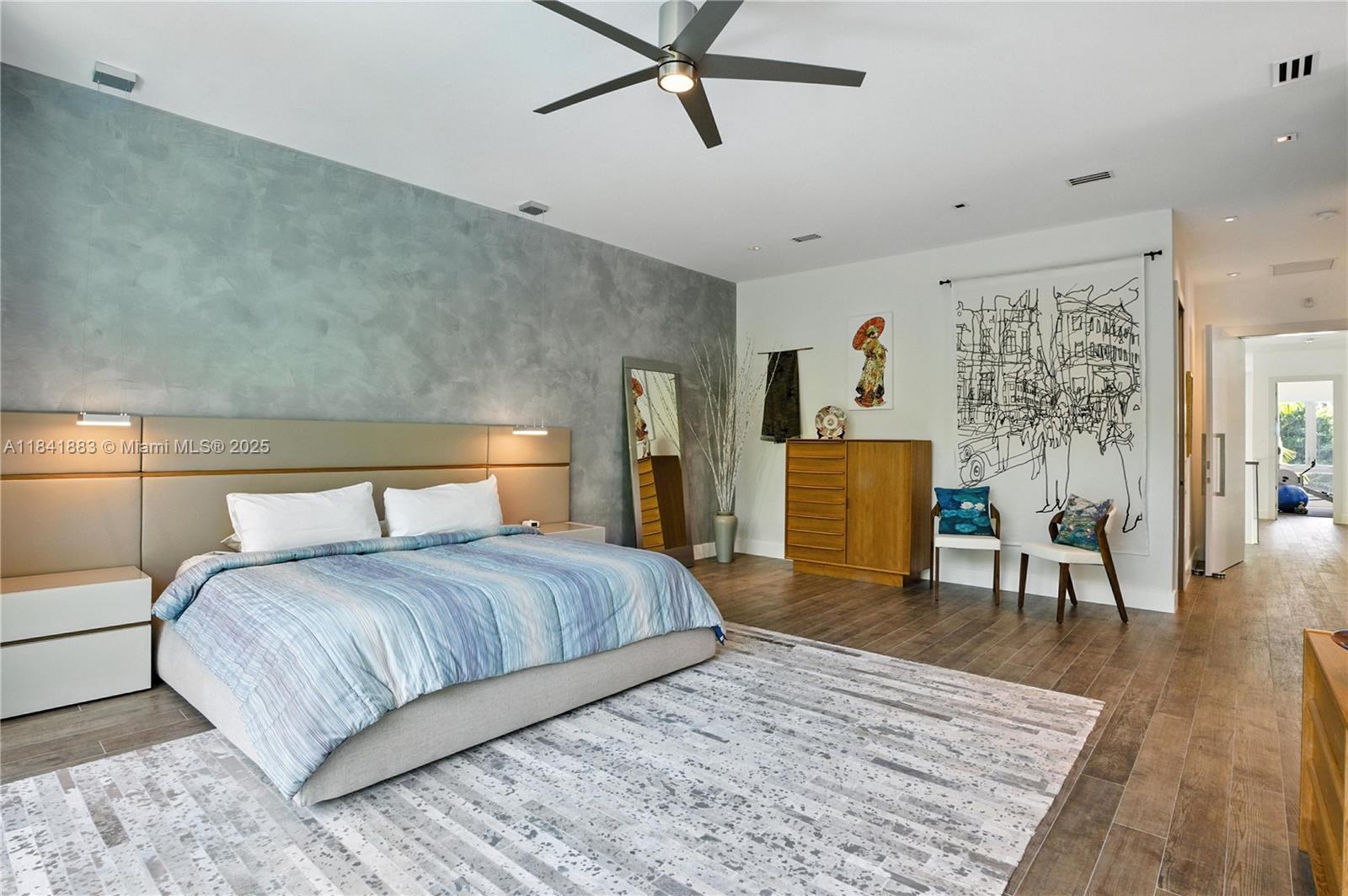 A modern home located in one of the best streets of South Coconut Grove! Quiet and charming while conveniently able to walk to the center of the village or the best private schools! This, 4-bedroom, 3. 5-bath architectural gem with soaring 24 ft ceilings, sleek finishes, and a light-filled open layout. A fully remodeled kitchen, upgraded custom doors throughout. Expansive primary suite with renovated spa-style bath and oversized walk-in closets!! Additional highlights include a private office in addition to the 4 bedrooms, artful decor, and a 2-car garage. Gated, secure, and ideally located. A true modern sanctuary.