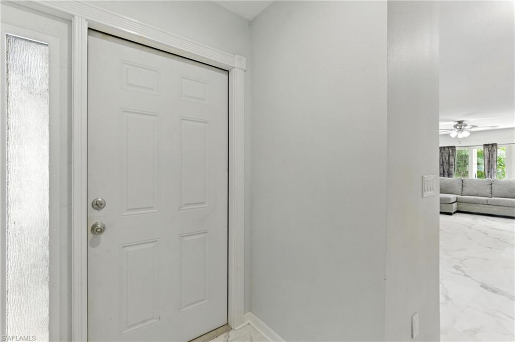 This stylish Fort Myers retreat has been thoughtfully updated—the seller spared no expense. Enjoy a brand-new roof, impact-resistant sliding doors and windows, and a new AC system. The open-concept layout is filled with natural light and features marble-look vinyl flooring throughout. The sleek kitchen boasts stainless steel appliances and flows into a spacious living area. Originally a two-bedroom, the flexible floor plan can easily be converted back. The oversized bedroom leads to a spa-like bathroom, and a private patio offers the perfect space to unwind.