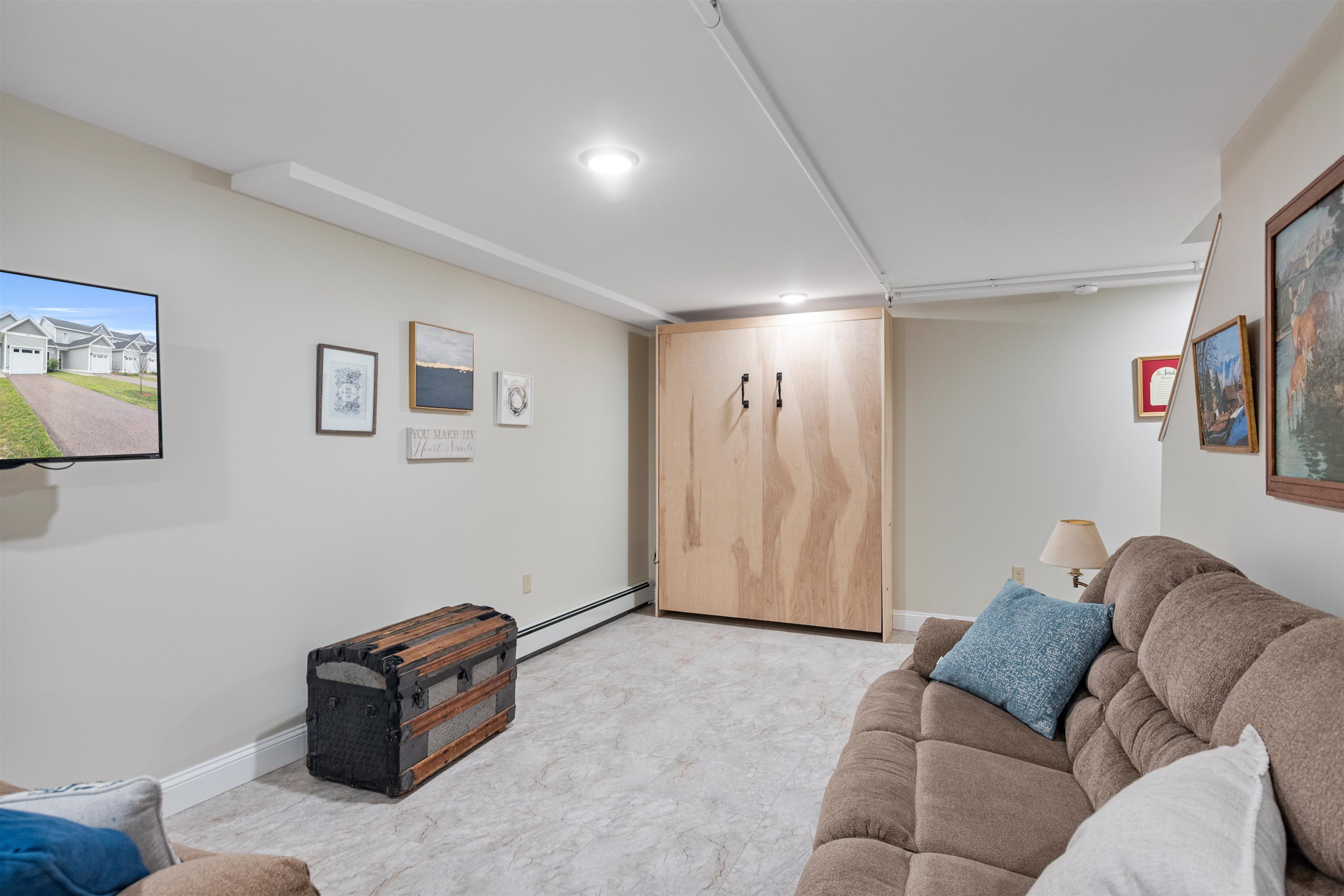 Step into ease and comfort at 13 Clover Lane, an end-unit townhome in Hinesburg’s Meadow Mist community. A zero-step entry welcomes you into the bright, open main living space, where natural light fills the living and dining areas. The kitchen features energy-efficient appliances and flows seamlessly for effortless everyday living. Just off the main hall is the primary bedroom and a full bathroom with a step-in shower—designed for accessible, one-level living. Downstairs, a partially finished lower level offers flexible bonus space: a cozy family room with a Murphy bed, a second bedroom, another full bath with step-in shower, and a generous storage area. Outside protected wetlands provide a peaceful natural backdrop as well as sweeping mountain views. Sidewalks lead you directly to shops, restaurants, and village cafés. Additional highlights include a Lunos whole-house ventilation system, fire sprinklers, an attached garage, and 20 acres of shared common land with a gazebo and playground. Perfect for retirees or anyone seeking an accessible and low-maintenance lifestyle in a vibrant Vermont community.