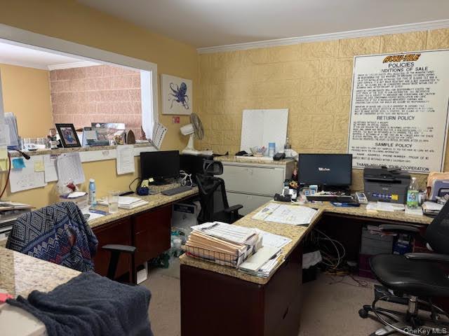 NEW WINDSOR - BRING YOUR BUSINESS HERE AT THIS LOCATION WITH SUPER HIGH VISIBILITY. . . NEXT TO DUNKIN' DONUTS. ROUTE 9W STOREFRONT WITH PARKING. . . APPROXIMATELY 3900' SQ. FT. IN TOTAL. 2700' sq. ft. retail space on one level, one big open space with 13' high ceilings, large glass windows on all three sides of the building provides plenty of 9W direct visual exposure, a 12' high overhead door and a double 6' glass door plus another 1200' sq. ft. office space on 2 levels and small extra storage area. Bathroom on 1st floor. Second floor space has 9' high ceilings with windows overlooking the showroom. Entire building has central air and forced air heat and plenty of natural sunlight and direct visibility from 9W.
