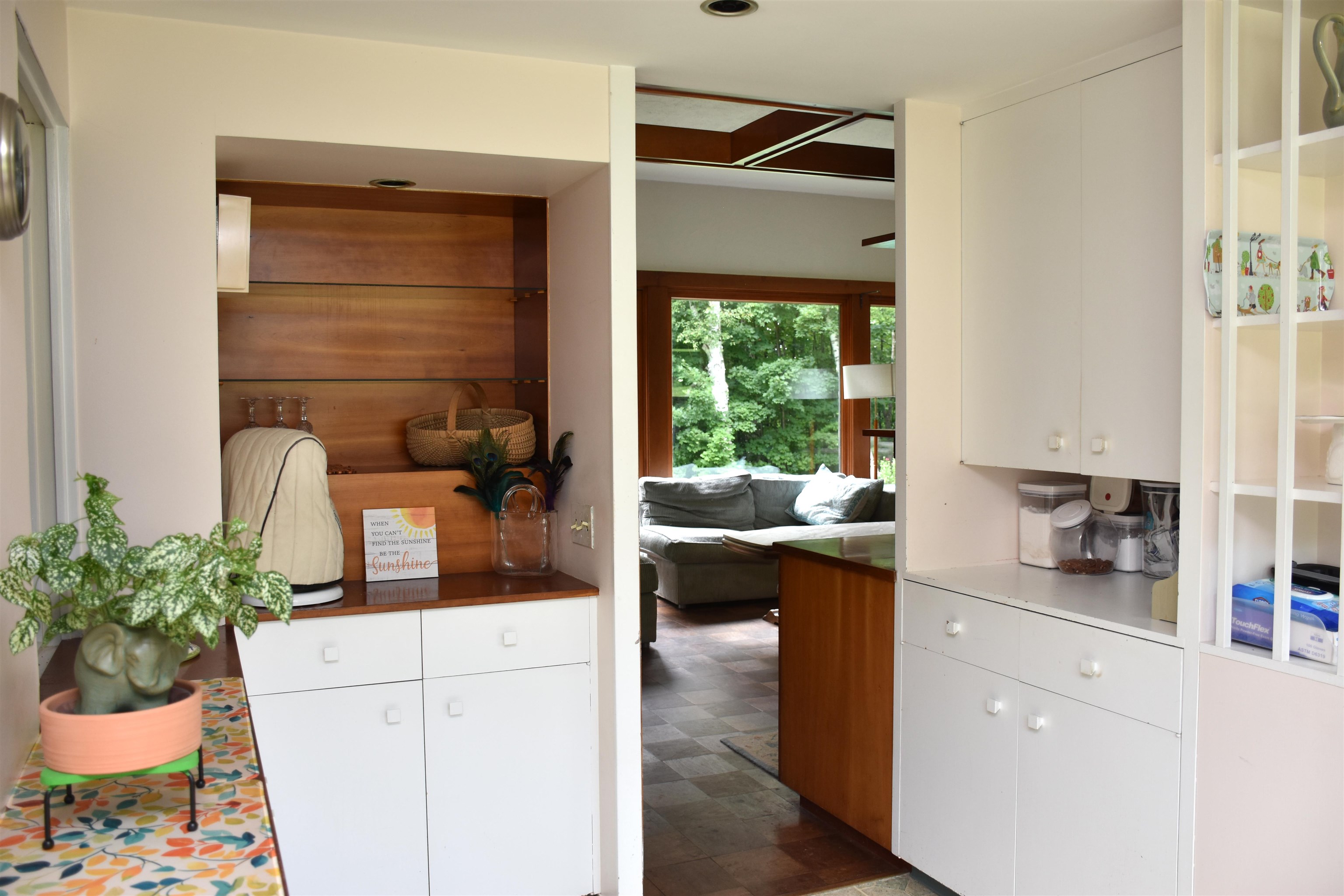 Woodlands Retreat in the City! A soothing 2-BR, 2 1/2-bath Mid-Century Ranch with spacious rooms and HUGE windows that bring the outside indoors! Lovely stone fireplace and parquet flooring in living room. Fully-equipped eat-in kitchen has plenty of counter space and cabinets. Both bedrooms are substantial enough in side and closet space that either could be considered the "Primary". Jack and Jill adjacent bathrooms are accessible from either bedroom. Built-in storage, nooks and crannies throughout. Three mini-splits keep the house cool and comfortable when its hot and muggy outside. First floor laundry with front loading appliances included. Still has its original charismatic flair for all of the Mid-Century aficionados out there! 8'x28; Screened porch with slate flooring. Top roof being replaced this week. 2-Car, direct-entry garage. 1. 26 Acre surveyed lot offers many perennial garden plantings, wooded forest, and some lovely laid-up-stone walls, patio and walkways. I'd recommend that you put a viewing of this property towards the top of your list, right away!