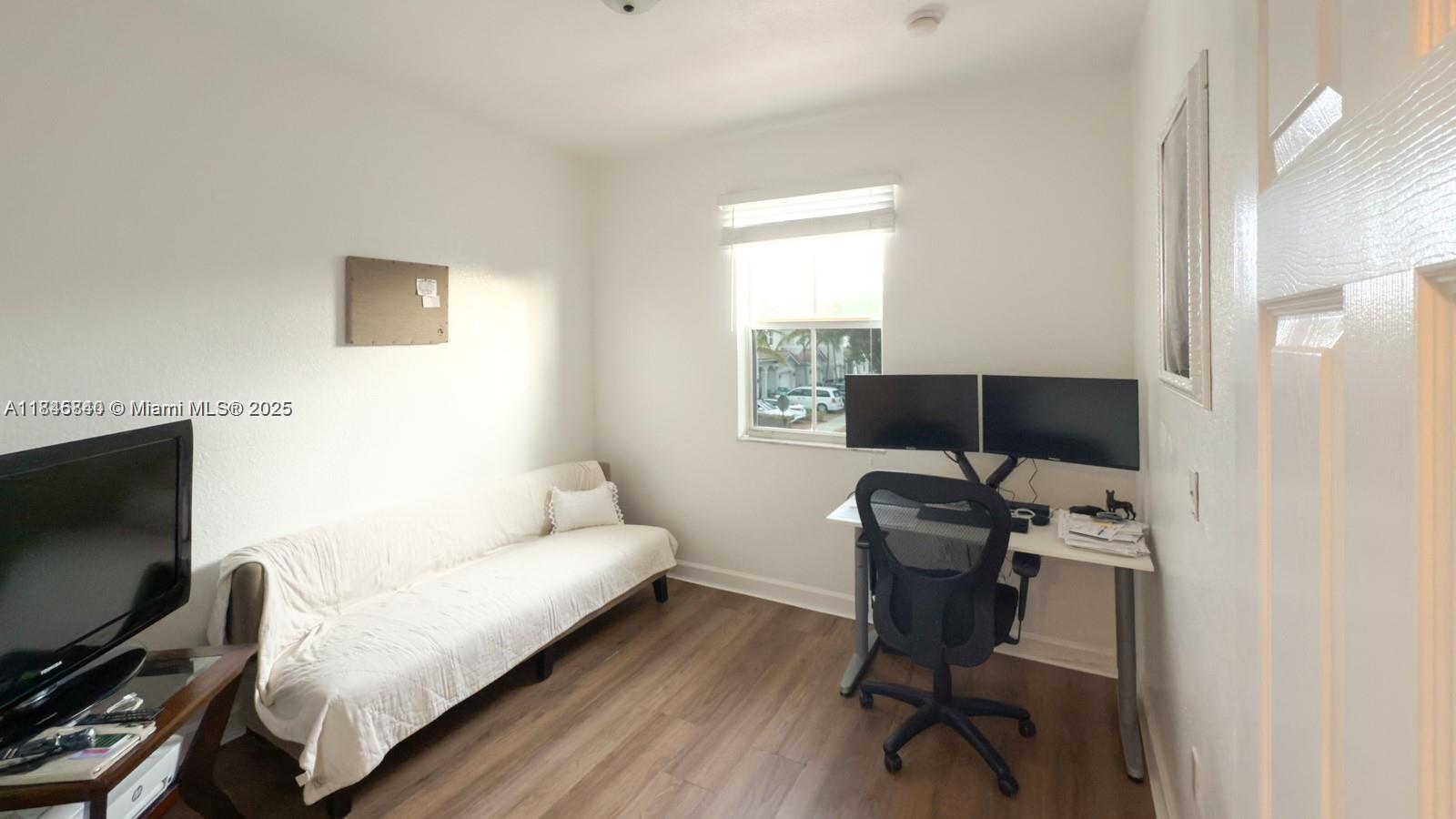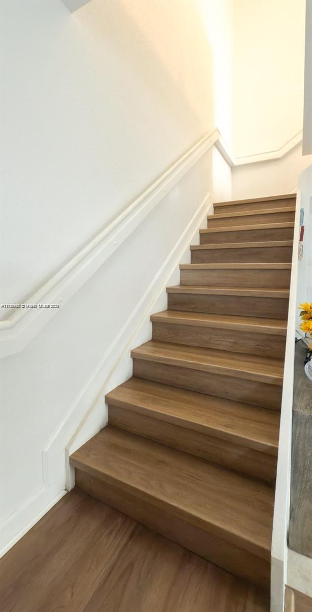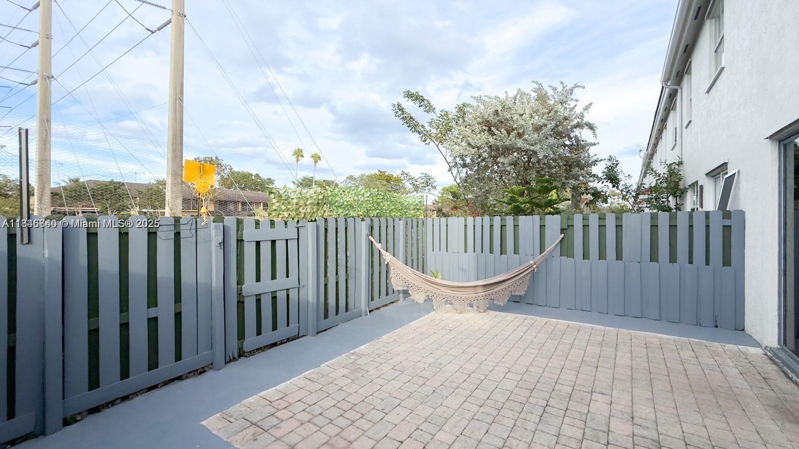Spacious, contemporary townhouse featuring high ceilings and a stylish neutral color scheme. The downstairs area boasts sleek tile flooring, while the upstairs offers plush carpeting. The kitchen is equipped with stainless steel appliances and beautiful granite and wood finishes. A full bathroom and a bedroom are conveniently located on the first floor, perfect for guests or in-laws. Enjoy privacy with a fenced-in paver patio. Upstairs, the expansive master suite includes a walk-in closet and an en-suite bathroom with double sinks. Additionally, there are two guest bedrooms and a generous second bathroom. Located just 3 minutes from I-95 and 10 minutes from Aventura.