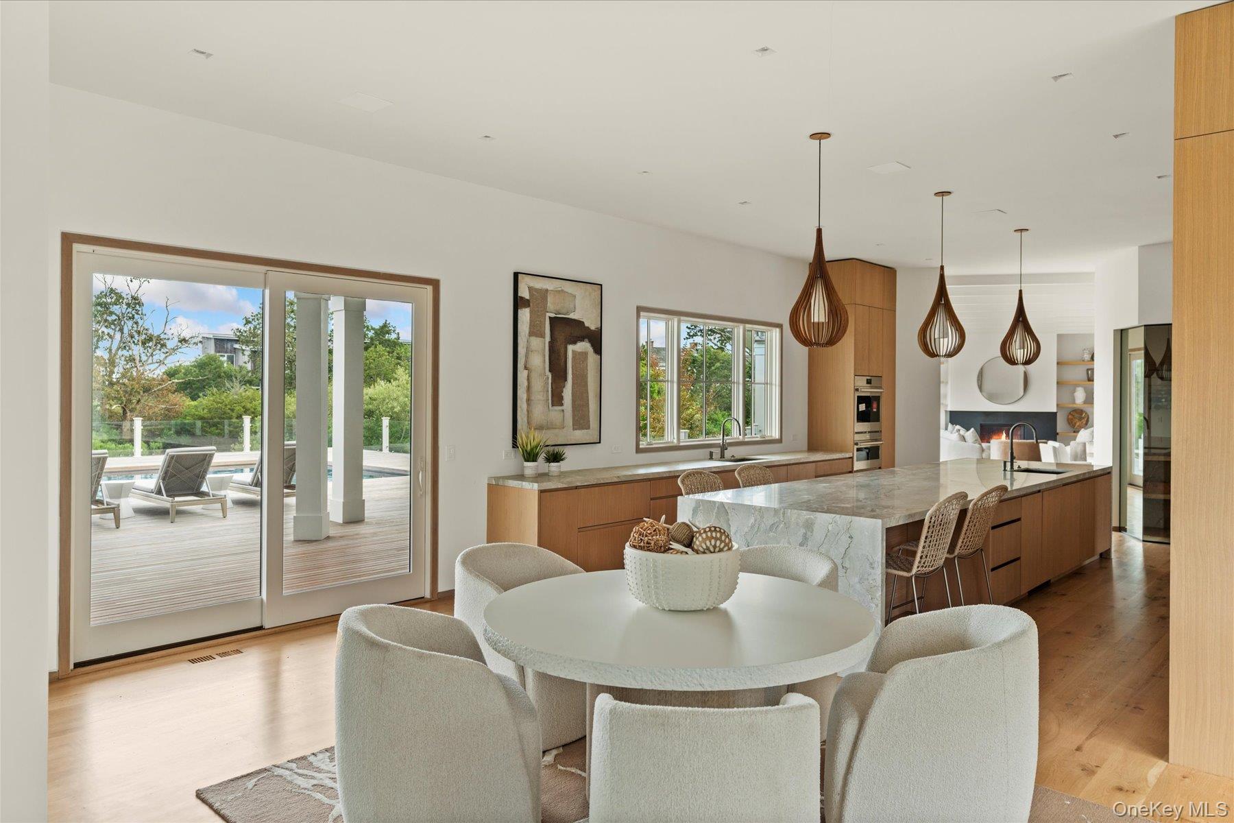 Discover the ultimate in luxury living on 3 private acres with 225 feet of bulkhead along the serene Quantuck Creek in Quiogue. This stunning new construction estate offers unparalleled privacy, deep water dock, panoramic open creek views, and resort-style amenities crafted for both relaxation and entertaining. Step through a beautiful white oak foyer into a home rich with craftsmanship, featuring custom trim work, curated finishes, and a thoughtfully designed open layout. At the heart of the home is an oversized chef's kitchen with marble countertops, a walk-in pantry, and an inviting great room that flows effortlessly into two elegant living areas, each with its own fireplace. The first floor includes two en suite bedrooms, two private offices, a laundry room, and two stylish half baths with marble countertops, all connected to a radiant-heated three-car garage. Upstairs, a dramatic balcony opens to a light-filled family room. The private primary suite wing offers a luxurious retreat with a sitting room, expansive walk-in closet, spa-like marble bath, and a covered veranda with stunning views of Quantuck Creek. Every detail of this home was thoughtfully curated for elevated living. With eight spacious bedrooms, including a private guest suite and junior primary, there's room for everyone to feel at home. The residence features nine full bathrooms and three elegant half baths, including a dedicated pool bath for effortless outdoor entertaining. Three well-appointed laundry rooms with a total of five washers and dryers offer everyday ease and efficiency. Sophisticated materials are found throughout: marble countertops in the kitchen, primary suite, junior suite, and powder rooms, and quartz finishes in the secondary bedrooms. Comfort meets innovation with hydronic radiant floor heating in the primary suite and garage. Smart home features include a full Sonos sound system, Lutron RA-3 smart lighting, and pre-wiring for automated shades in all bedrooms. Outdoors, enjoy a covered deck with a built-in BBQ and bar, an outdoor fireplace, and a stunning pool and spa, all overlooking the peaceful waters of Quantuck Creek. A home gym, playroom, and flexible living spaces round out this exceptional residence. 551 Main Street is more than a home, it's a lifestyle. A rare opportunity to own a modern waterfront estate in one of the Hamptons' most coveted enclaves