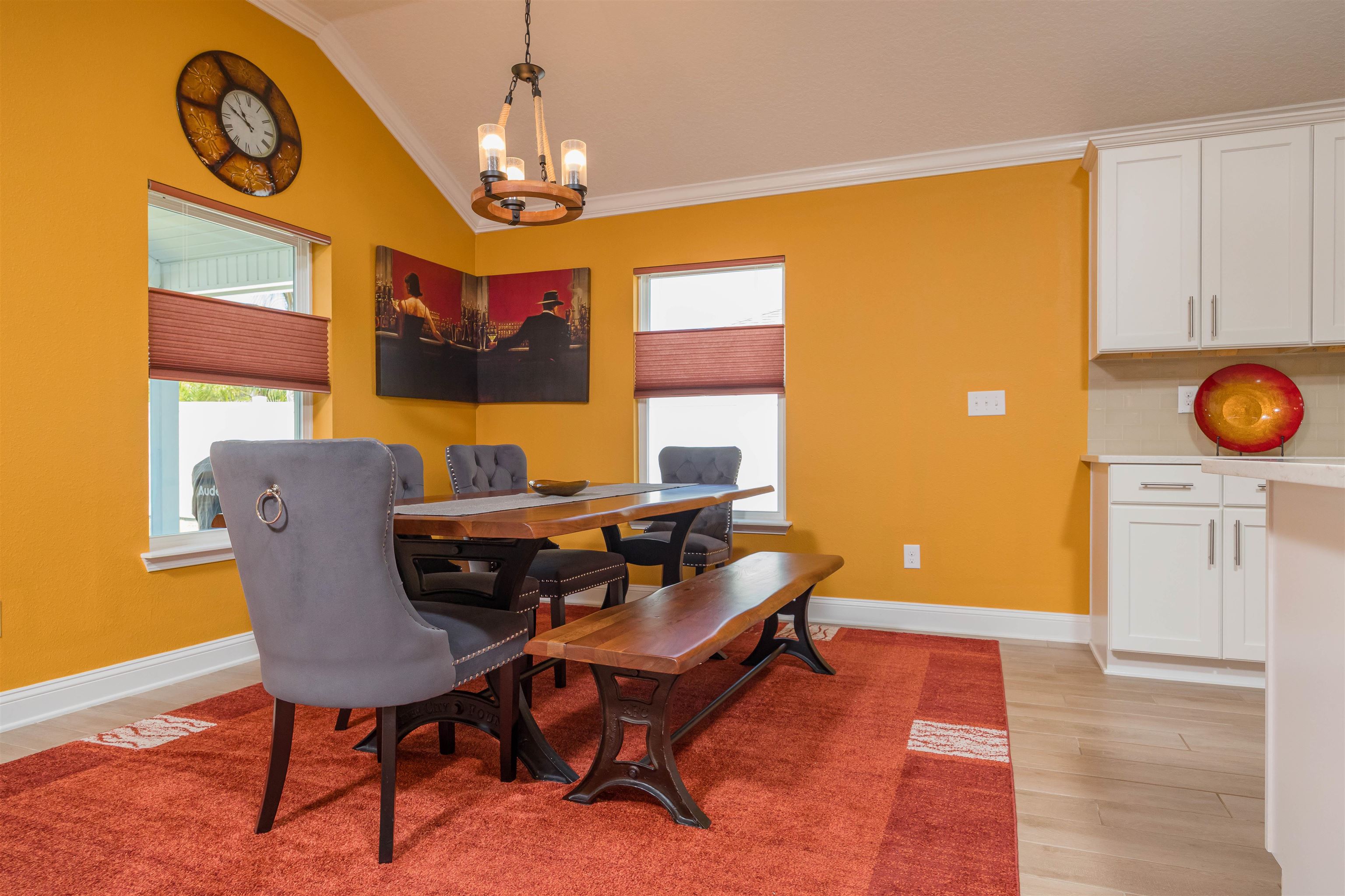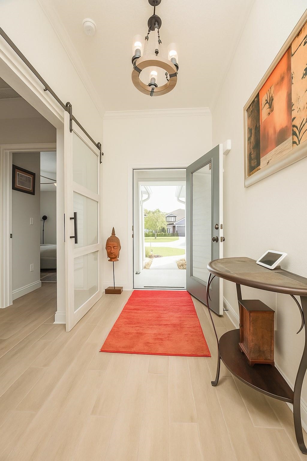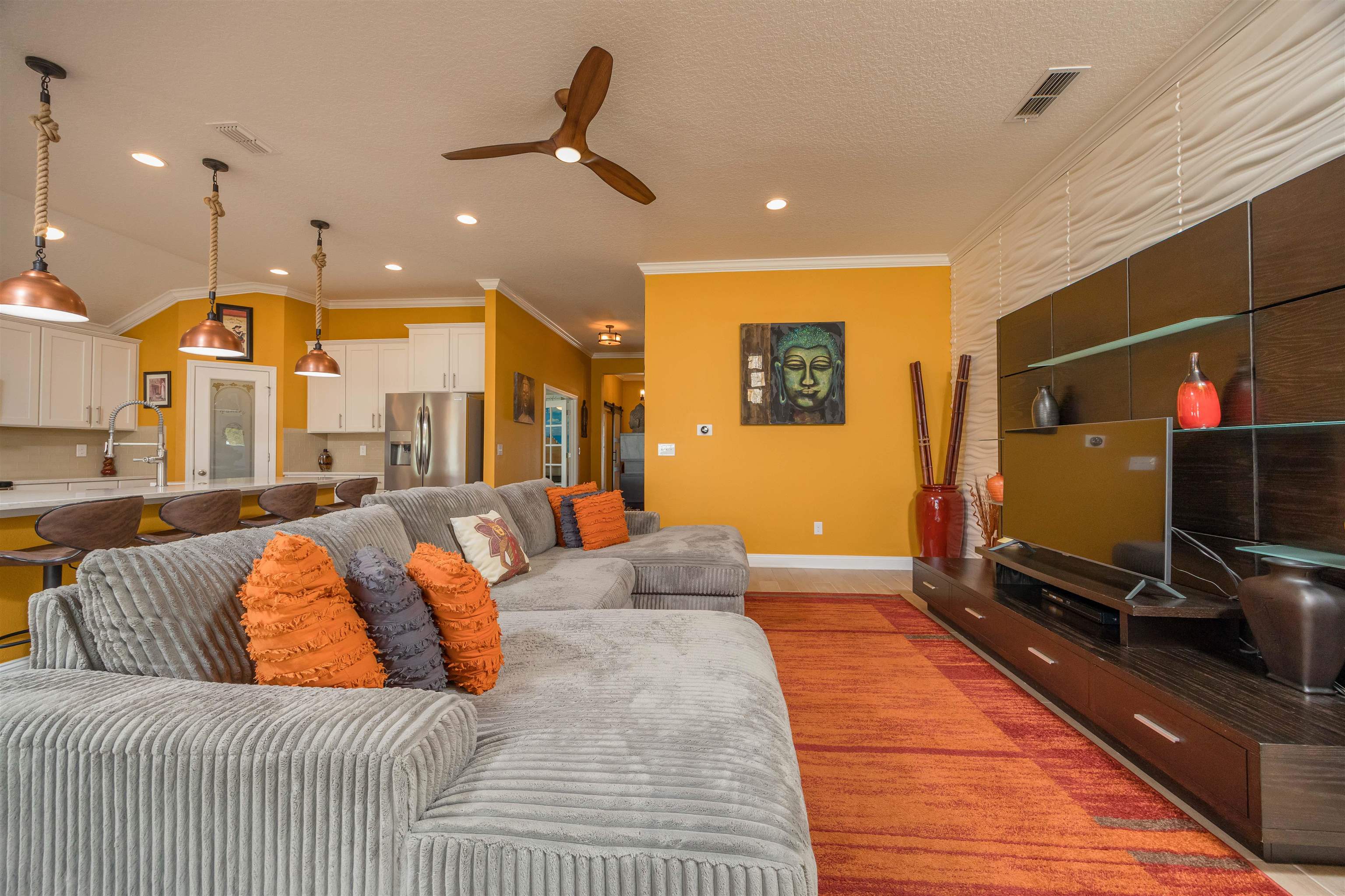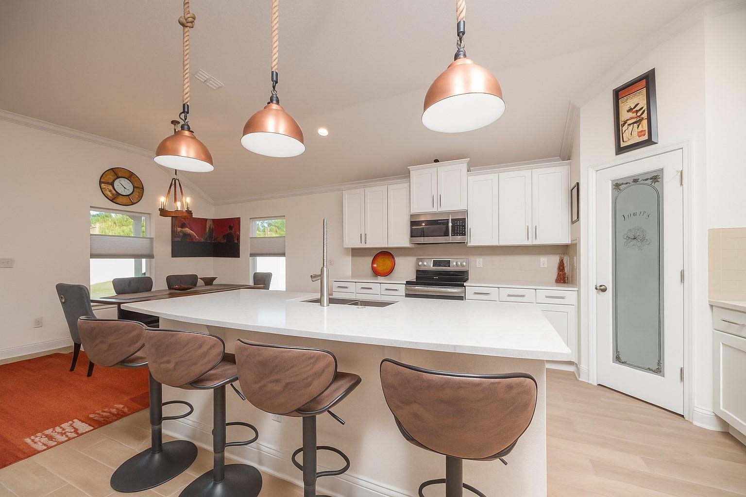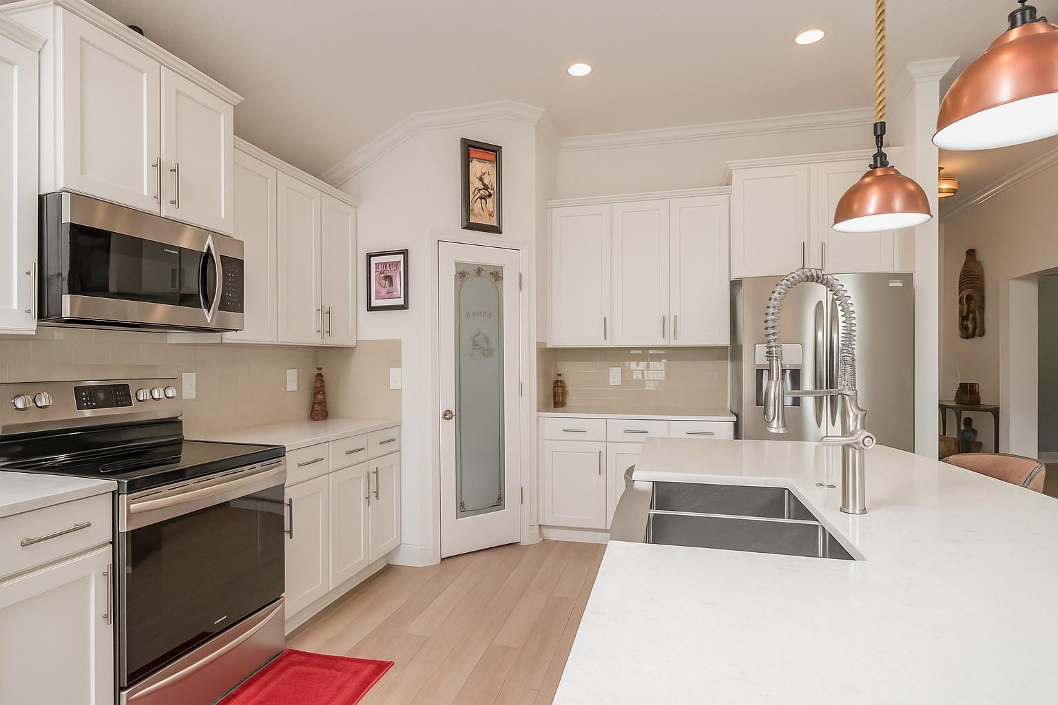 Coastal Contemporary Ranch Home 5 minutes from Crescent Beach in the gated community of Lakewood Pointe! Welcome to this stunning split plan home located just 2. 5 miles from the pristine beaches of St. Augustine. This home boasts 3 spacious bedrooms, 3 full baths, and a bonus room, all designed for ultimate comfort and luxury. Interior Features • Upgraded Baths, Window Treatments, Fans, and Fixtures: Each bathroom has been meticulously upgraded, complimented by modern fixtures and fans throughout the home. • Plank Tiles Throughout: Elegant plank tiles cover the entire floor, providing a seamless and stylish look. • Ceilings and Crown Molding: Enjoy the grandeur of 11 ft. ceilings adorned with sophisticated crown molding. • Bonus Room: The bonus room features beautiful French Doors, offering versatile use for an office, guest room, or studio. • Kitchen Highlights: The gourmet kitchen is equipped with stainless steel appliances, a large kitchen island, glass subway tiled backsplash, a sizable pantry, and quartz countertops. The apron front double bowl stainless steel kitchen sink with a commercial-grade faucet and push button garbage disposal adds a touch of practicality and luxury. • Open Living Spaces: The open family/dining/great room showcases a striking 3-D accent wall, perfect for hosting gatherings and enjoying family time. • Primary Bedroom Suite: The oversized primary bedroom features a tray ceiling and picture frame accented walls. The ensuite bathroom includes a double vanity, frameless glass shower, two walk-in closets, and two additional closets. • Secondary Bedroom and Bath: One secondary bedroom and bath are thoughtfully separated from the main living area by a sliding barn door, providing privacy and tranquility. • Laundry Room: The laundry room is equipped with a newer digital washer and dryer, industrial-style storage cabinets, making laundry a breeze. • Outdoor Living: Step outside through the 3 glass sliders on the rear of the home to a large, covered patio and a sizable, enclosed backyard, ready for a pool or outdoor oasis.