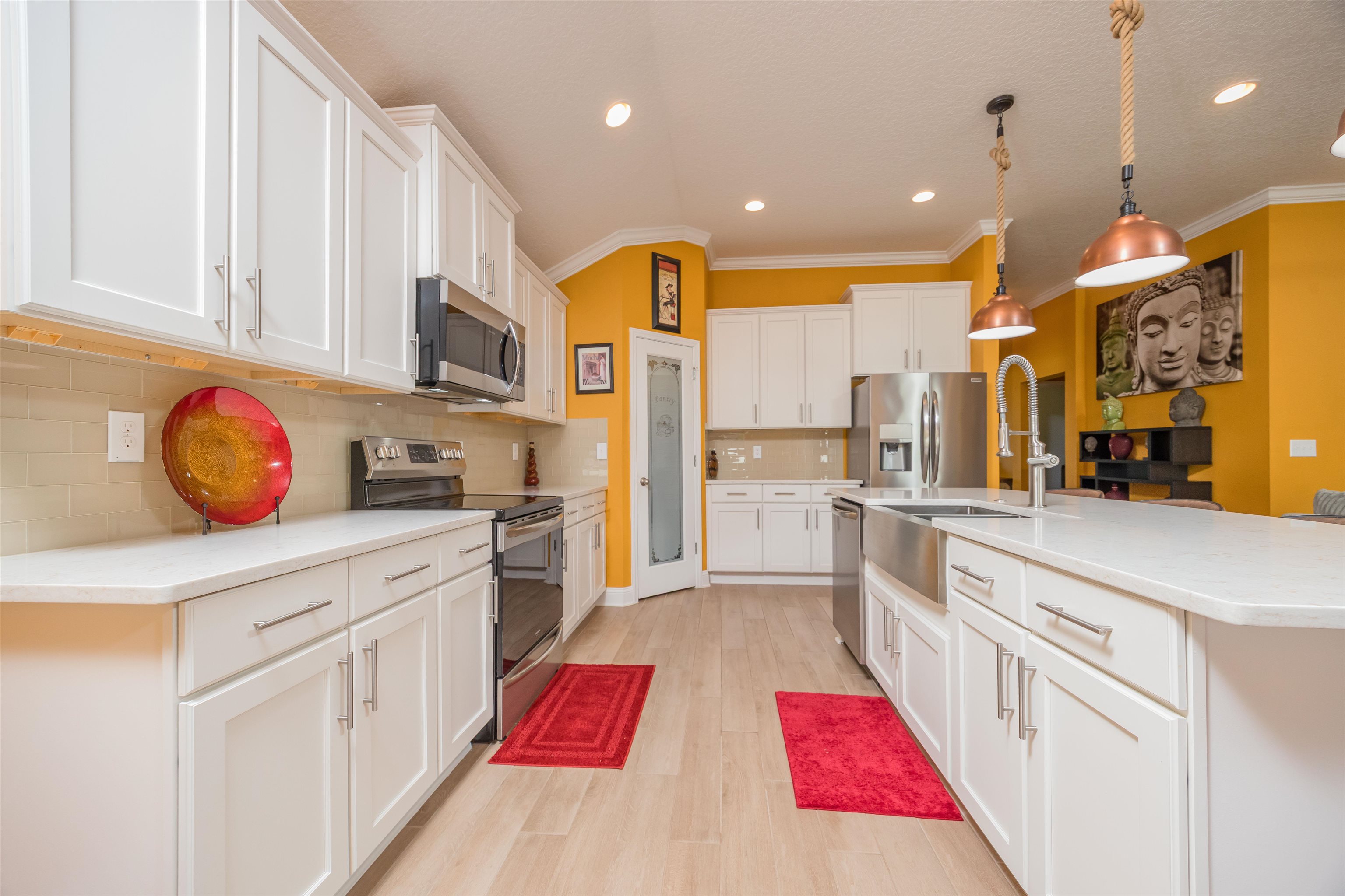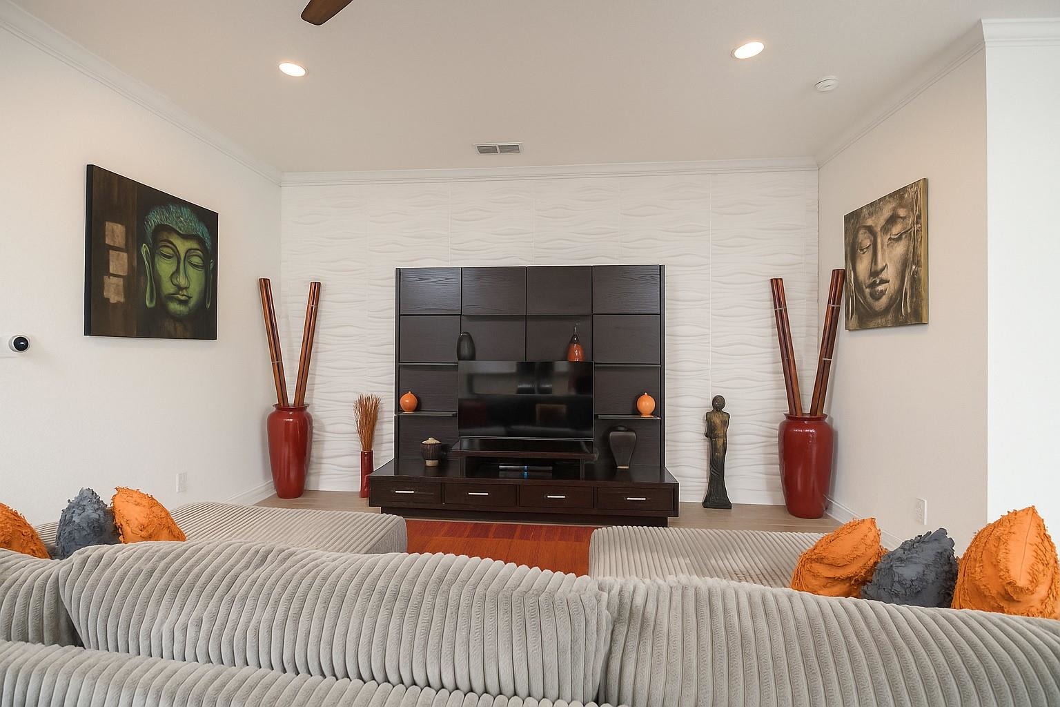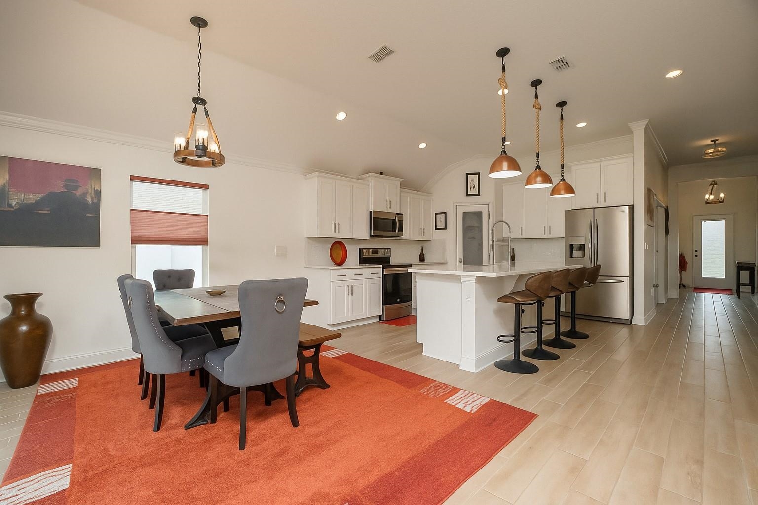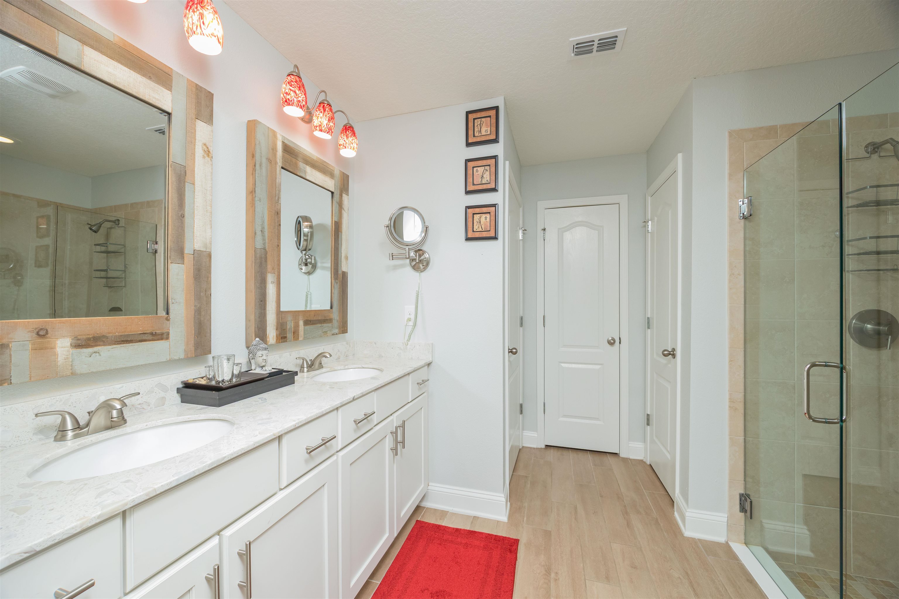 Coastal Contemporary Ranch Home 5 minutes from Crescent Beach in the gated community of Lakewood Pointe! Welcome to this stunning split plan home located just 2. 5 miles from the pristine beaches of St. Augustine. This home boasts 3 spacious bedrooms, 3 full baths, and a bonus room, all designed for ultimate comfort and luxury. Interior Features • Upgraded Baths, Window Treatments, Fans, and Fixtures: Each bathroom has been meticulously upgraded, complimented by modern fixtures and fans throughout the home. • Plank Tiles Throughout: Elegant plank tiles cover the entire floor, providing a seamless and stylish look. • Ceilings and Crown Molding: Enjoy the grandeur of 11 ft. ceilings adorned with sophisticated crown molding. • Bonus Room: The bonus room features beautiful French Doors, offering versatile use for an office, guest room, or studio. • Kitchen Highlights: The gourmet kitchen is equipped with stainless steel appliances, a large kitchen island, glass subway tiled backsplash, a sizable pantry, and quartz countertops. The apron front double bowl stainless steel kitchen sink with a commercial-grade faucet and push button garbage disposal adds a touch of practicality and luxury. • Open Living Spaces: The open family/dining/great room showcases a striking 3-D accent wall, perfect for hosting gatherings and enjoying family time. • Primary Bedroom Suite: The oversized primary bedroom features a tray ceiling and picture frame accented walls. The ensuite bathroom includes a double vanity, frameless glass shower, two walk-in closets, and two additional closets. • Secondary Bedroom and Bath: One secondary bedroom and bath are thoughtfully separated from the main living area by a sliding barn door, providing privacy and tranquility. • Laundry Room: The laundry room is equipped with a newer digital washer and dryer, industrial-style storage cabinets, making laundry a breeze. • Outdoor Living: Step outside through the 3 glass sliders on the rear of the home to a large, covered patio and a sizable, enclosed backyard, ready for a pool or outdoor oasis.