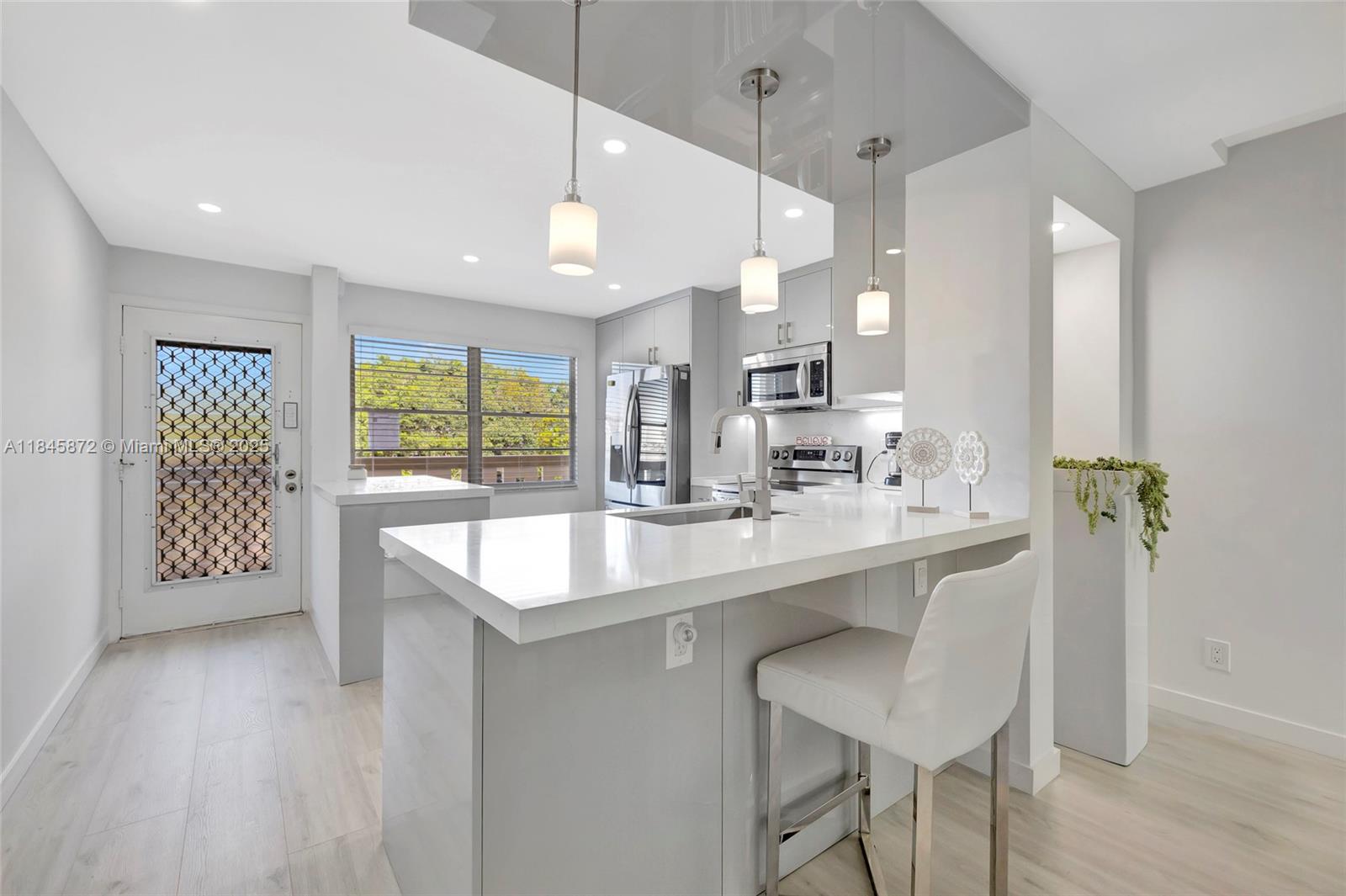 COMPLETELY REMODELED!!! Gorgeous waterfront apartment on the 3rd floor. Beautiful lake views from balcony, living room, and master bed. Open floor plan with plenty of light. All modern upgrades. New open white/Grey Quartz Kitchen with Stainless-Steel appliances. Laminate floors throughout. New white Quartz Bathrooms with ceramic floors, and glass sliding shower doors. Modern fans in bedrooms. Headlights throughout. 24-Hr Security. No pets allowed. 2 years of ownership before leasing. Assoc requires 15% down & 1 Occp 55+