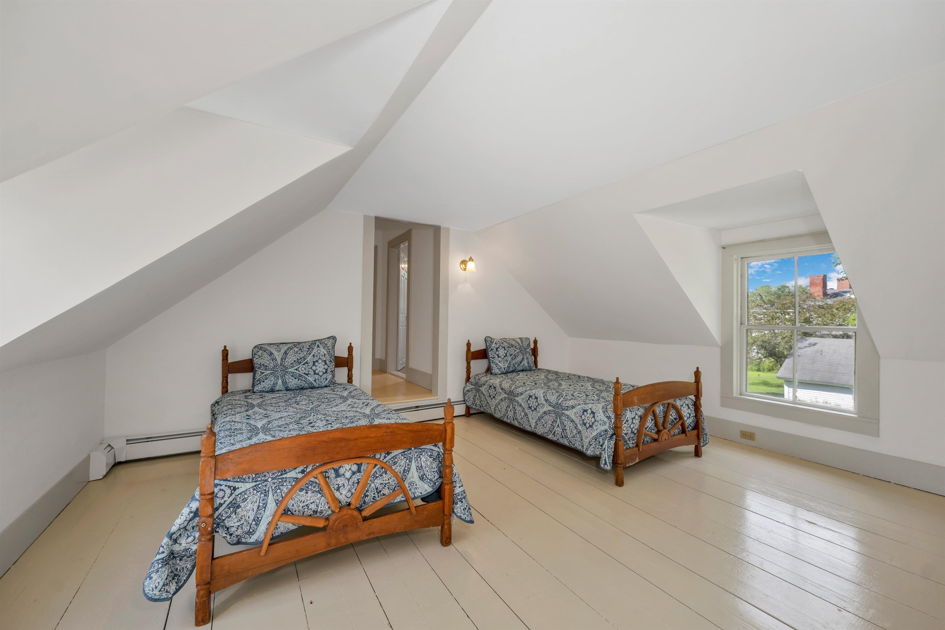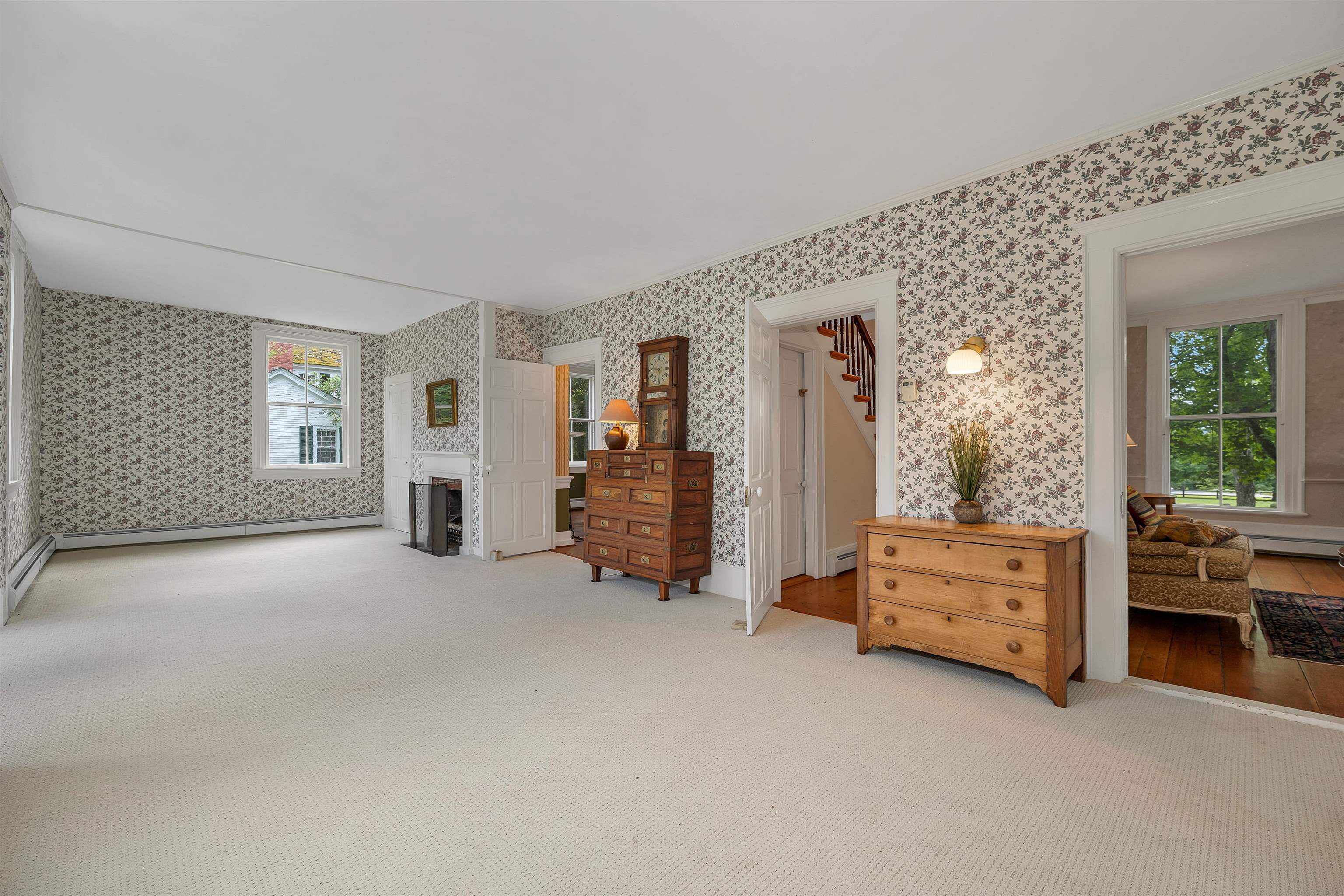 Step into the rich history of New England at The Sloan House, where stately, Timeless craftsmanship meets modern-day functionality in this warm and welcoming home, ideal for today’s remote professionals, creatives, and growing families alike. Inside, sunlight pours through oversized windows, highlighting original wide-plank floors and soaring ceilings that echo the home’s elegant past. The grand living room, anchored by a beautiful bay window, offers the perfect gathering space—whether for quiet evenings or lively celebrations. Two charming front rooms offer endless flexibility, perfect for a home office, music room, guest suite, or a cozy library. A heart-of-the-home dining room, complete with a woodstove and original hearth, opens gracefully into a thoughtfully updated kitchen—where weekday mornings and holiday feasts feel equally at home. Upstairs, four large bedrooms and a versatile bonus room provide room to dream, work, and play. The wide hallway—perfect for a reading nook or homework station—adds another layer of comfort and charm. Outdoors, enjoy rolling lawns, towering maples, and well-established perennial gardens—ideal for entertaining, gardening, or simply unwinding in nature. From here, it's a short stroll to the local library or to enjoy art and community events at the Alumni Hall. A scenic short drive brings you to the Bedell Bridge State Park with access to the Connecticut River.