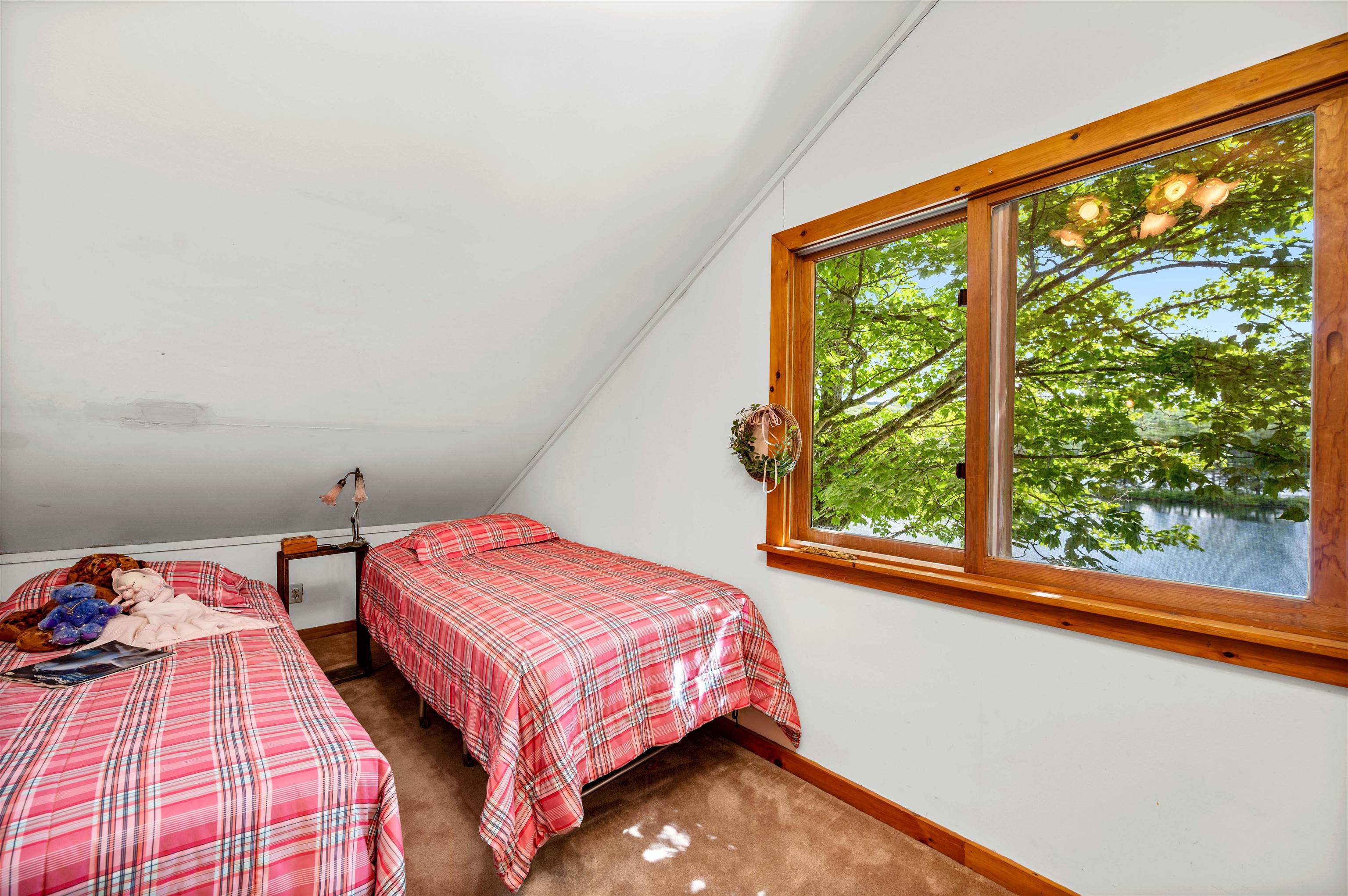 Discover your perfect lakeside retreat at this charming two-bedroom, one full bathroom home featuring 85 feet of swimmable frontage on Sabin Pond in Woodbury, VT. This delightful property offers the ideal blend of comfort and natural beauty, where mornings gazing over the Cove becomes a daily ritual you'll treasure. The heart of this home is anchored by a traditional woodstove that adds rustic charm and efficient warmth throughout the colder months. Home has a propane furnace also. Fully applianced kitchen and open dining living space taking in the expansive view of Herricks Cove. Upstairs, both bedrooms offer comfortable retreats with peaceful views of the surrounding landscape with ample storage closets in hallway. The finished basement provides versatile living space that adapts to your lifestyle needs, whether you envision a family room, home office, or recreational area. The convenient walk-out basement design creates seamless indoor-outdoor flow and an impressive granite fireplace welcomes you on those crisp Vermont evenings when you want to curl up with a good book. The outdoor deck serves as your private observation platform for watching wildlife, hosting summer barbecues, or simply enjoying the tranquil pond setting. With direct water access, you can easily launch a kayak, cast a fishing line, or take a refreshing swim on warm summer days. This property represents more than just a house; it's your gateway to the Vermont lifestyle where everyday feels like vacation.