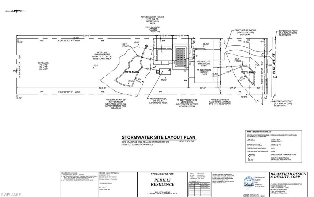 Located in one of Naples’ fastest-growing areas, surrounded by equestrian estates, pine trees and just minutes to Publix, Big Corkscrew Island Regional Park, schools, shops and only 25 minutes to Naples beautiful. This sale is strictly land only. Included — for buyer review and convenience only — is a full set of valuable supporting documentation, including: Approved Collier County building permit for Architectural plans for a custom ~5, 200 sq ft Barndominium home with spacious 4 beds, 5 baths vaulted ceilings and an attached 1, 500sqg garage/workshop with loft) In addition there is a Completed septic and drainfield design, Stormwater and grading engineering. Boundary survey and right-of-way permit, Environmental report confirming mostly uplands – see attached