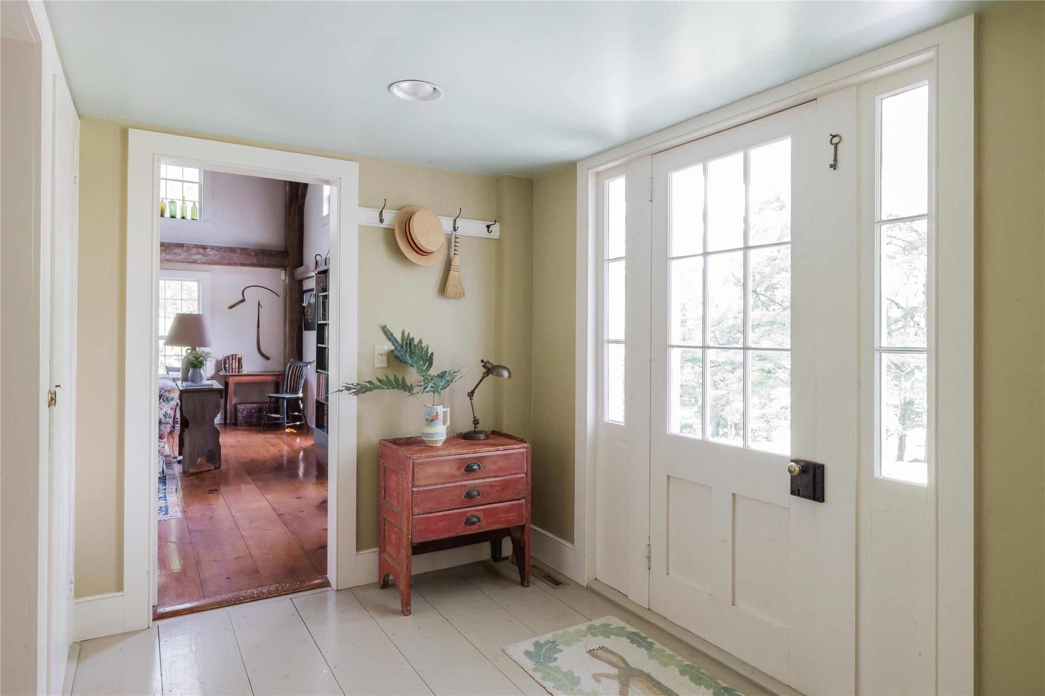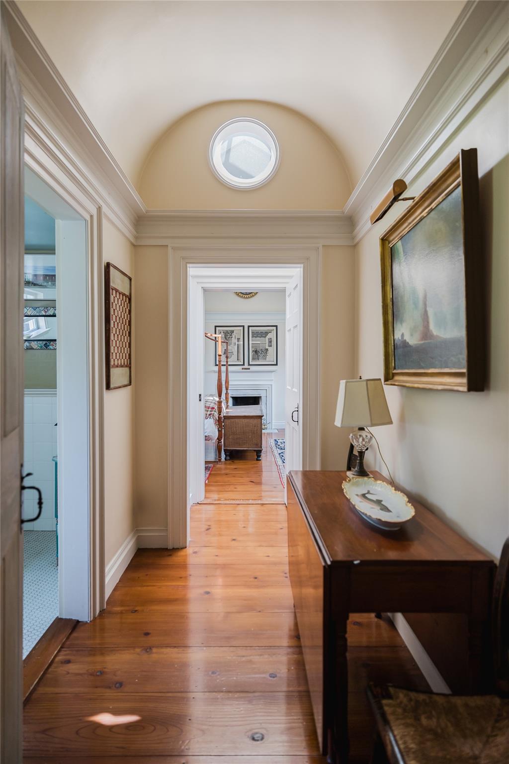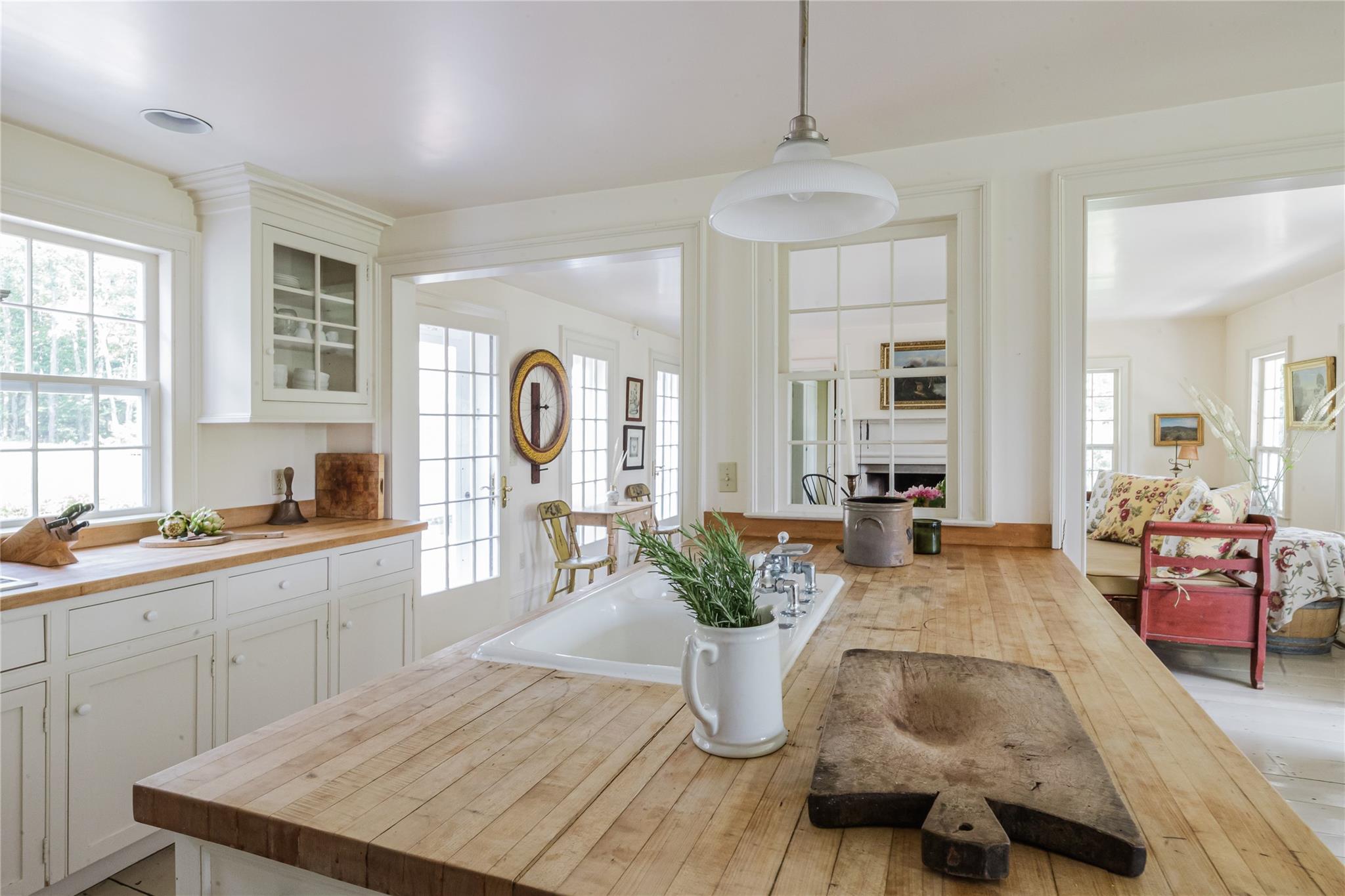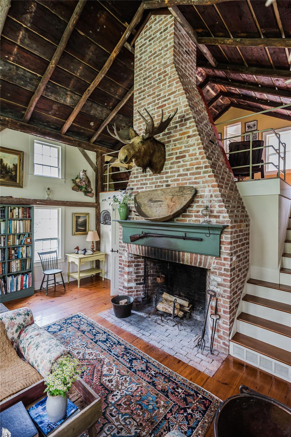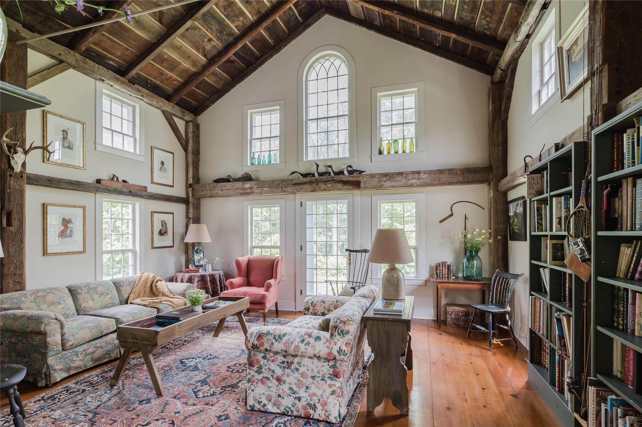 Introducing Mossford Estate, a historic country residence that comes along once in a generation. On the market for the first time in 40 years, this circa 1800 property is a superb example of Federal-style architecture. Set on 144 acres, the sprawling estate includes an antique barn, swimming pond, tennis court, five fireplaces, a stone patio, and a wealth of period details. The oldest part of the house is a classic side-hall Colonial, featuring nine-over-nine windows with wavy glass. Inside, a formal living room and dining area with built-in china displays and hand-painted floors offer space for 14 guests, while a sunny, south-facing breakfast nook adjoins the modern kitchen. The centerpiece of the main level is a soaring, double-height den—likely a former barn conversion—that evokes the feel of a Ralph Lauren-style Adirondack lodge, rustic yet refined. A cozy sitting room with a fireplace adjoins a full bath and laundry area, adding comfort and function to the home's main floor. Upstairs, the primary suite includes a fireplace and full bath, while a wide hallway with a darling reading nook leads to three large bedrooms and a third full bath. Every room reflects the owners' meticulous care in preserving and replicating 19th-century details, from antique fixtures and thoughtfully chosen wallcoverings to original faux bois painted doors. Behind the house, a brick and stone patio is bordered by mature perennial gardens, creating a peaceful spot for outdoor dining and entertaining. A gently sloping lawn leads to a fenced tennis court, and a vegetable garden and potting shed make homegrown meals a part of everyday life. Across the quiet gravel road, a 30x40 antique barn with a new standing seam metal roof sits on a stone foundation, with a private swimming pond just beyond, glimpsed through the trees. In every direction, Mossford Estate captures the essence of refined country living at its very best.