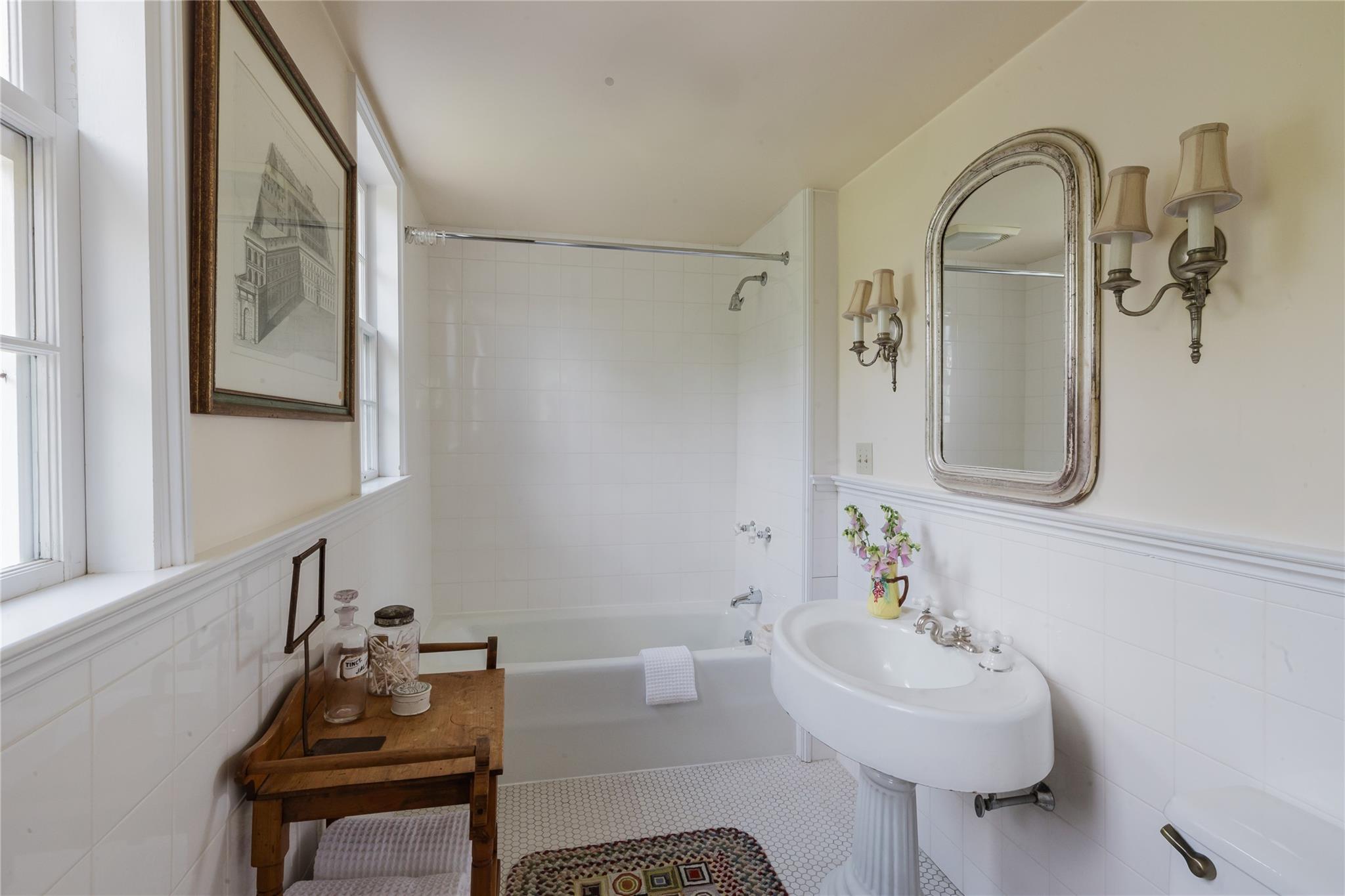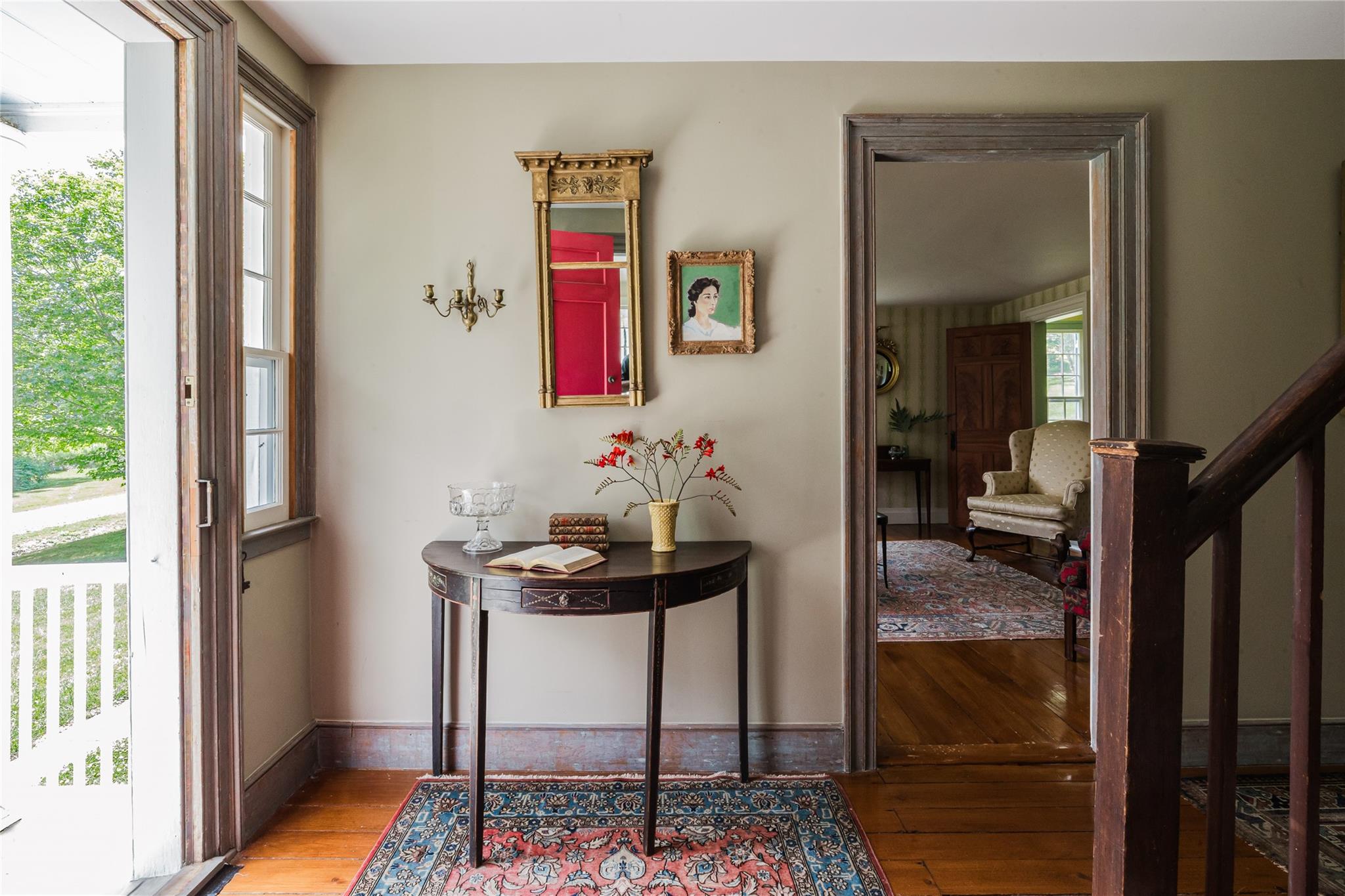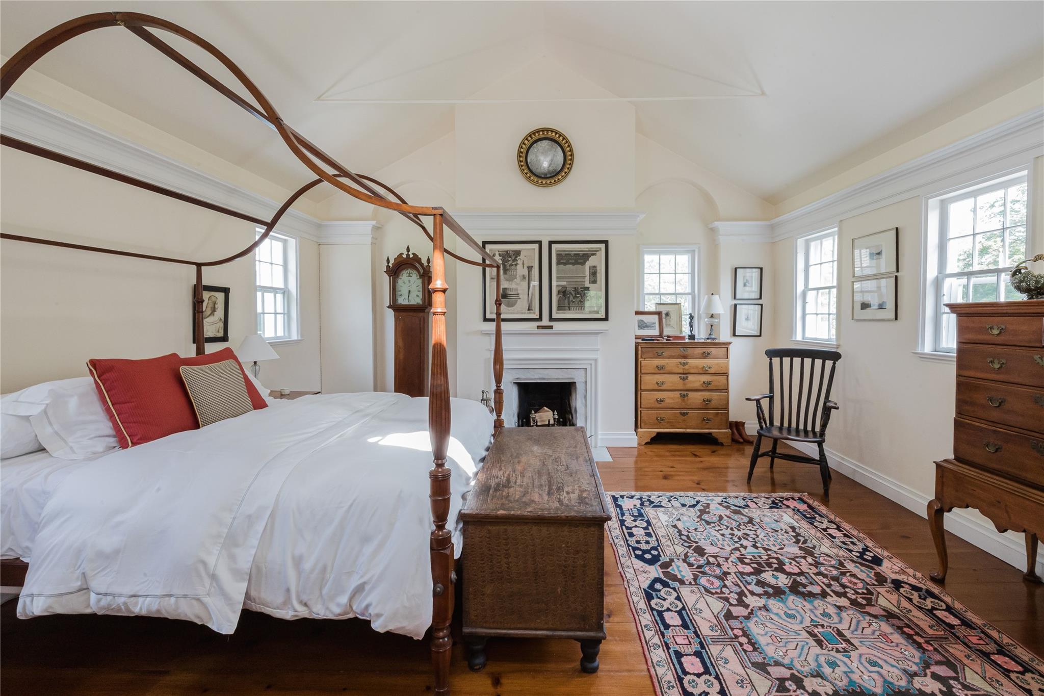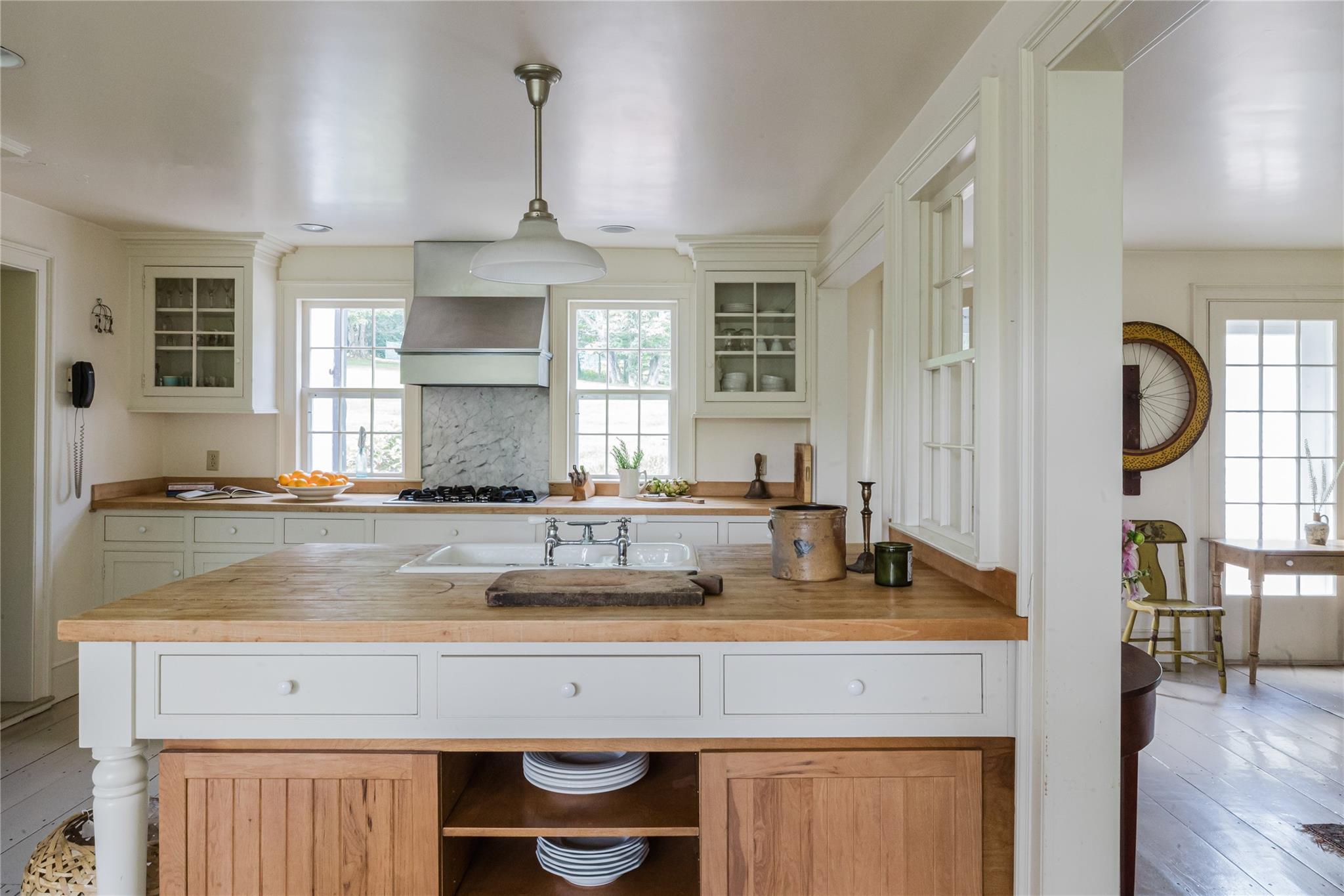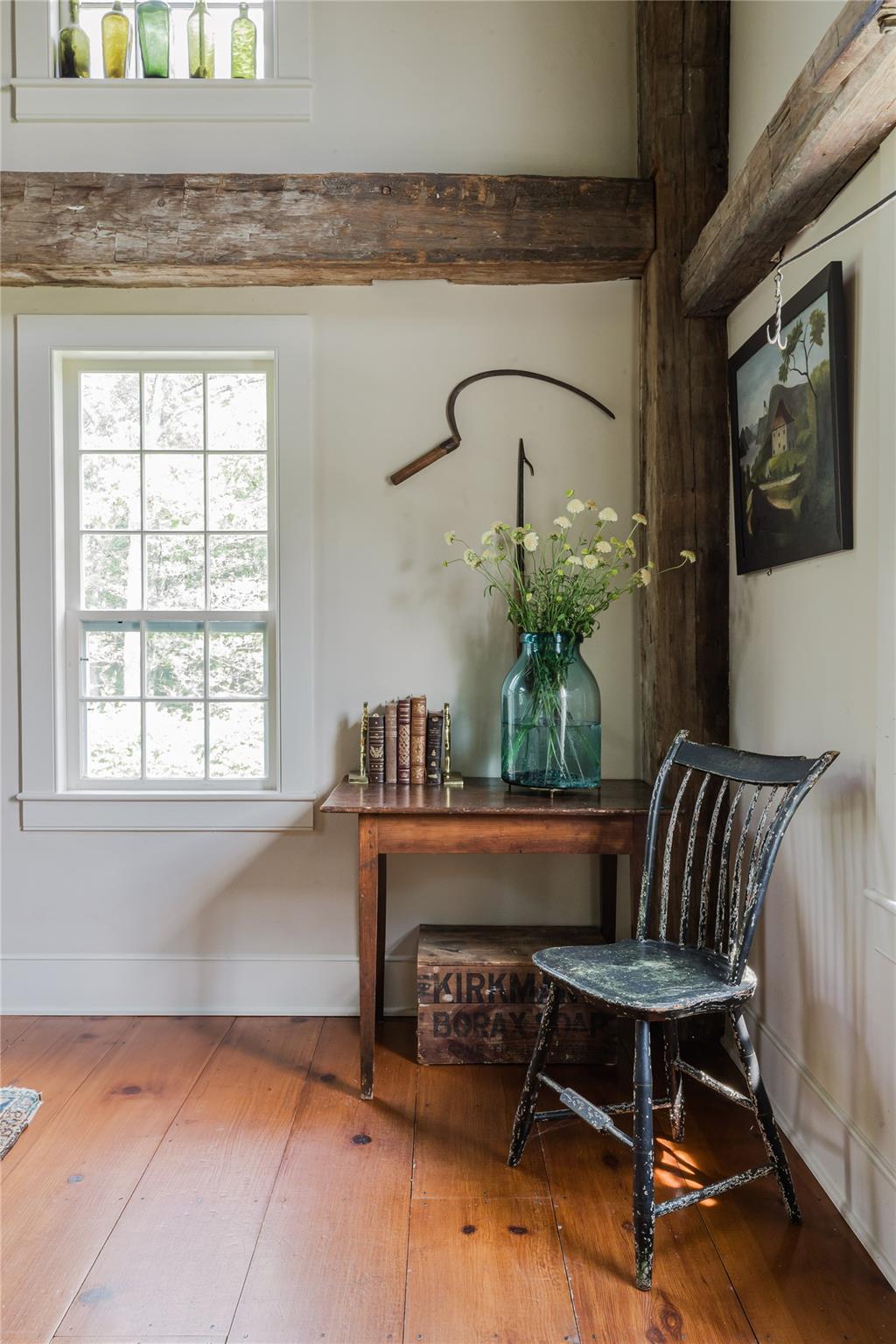Introducing Mossford Estate, a historic country residence that comes along once in a generation. On the market for the first time in 40 years, this circa 1800 property is a superb example of Federal-style architecture. Set on 144 acres, the sprawling estate includes an antique barn, swimming pond, tennis court, five fireplaces, a stone patio, and a wealth of period details. The oldest part of the house is a classic side-hall Colonial, featuring nine-over-nine windows with wavy glass. Inside, a formal living room and dining area with built-in china displays and hand-painted floors offer space for 14 guests, while a sunny, south-facing breakfast nook adjoins the modern kitchen. The centerpiece of the main level is a soaring, double-height den—likely a former barn conversion—that evokes the feel of a Ralph Lauren-style Adirondack lodge, rustic yet refined. A cozy sitting room with a fireplace adjoins a full bath and laundry area, adding comfort and function to the home's main floor. Upstairs, the primary suite includes a fireplace and full bath, while a wide hallway with a darling reading nook leads to three large bedrooms and a third full bath. Every room reflects the owners' meticulous care in preserving and replicating 19th-century details, from antique fixtures and thoughtfully chosen wallcoverings to original faux bois painted doors. Behind the house, a brick and stone patio is bordered by mature perennial gardens, creating a peaceful spot for outdoor dining and entertaining. A gently sloping lawn leads to a fenced tennis court, and a vegetable garden and potting shed make homegrown meals a part of everyday life. Across the quiet gravel road, a 30x40 antique barn with a new standing seam metal roof sits on a stone foundation, with a private swimming pond just beyond, glimpsed through the trees. In every direction, Mossford Estate captures the essence of refined country living at its very best.