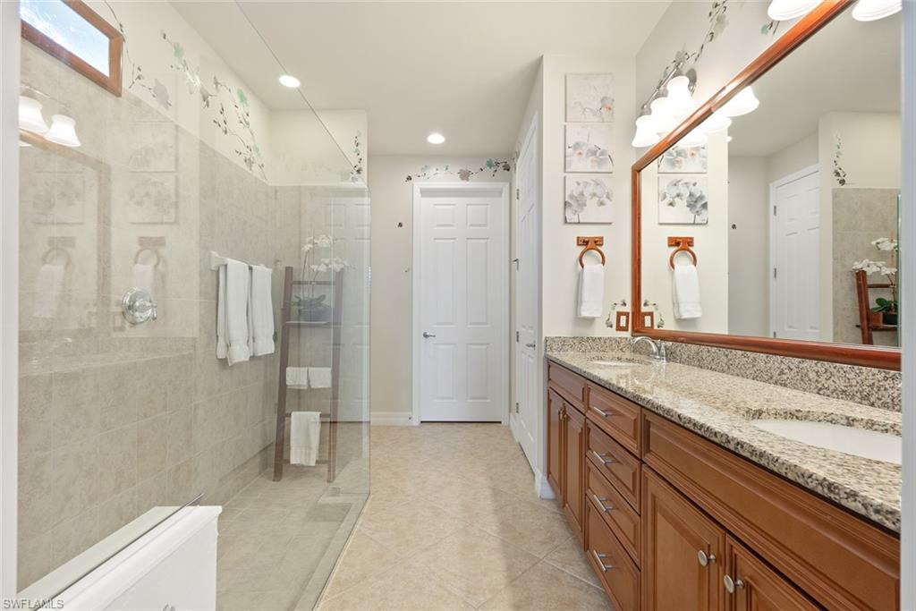 Step into the luxurious PRIMARY SUITE, complete with dual vanities, a walk-in shower, and generous closet space—your personal retreat after a day on the golf course or enjoying community amenities.