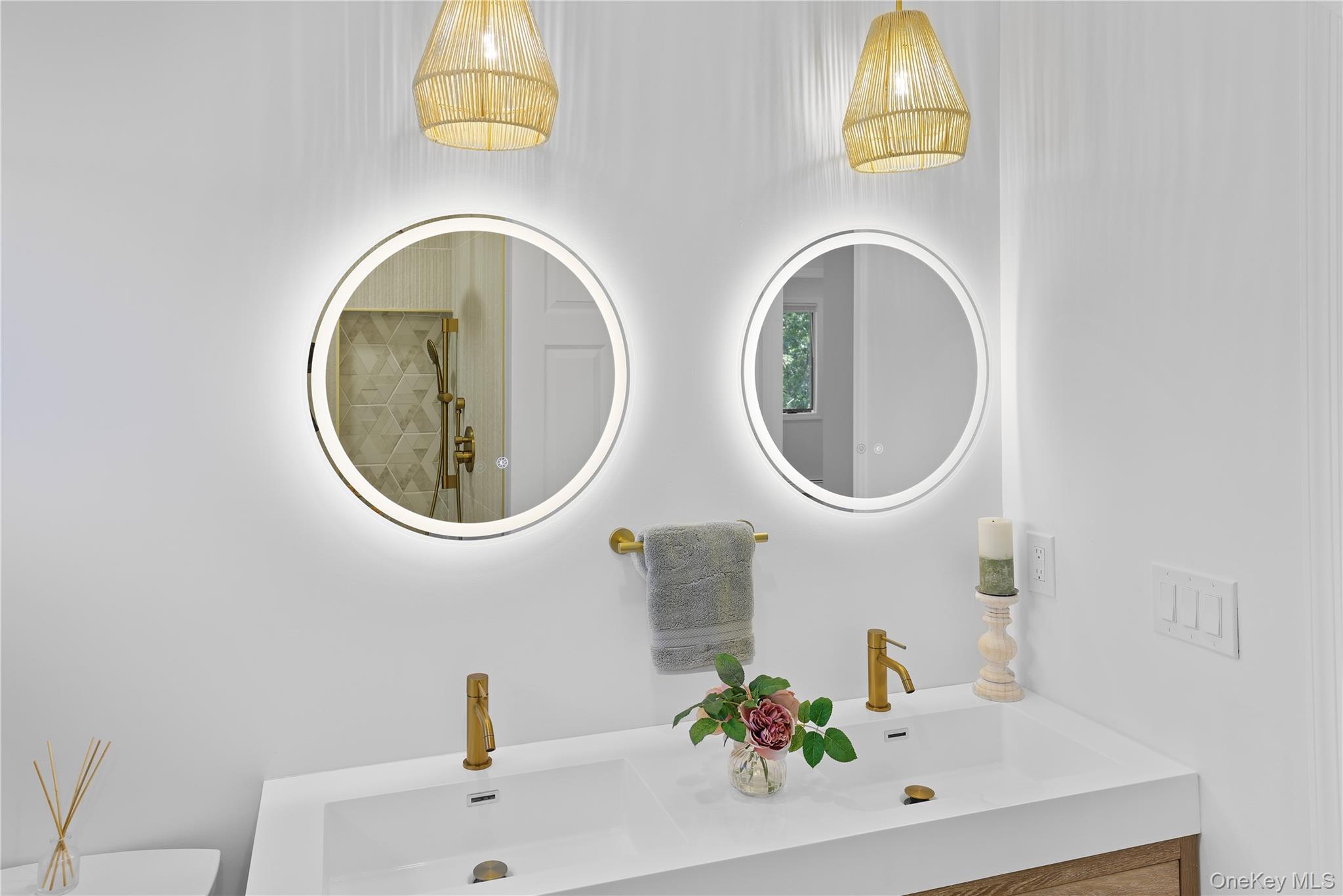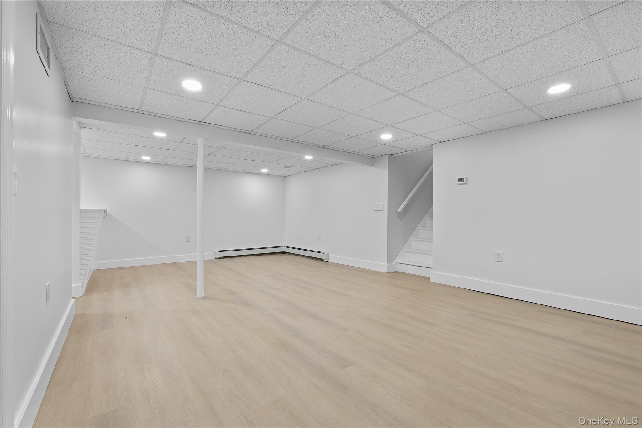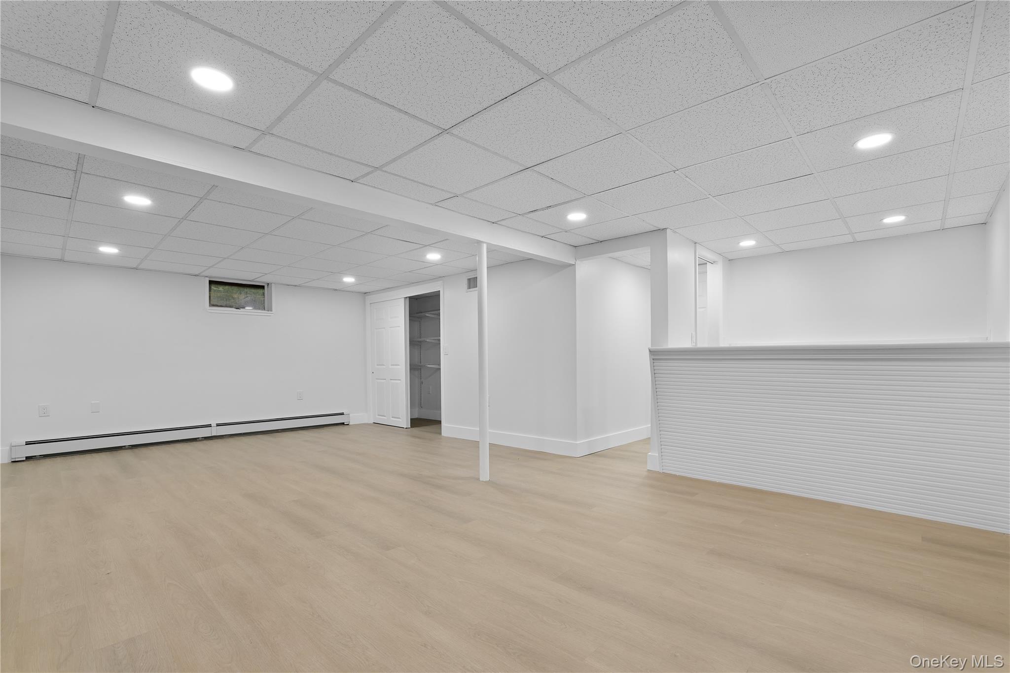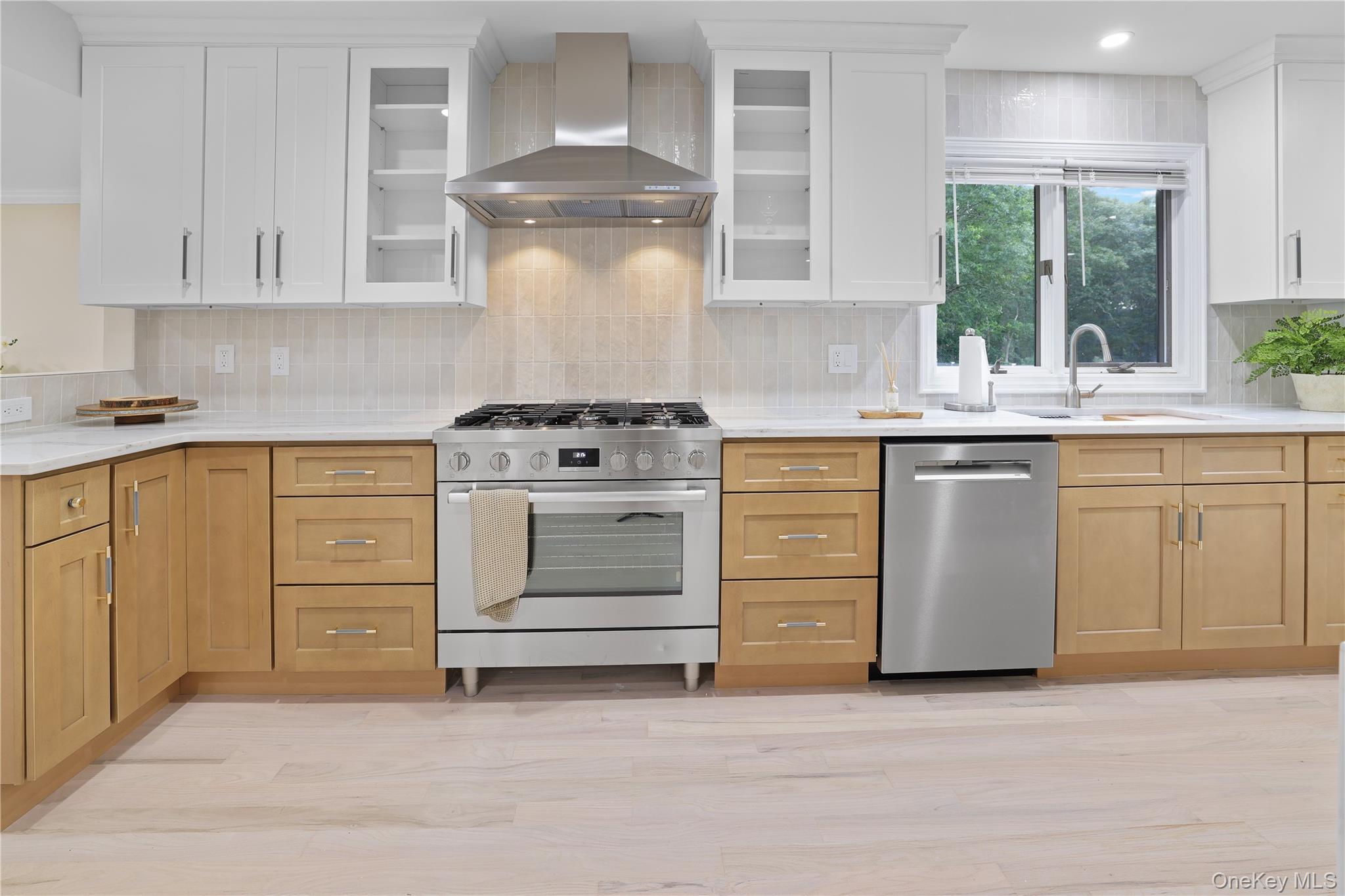 Stunning Fully Renovated Home in the Heart of Hampton Bays: where modern luxury meets everyday comfort. This beautifully renovated 4-bedroom, 3-bath home is thoughtfully designed for both relaxed living and stylish entertaining. At the heart of the home is a gourmet chef’s kitchen, featuring top-of-the-line Bosch gas range, hood, quartz countertops, and an oversized 8' x 5' waterfall island with double-sided cabinetry—perfect for prep, dining, and conversation. Additional premium appliances include a French door refrigerator with freezer drawer, microwave drawer, dishwasher, and an XO wine cabinet for your favorite beverages. The open-concept layout flows effortlessly from the kitchen into the spacious dining and living areas, creating the perfect setting for gatherings. Step down into the cozy den with an electric fireplace, custom built-in shelving, and cabinets that add warmth and elegance. A full bath on the main level adds convenience for guests. Upstairs, you’ll find four generously sized bedrooms. The primary suite is a private retreat with a spa-like ensuite bath featuring a soaking tub, double vanity, and a walk-in closet. A second full bath with double vanity serves the additional bedrooms. Additional Highlights: LOW TAXES ! Central air. Dedicated laundry/mudroom with sink, cabinetry, and direct access to the 2-car garage. Beautiful hardwood and luxury vinyl flooring throughout. Fully finished basement with a stylish wet bar; ideal for entertaining or bonus living space. Expansive backyard with multilevel deck and partial white vinyl fencing; perfect for outdoor entertaining and play. New roof! Energy-efficient stainless steel appliances. Low-maintenance, move-in-ready living. Located just minutes from the beach, marinas, shops, and dining, this turnkey home offers the perfect blend of coastal charm and modern design. Don’t miss your opportunity to own this exceptional property in Hampton Bays!