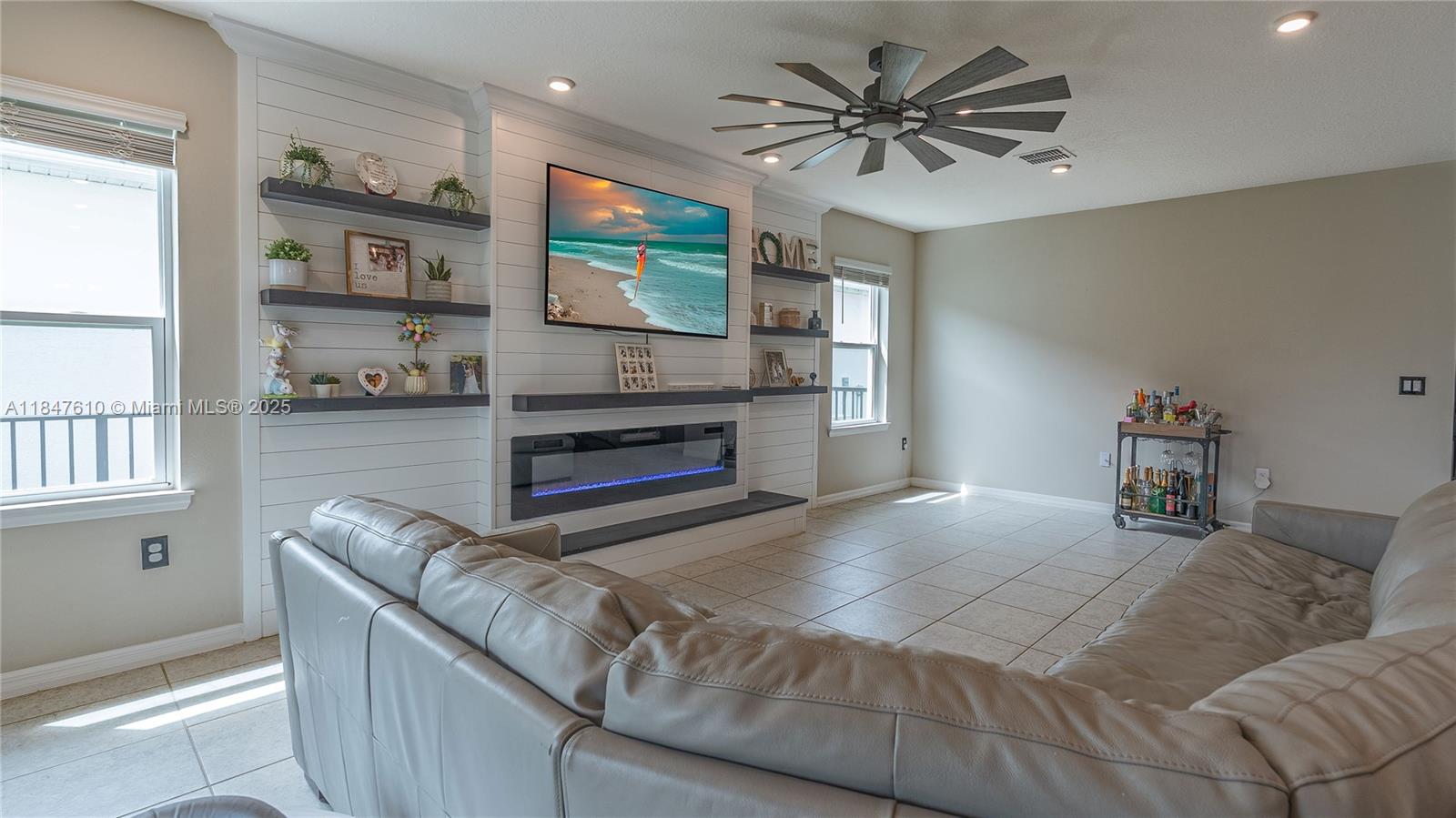 Charming 3 bedroom, 2 bath home with modern open concept design, perfect for entertaining! The living room’s stunning shiplap wall and cozy fireplace create a warm, inviting focal point. Gleaming tile floors flow throughout, complemented by impact windows for safety and energy efficiency. Enjoy a spacious backyard, ideal for outdoor activities or relaxation. Conveniently located near I-95 for easy commuting, this move-in-ready gem combines style, functionality in a family friendly community. Don’t miss your chance to own this beautifully updated home!