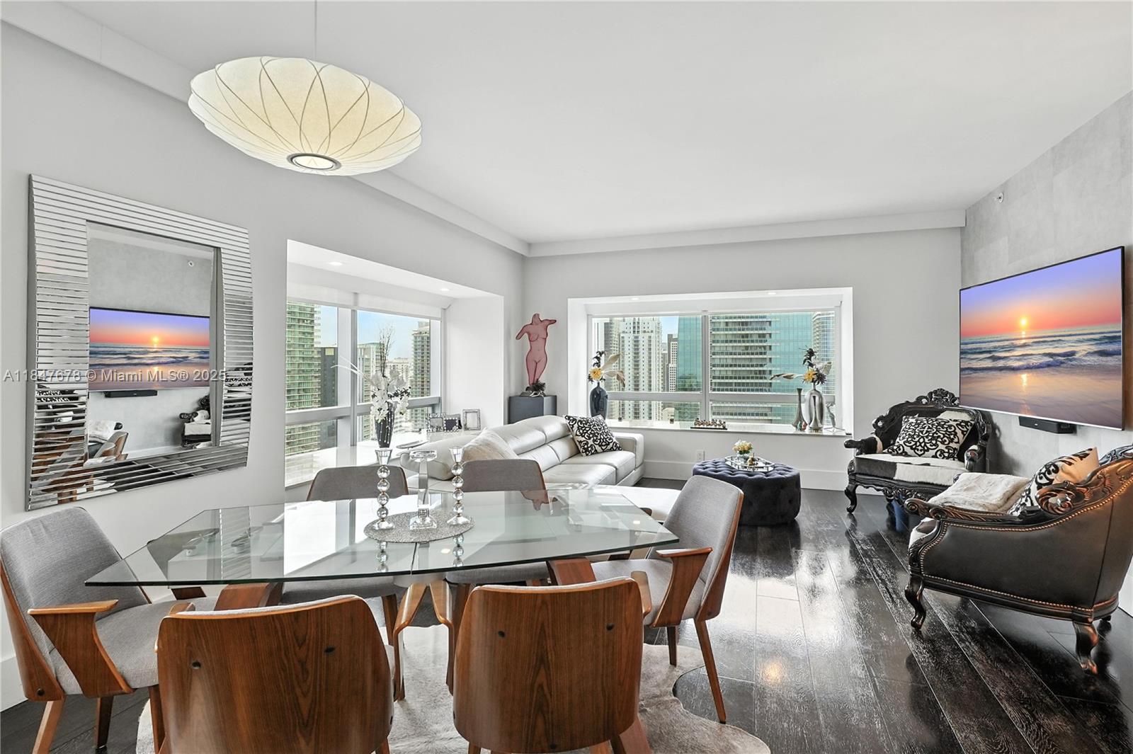 Refined and updated Hotel Condo - Owner wishes to sell! Beautiful and exquisite two bedroom en-suite plus artfully redone powder room. Four seasons' world-class amenities. Equinox Gym, Spa, Pools, 24-hour concierge, restaurants include poolside cafe and restaurants. Open and Airy!! Lavish modern style! Luxurious master with spa-like bath! Wood floor throughout. Epicurean gourmet kitchen! A joy to entertain in such an elegant and charming unit with a stunning Miami skyline view and more! Artwork and chandeliers are excluded. Shows beautifully!