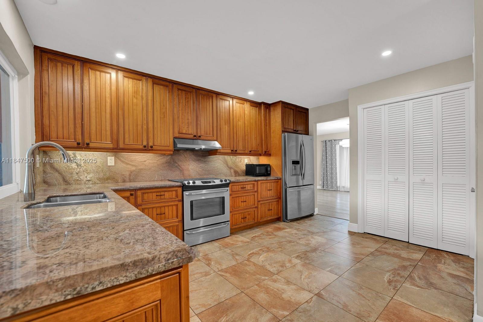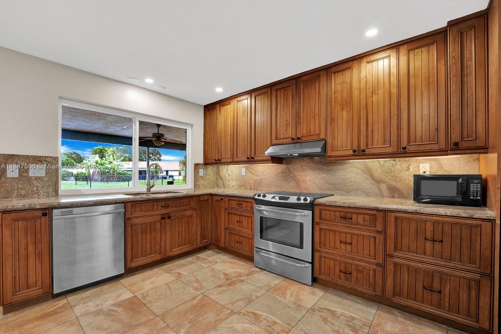 Discover this stunning, southeast-facing 4-bedroom, 3-bathroom saltwater pool home on an oversized corner lot with beautiful canal views. Located in a family-friendly neighborhood, just minutes from restaurants, parks, and supermarkets, and just a short drive from Fort Lauderdale or Dania beach! You'll have peace of mind and enjoy insurance savings with a 2022 shingle and flat roof, and electrical panel, 2021 pool pump, 2014 impact windows and doors, and a 2018 A/C unit with new 2020 ductwork and insulation. This home also features PVC pipes throughout and a cost-saving sprinkler system fed by the canal for a lush, green lawn. The family room could also be used as a secondary master. Ample space for your boat, RV, or any other toys in the fully fenced backyard with a PVC double-door fence.