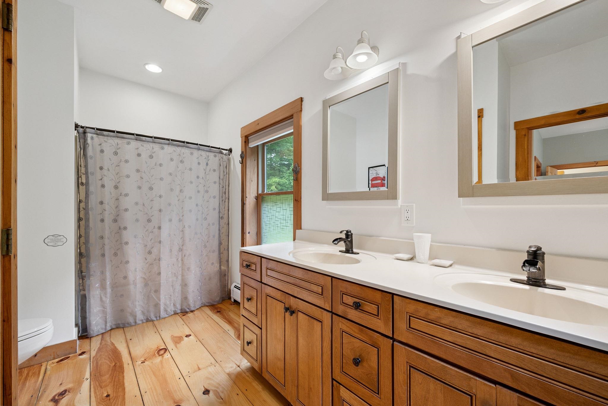 Your Vermont dream home! This 5-bedroom traditional log home is beautifully integrated into the natural setting of a 4. 22 acre property and features soaring vaulted ceilings with exposed timber beams, capped by a standing-seam metal roof. Mature woods open to a scenic meadow, with mountain vistas framing an ideal Vermont setting, just minutes to Stowe village and the slopes. Enjoy long summer evenings from the covered porch, looking over the pond to colorful sunsets. Two woodstoves keep things cozy during crisp fall days and snowy winter nights. A versatile multi-family design includes a 3-bedroom primary wing plus a 2-bedroom apartment, which can be combined into a large 5-bedroom residence. Additional finished space upstairs in the loft can be used for hobbies, guests, or a home office, while the unfinished basement can be adapted to many uses. A three-bay attached garage. A great value home with over 5000 square feet plus a three-bay attached garage is priced to sell!