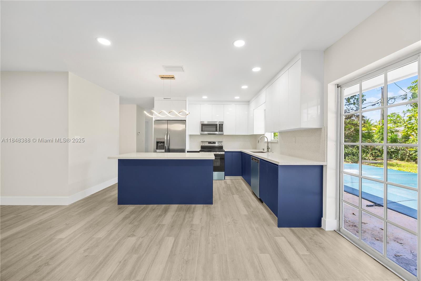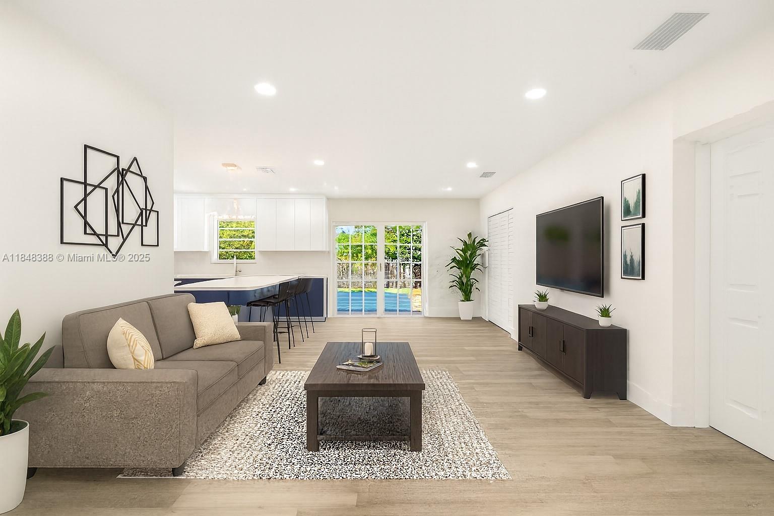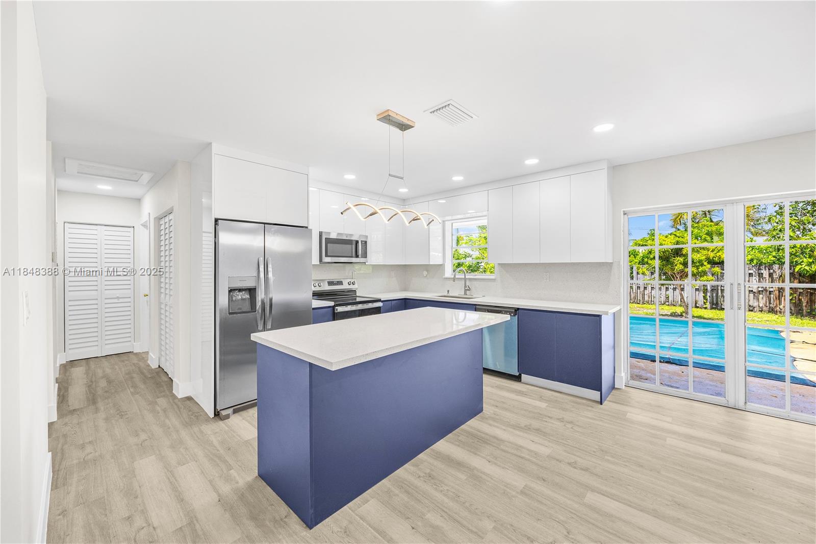 There is truly nothing like this in the area! Comparable to a brand-new build, it has been fully remodeled with city permits (closed and in process), including new plumbing, electrical, HVAC, framing, roof, and fencing. Secure it now—price will increase once permits are finalized. The home features 3 spacious bedrooms plus a Den, huge Master Suite with his-and-hers walk-in closets and enclosed toilet. 3 full baths, one of them is a convenient cabana bath for the pool. Enjoy the outdoors with a large fenced lot and sparkling pool, perfect for entertaining. Inside, the open kitchen boasts a large island, granite countertops, and brand-new stainless steel appliances.